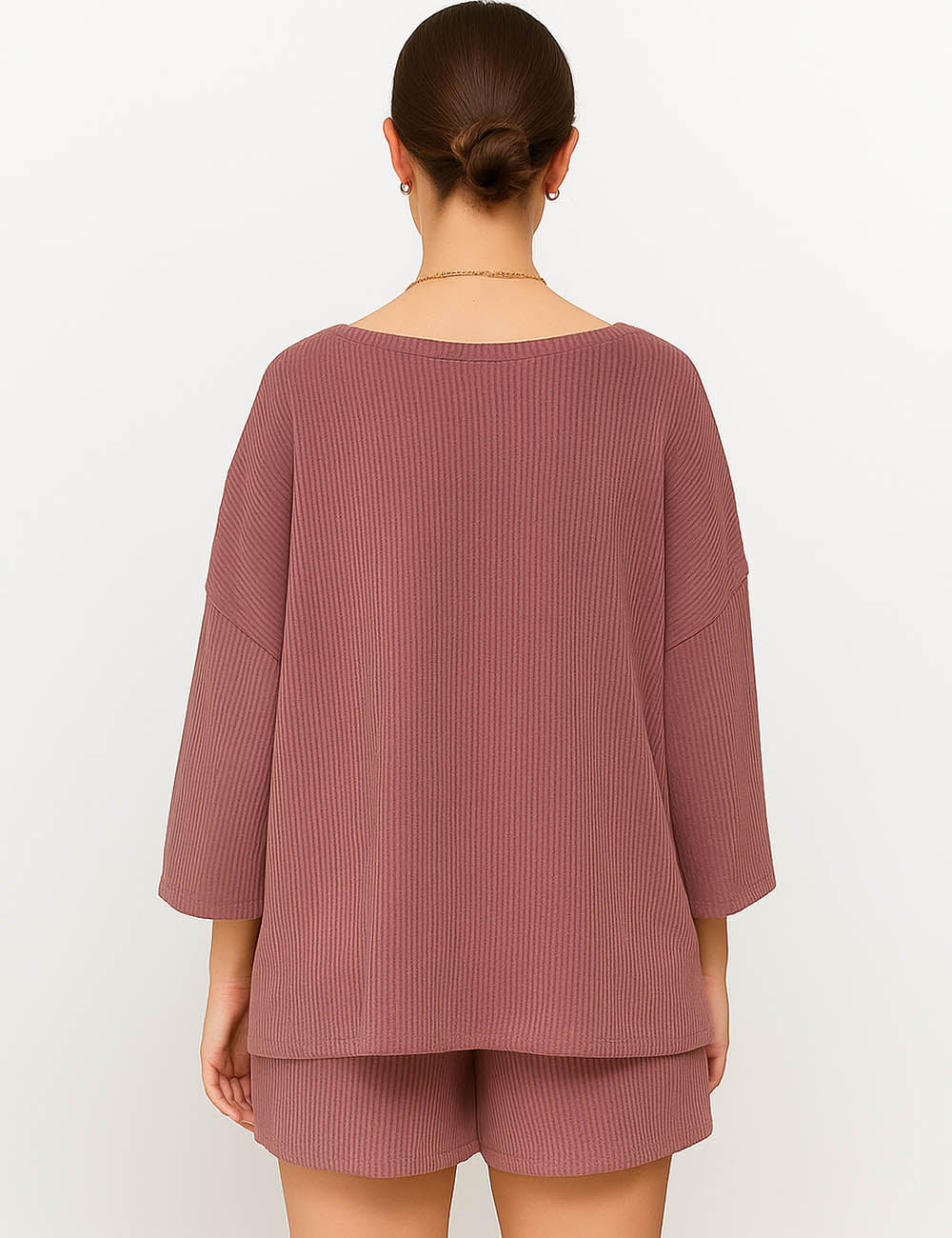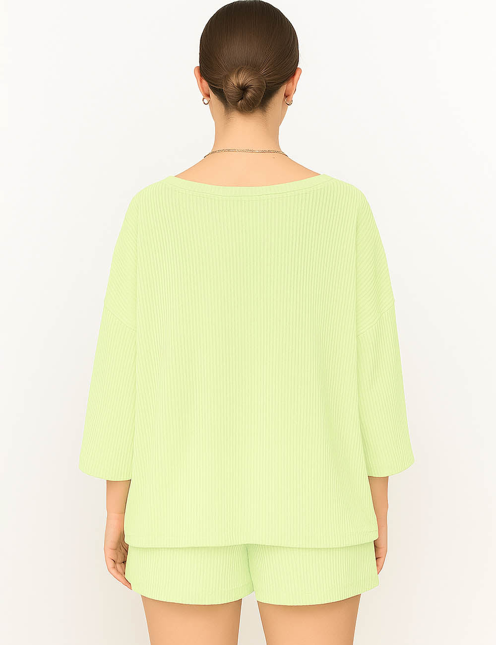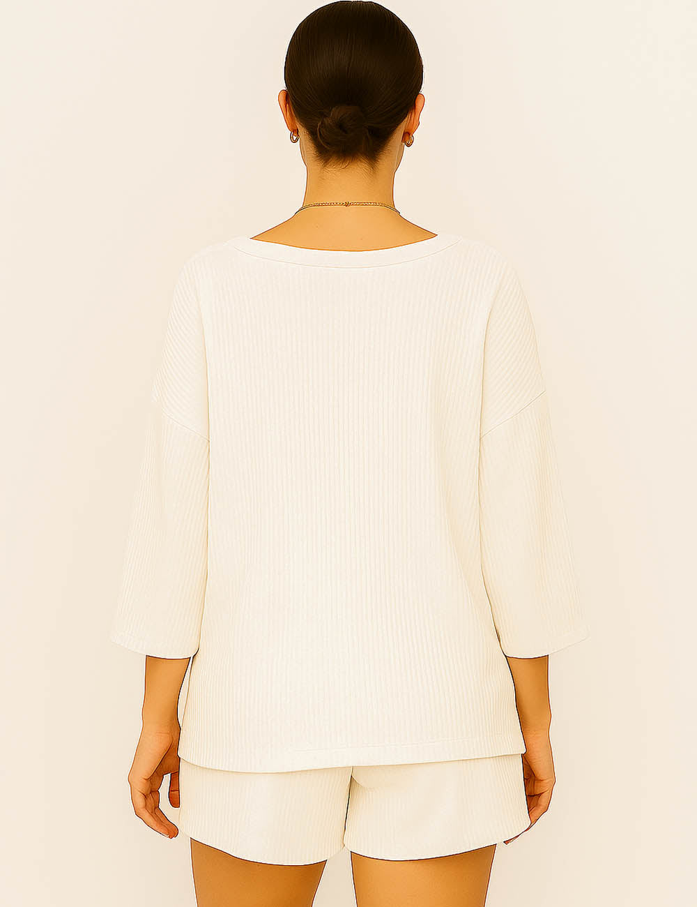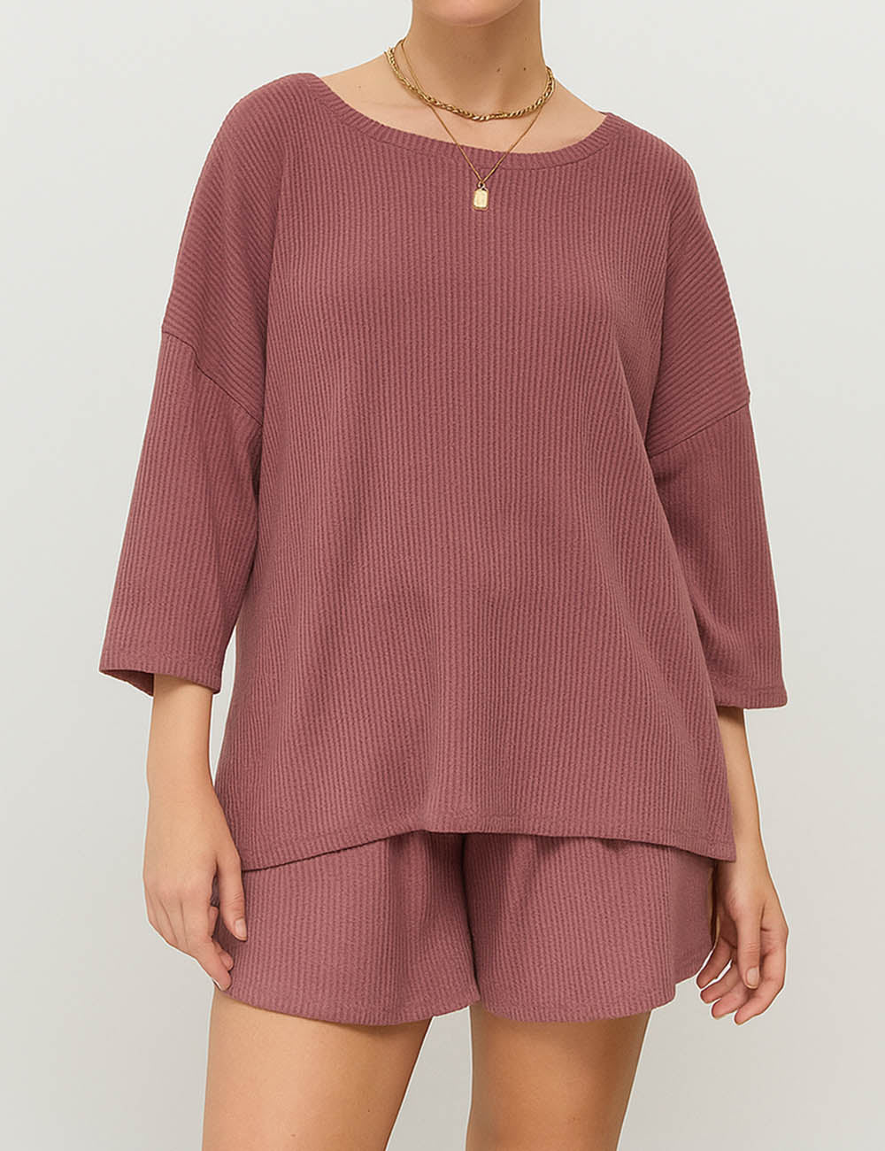 Ladies Ribbed Round Neck Short Sleeves Top & Shorts Set