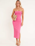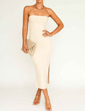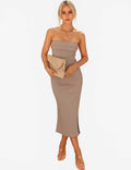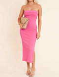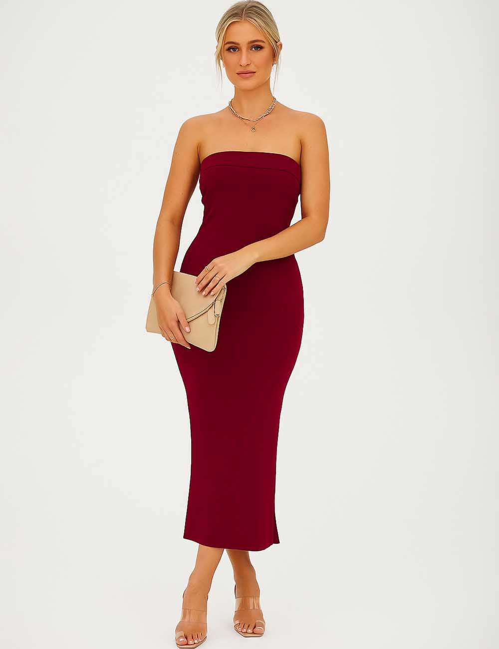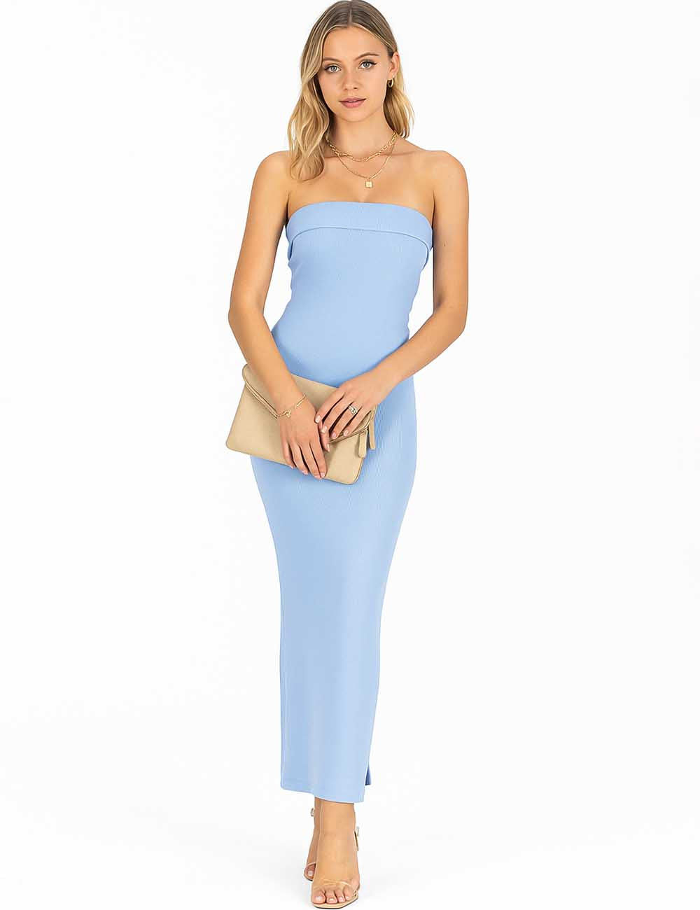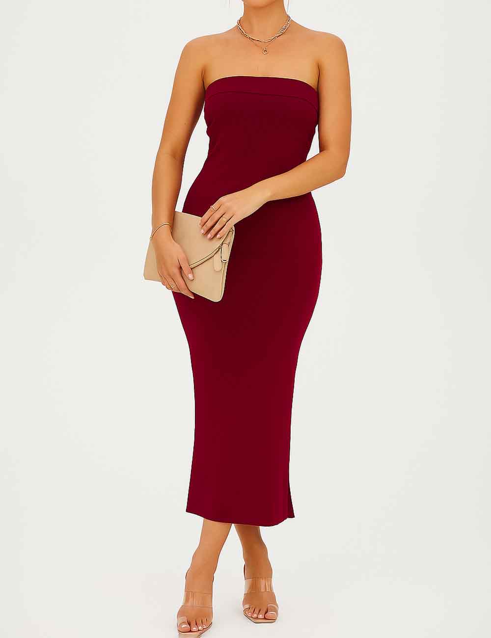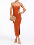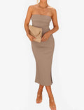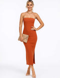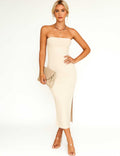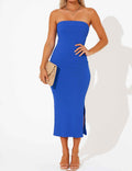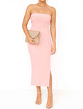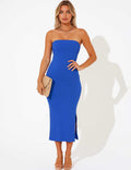 Ladies Ribbed Side Split Strapless Tube Bodycon Maxi Dress