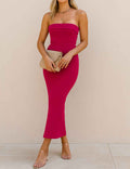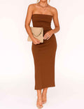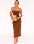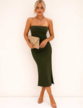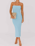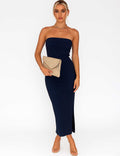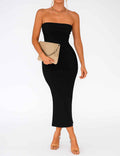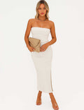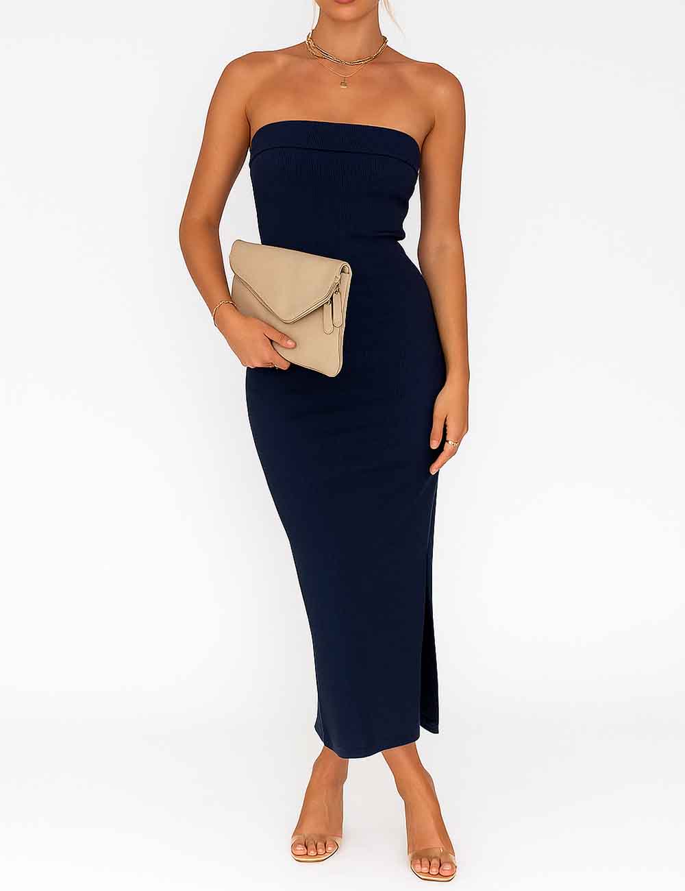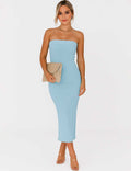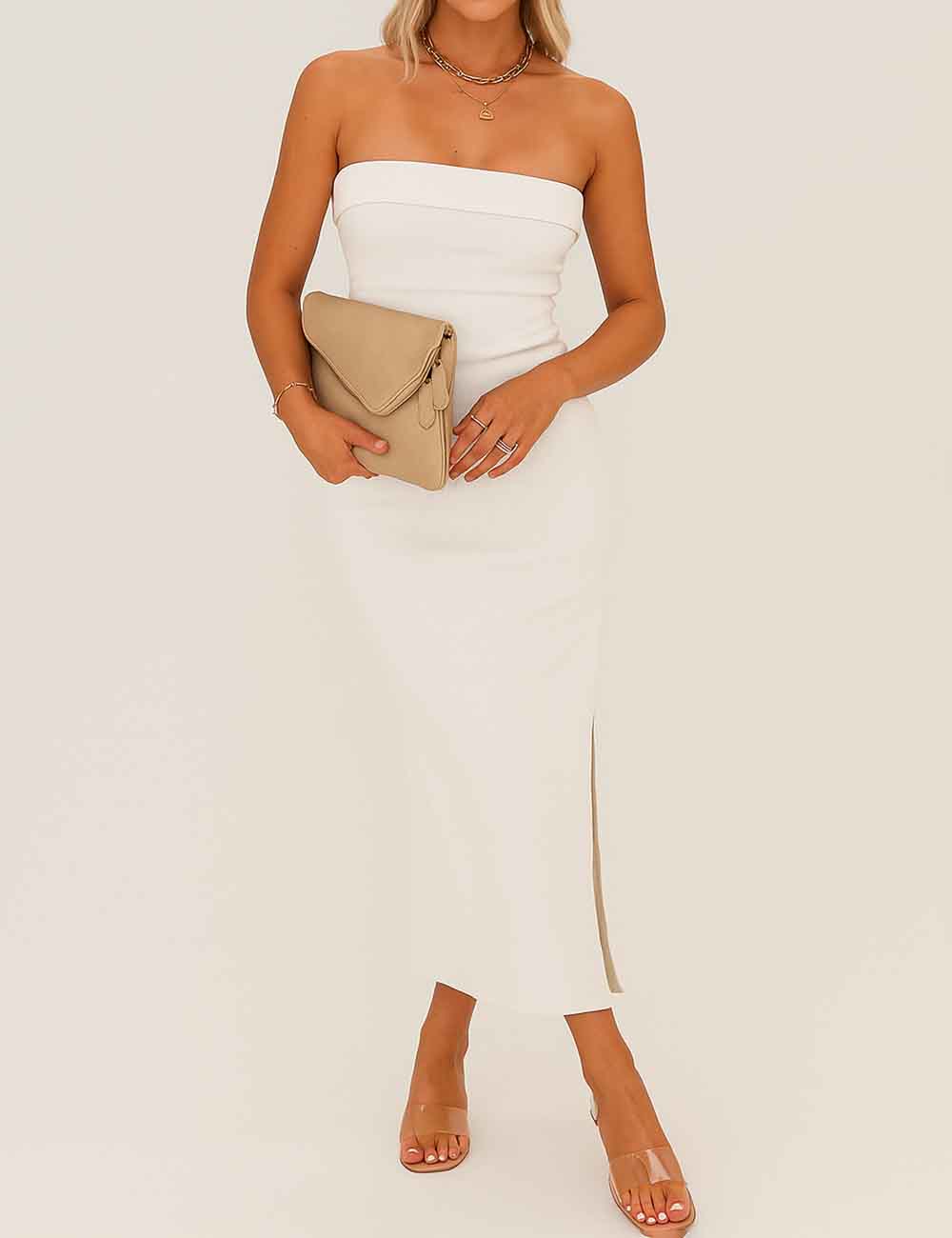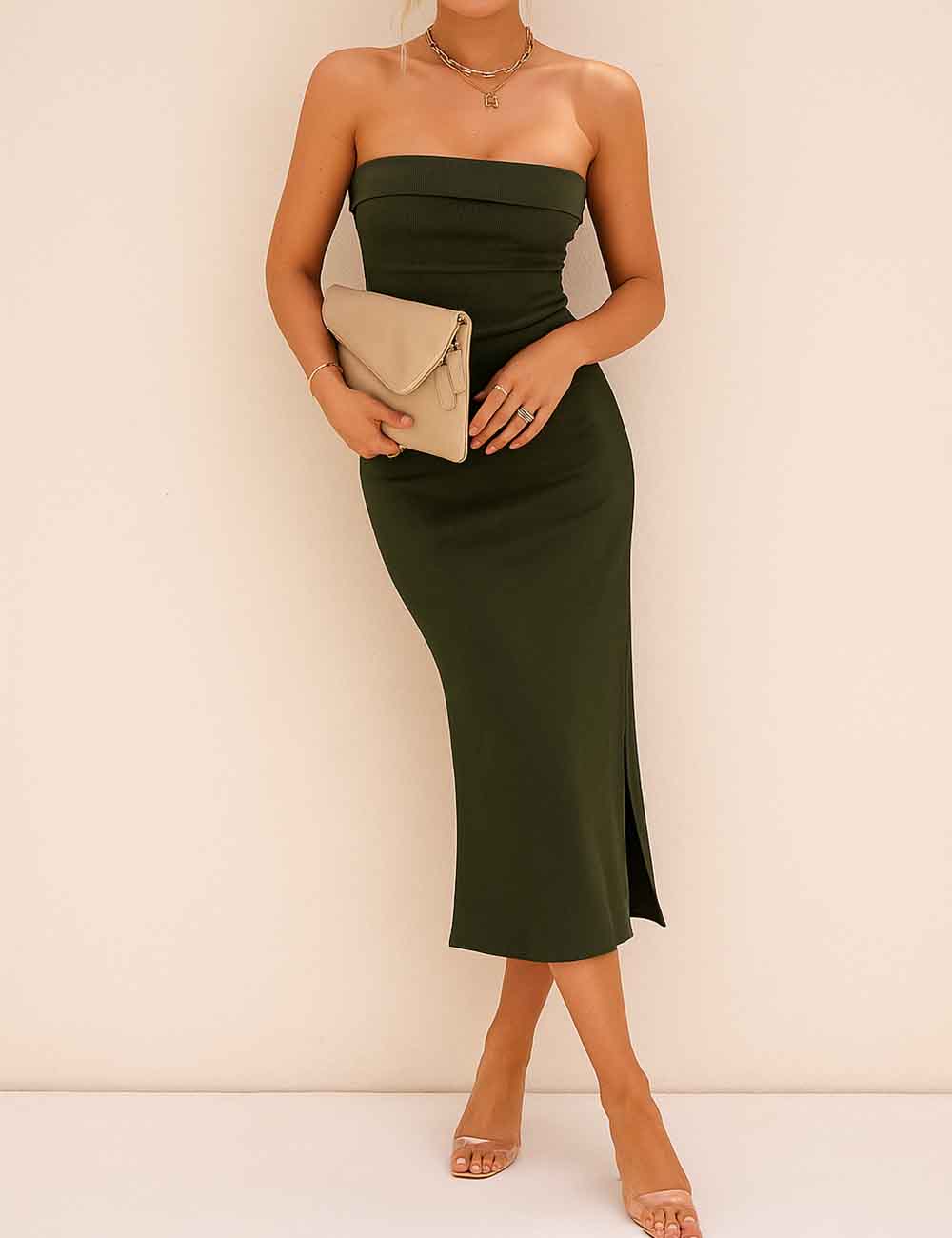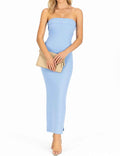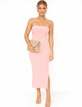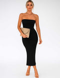 Ladies Ribbed Side Split Strapless Tube Bodycon Maxi Dress