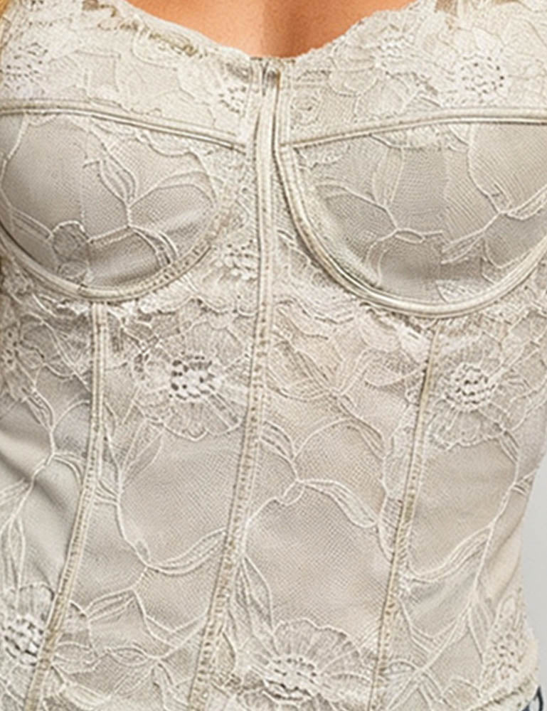 Ladies Romantic Lace Sweetheart Neck Bustier Cami Top