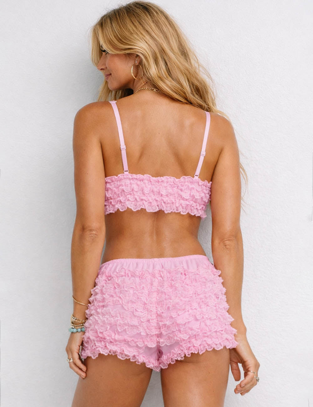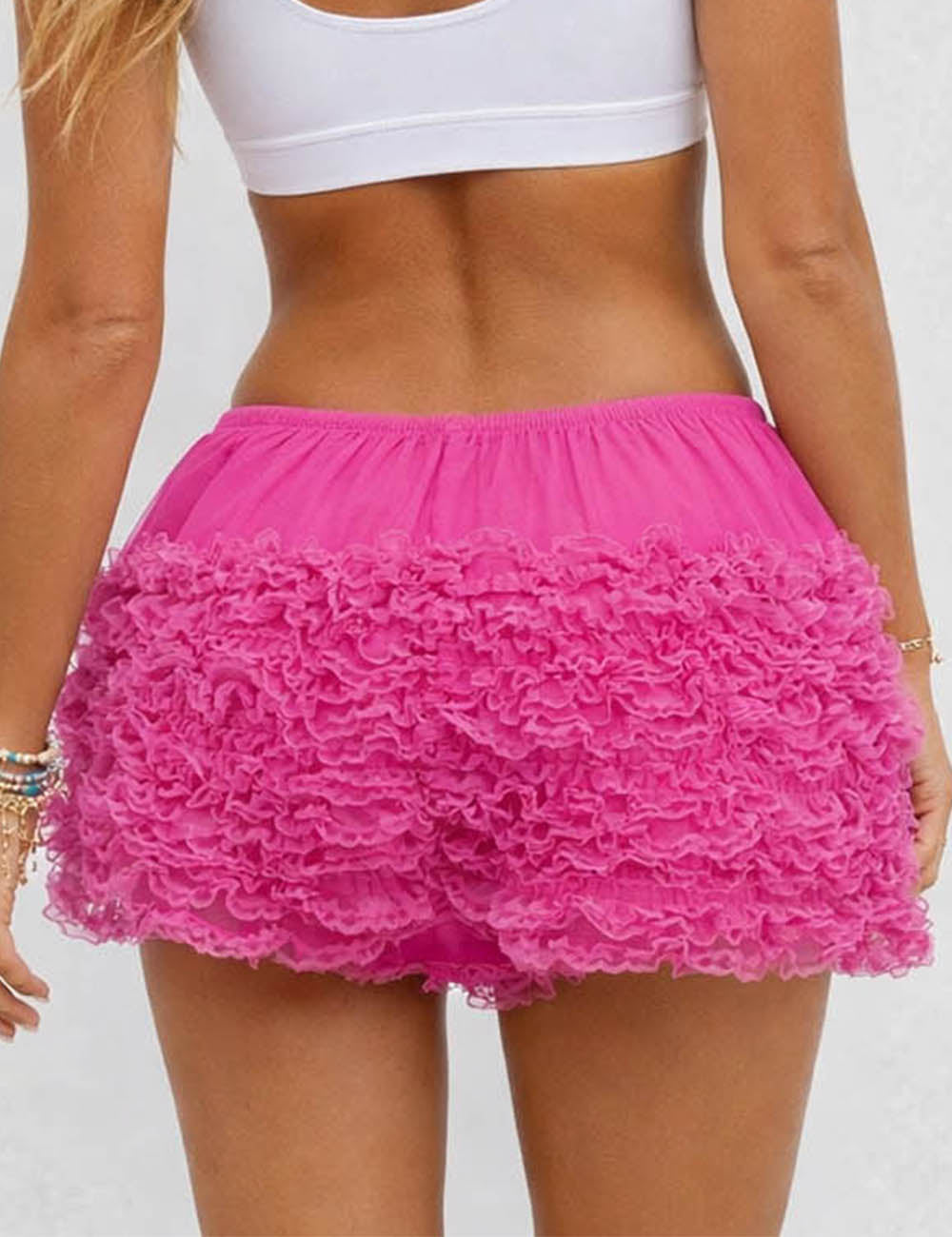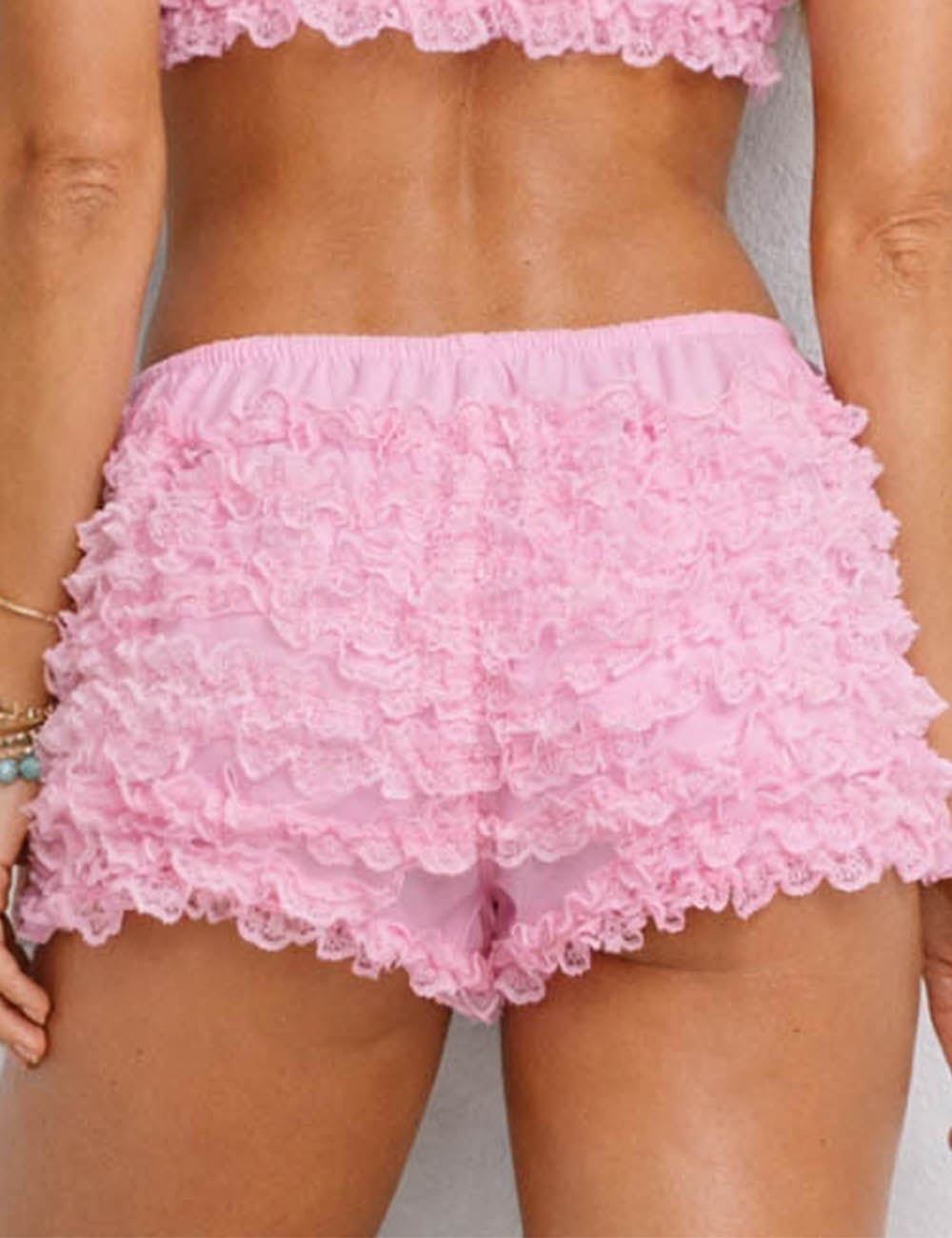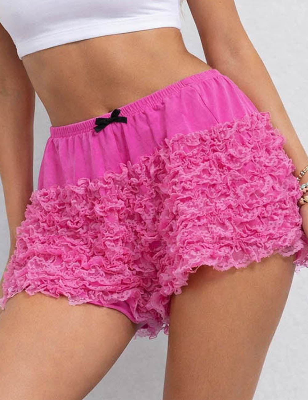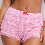 Ladies Romantic Lace Tiered Ruffle Mini Shorts