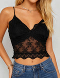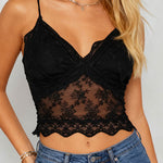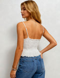 Ladies Romantic V-Neck Lace Back Smocked Cami Top