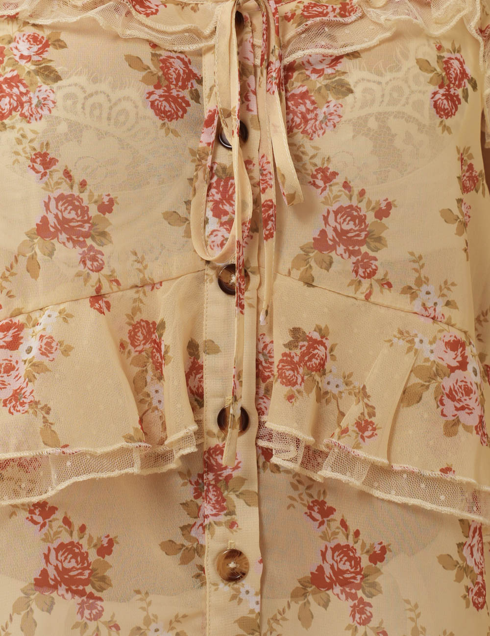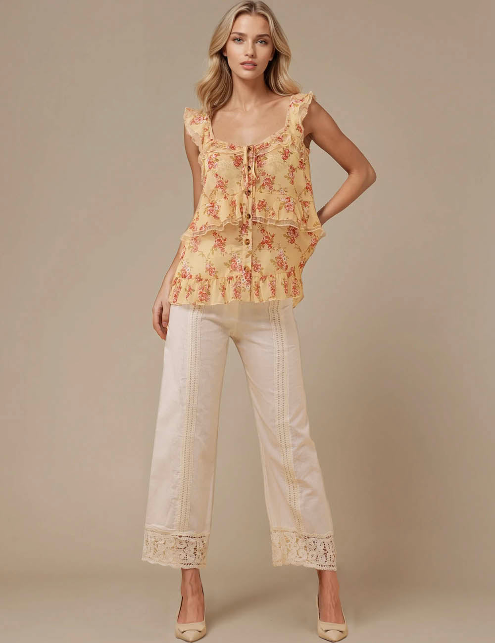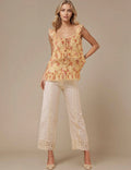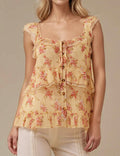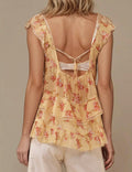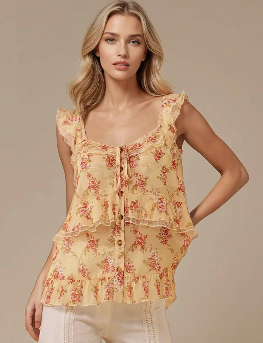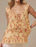 Ladies Romatic Boho See Sheer Ruffle Cami Blouse SKT5K9