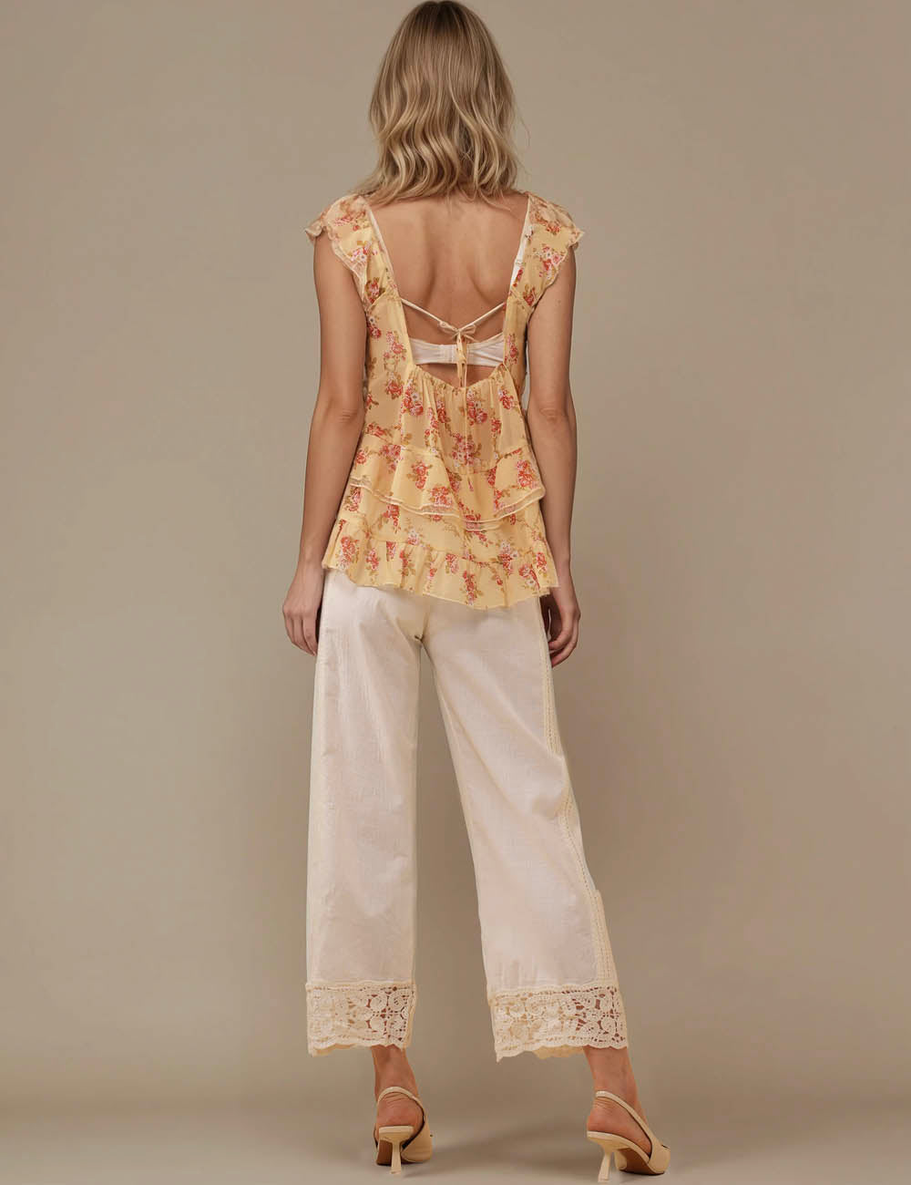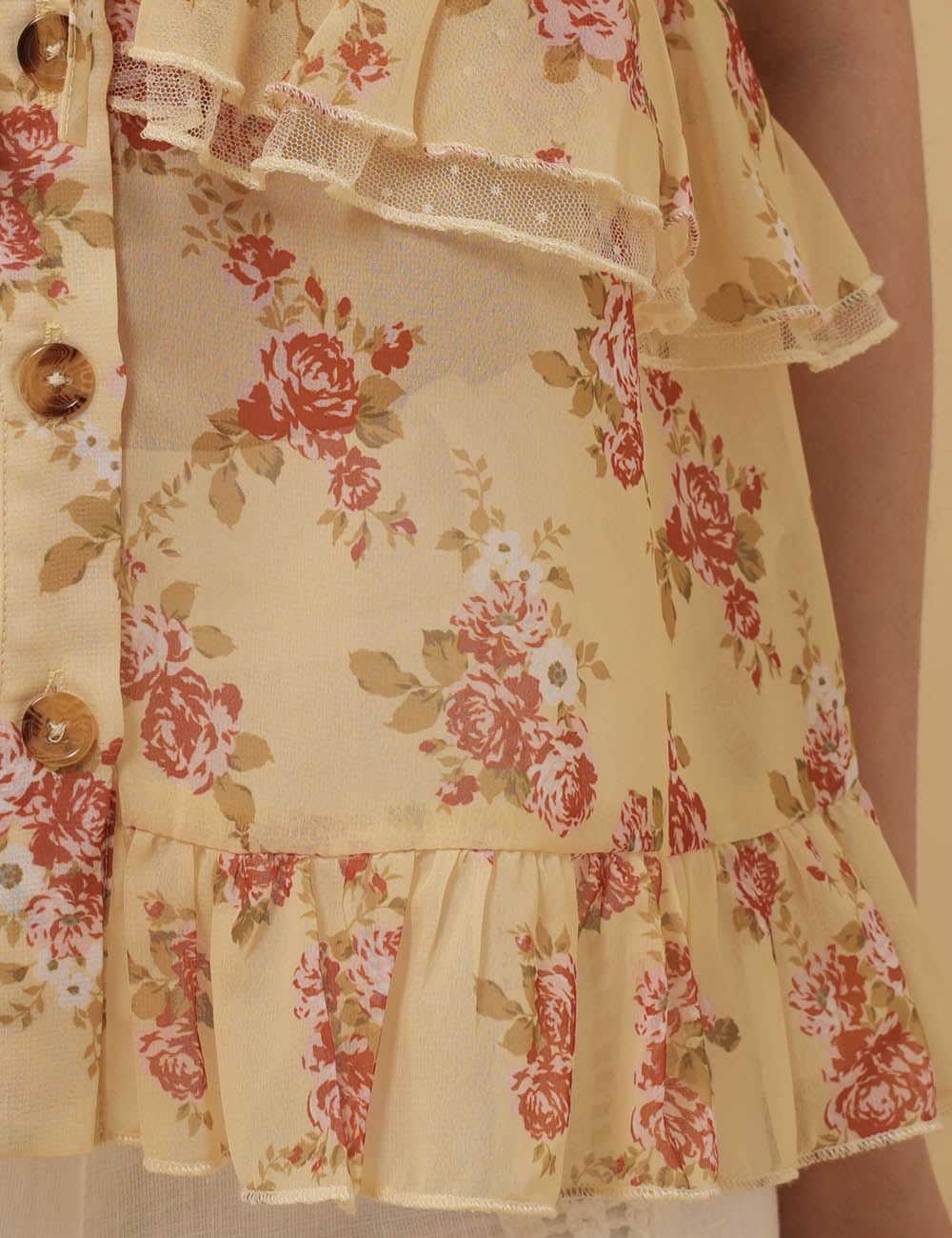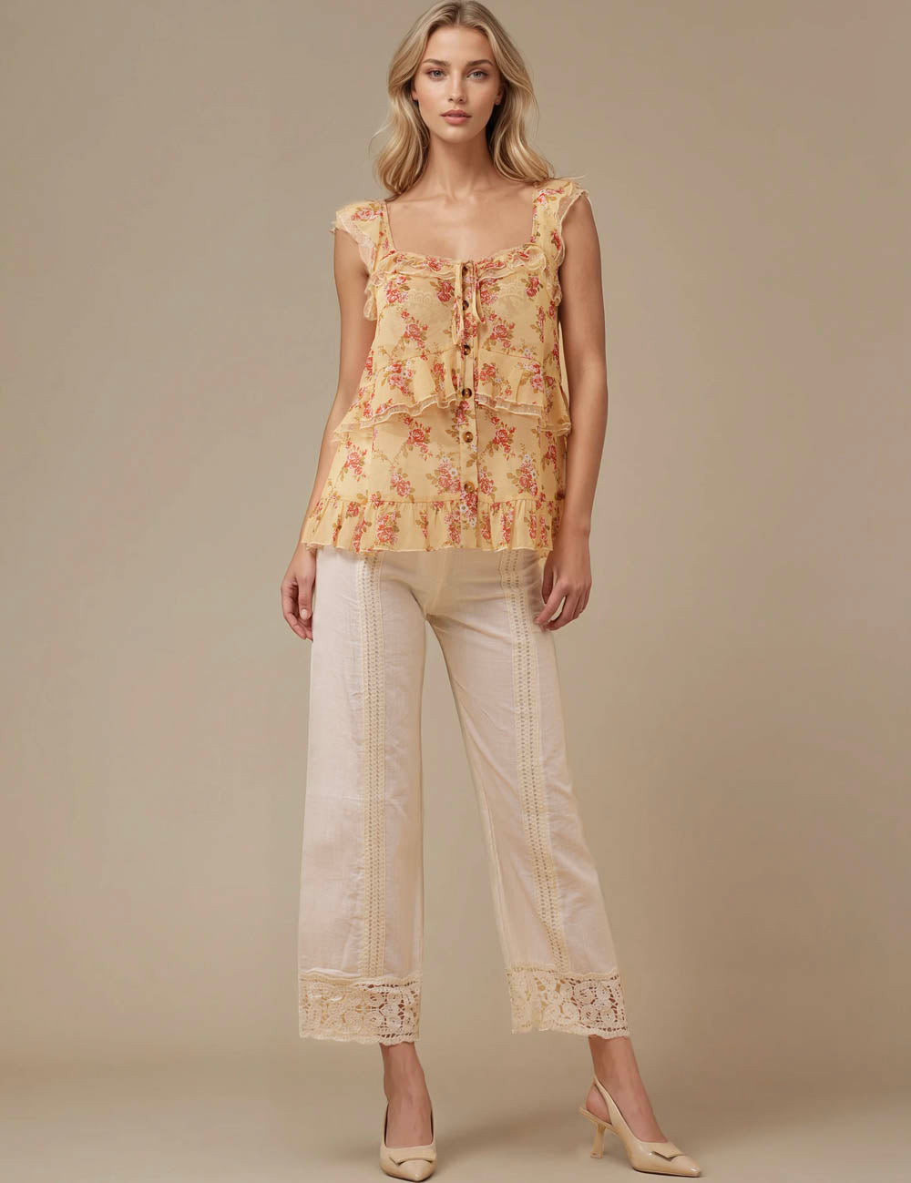 Ladies Romatic Boho See Sheer Ruffle Cami Blouse SKT5K9