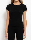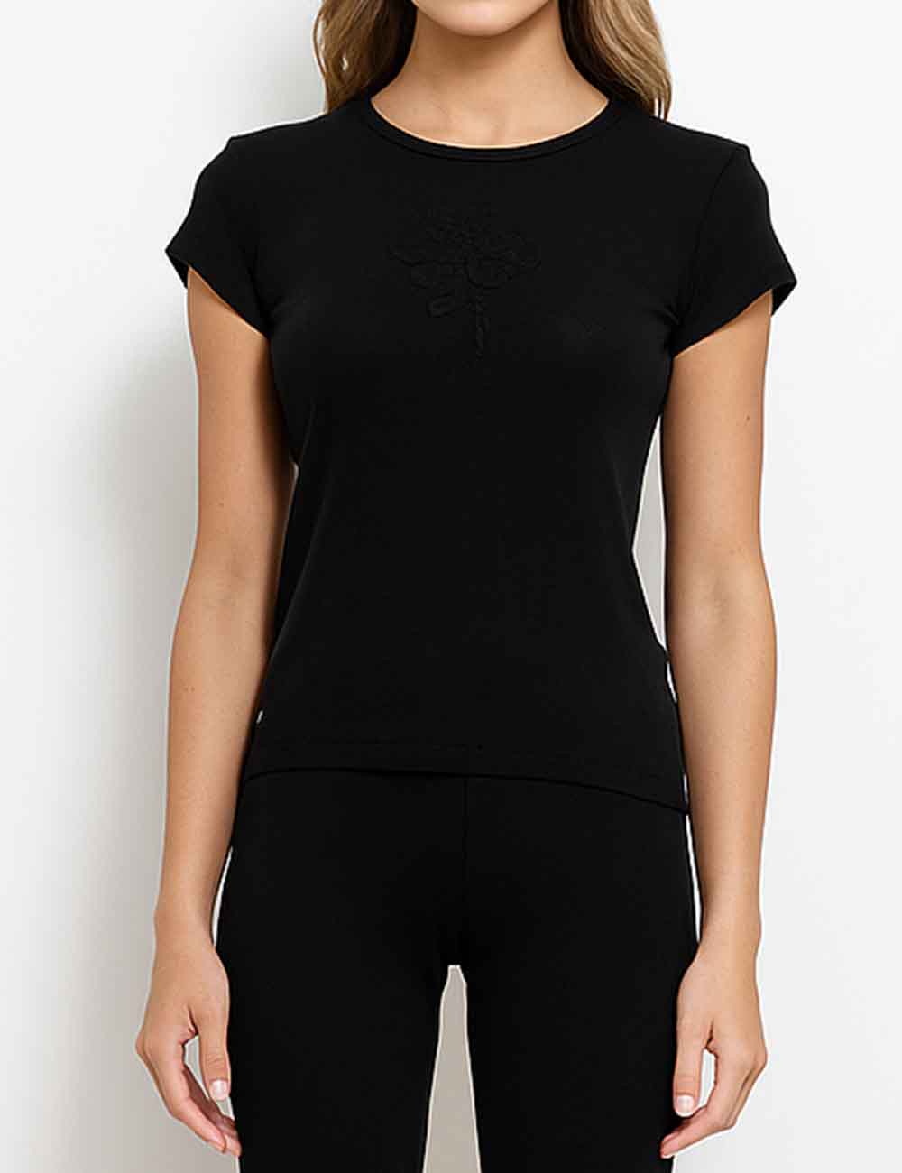 Ladies Rose Embroidery Short Sleeves T-Shirt