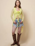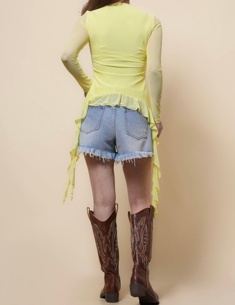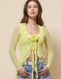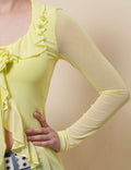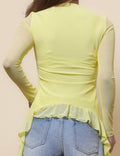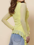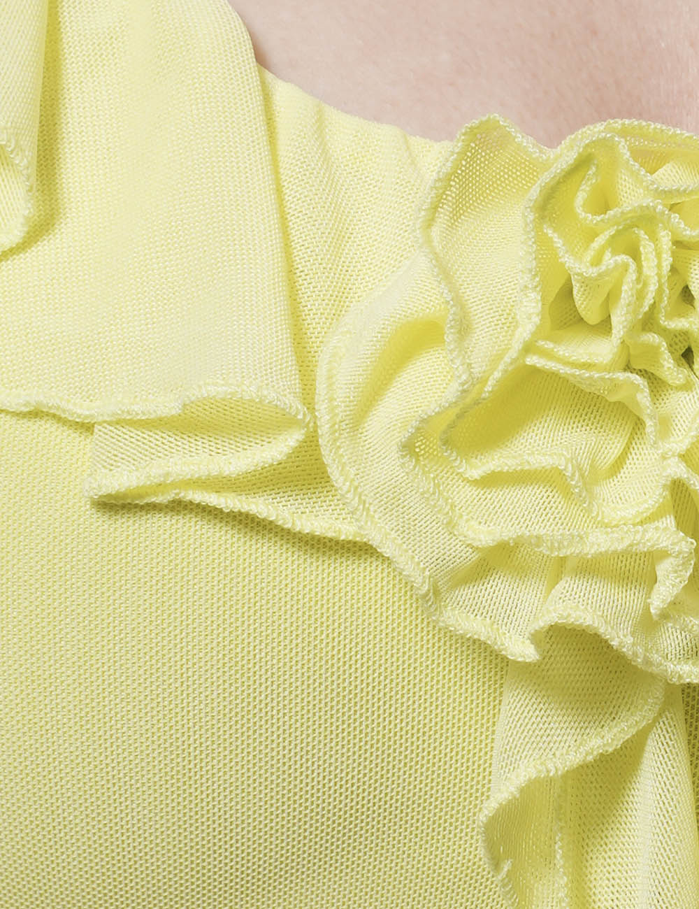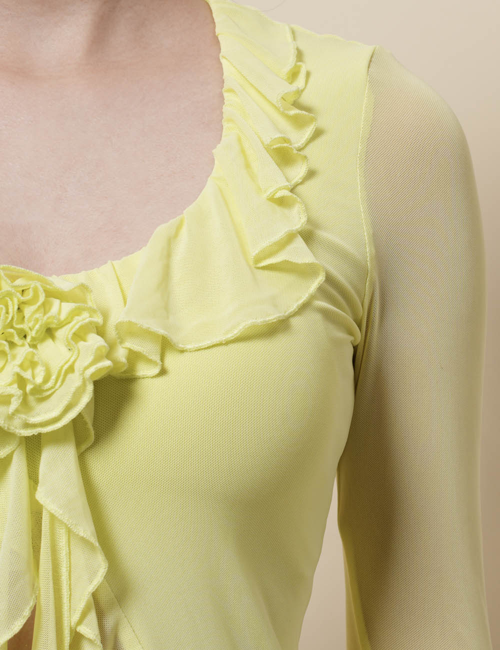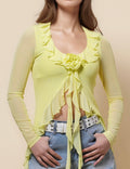 Ladies Rose Ruffle U-Neck Mesh Blouse Top SKT41228