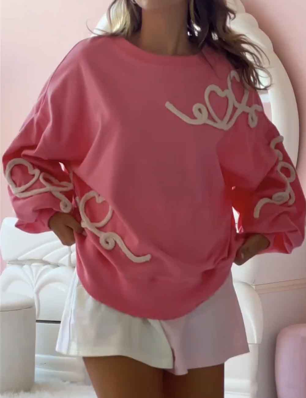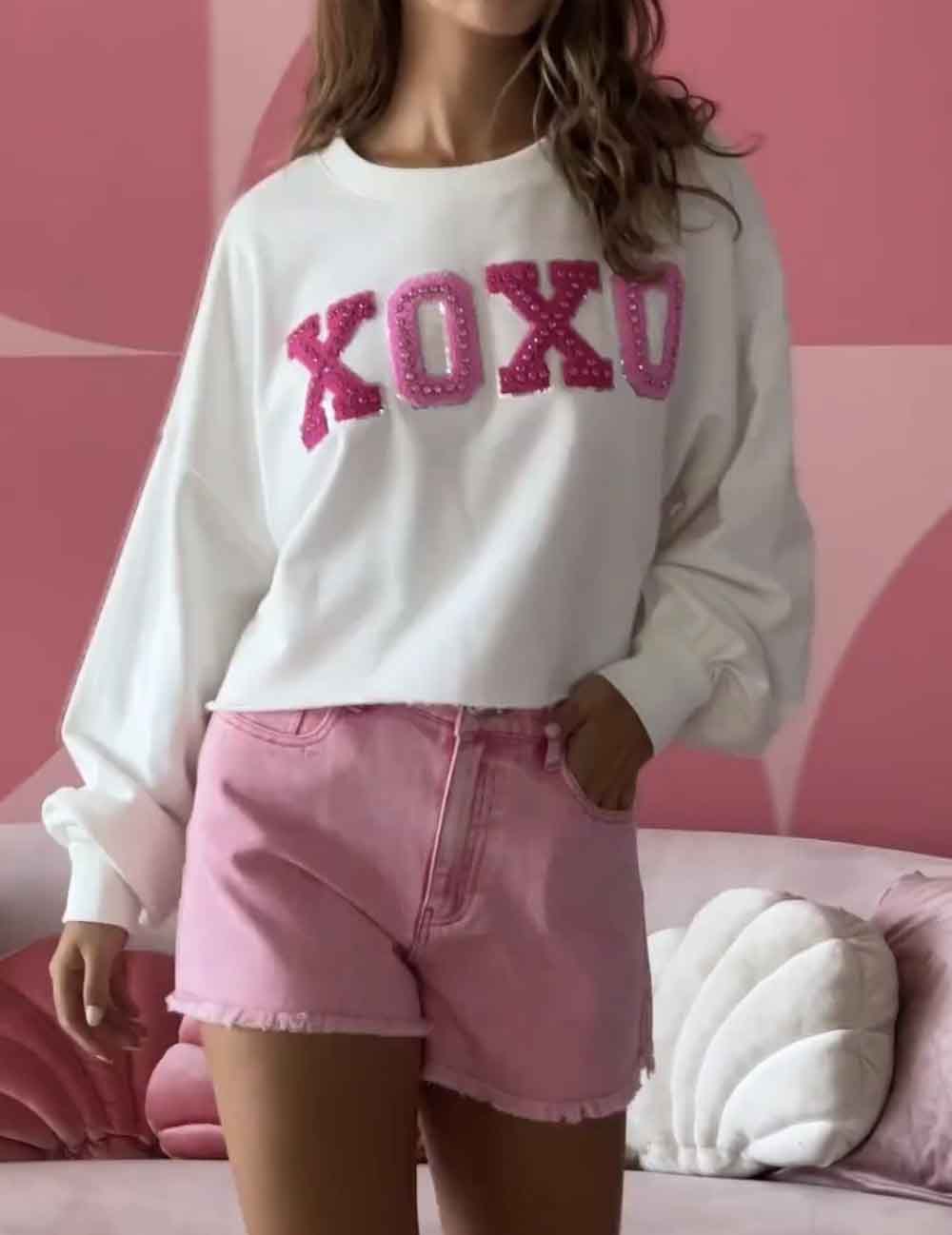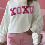 Ladies Round Collar Long Sleeves XOXO Pullover Sweatshirt