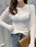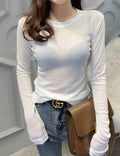 Ladies Round Neck Blouse See Through Layering Top SKT41343