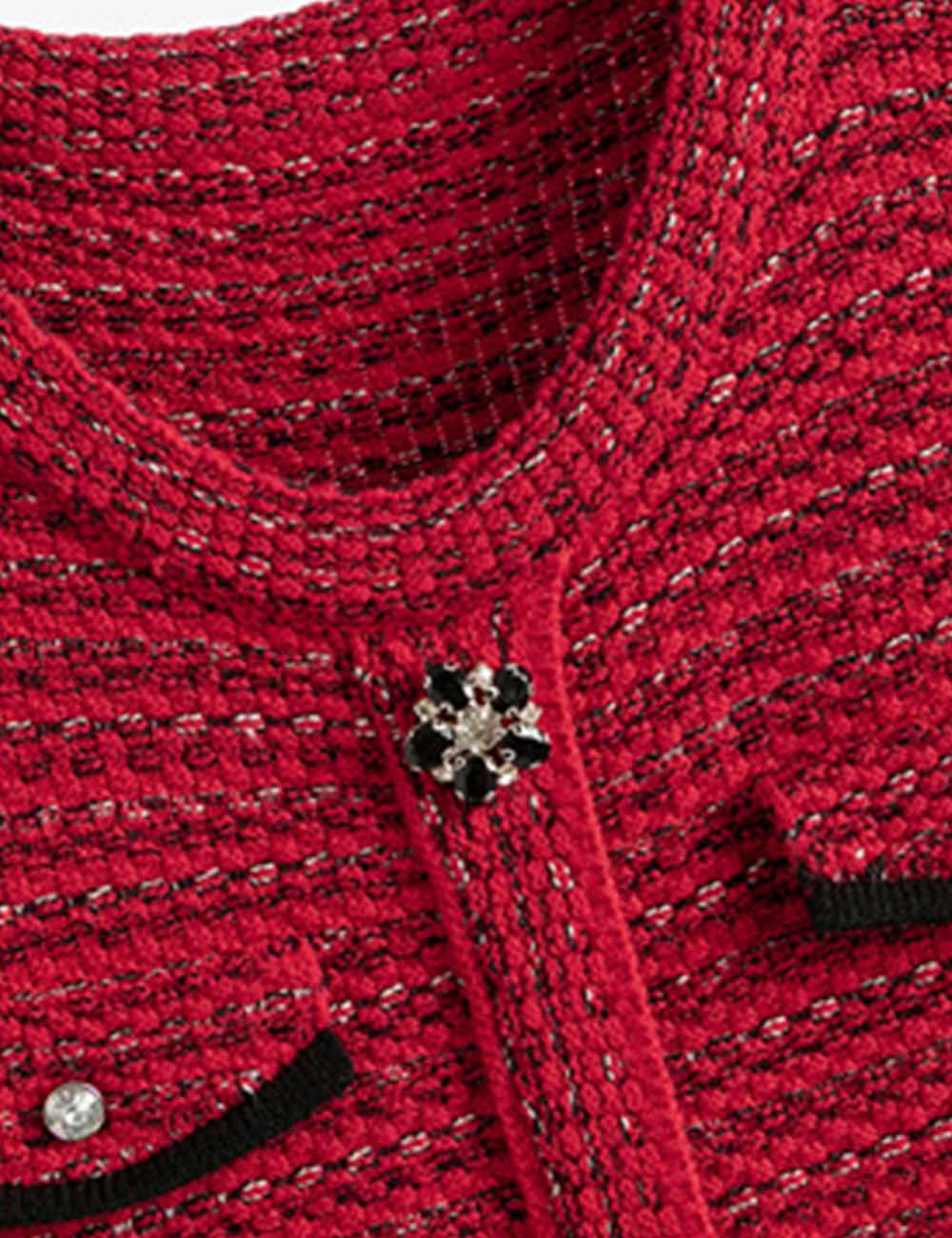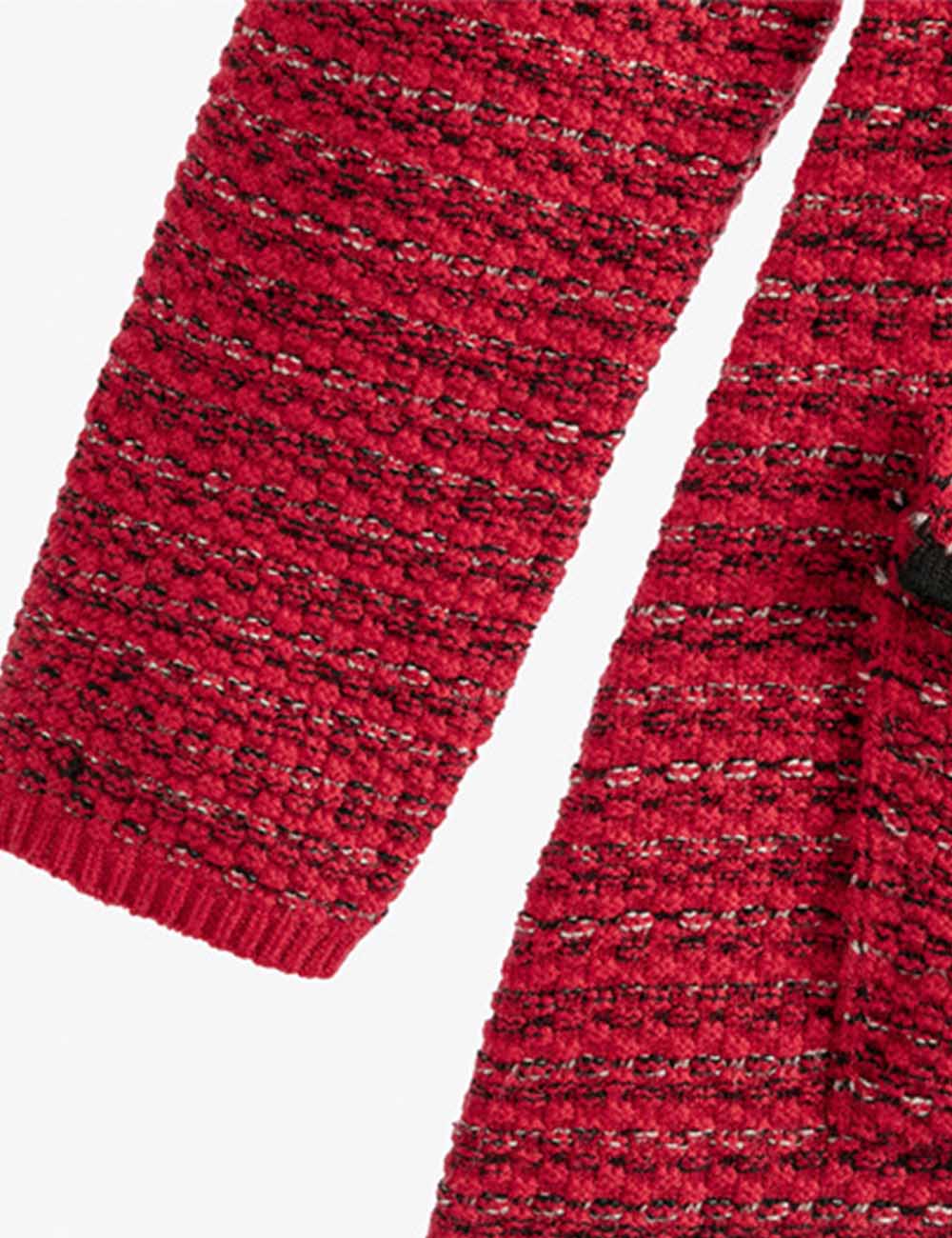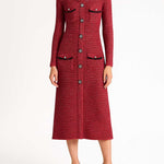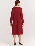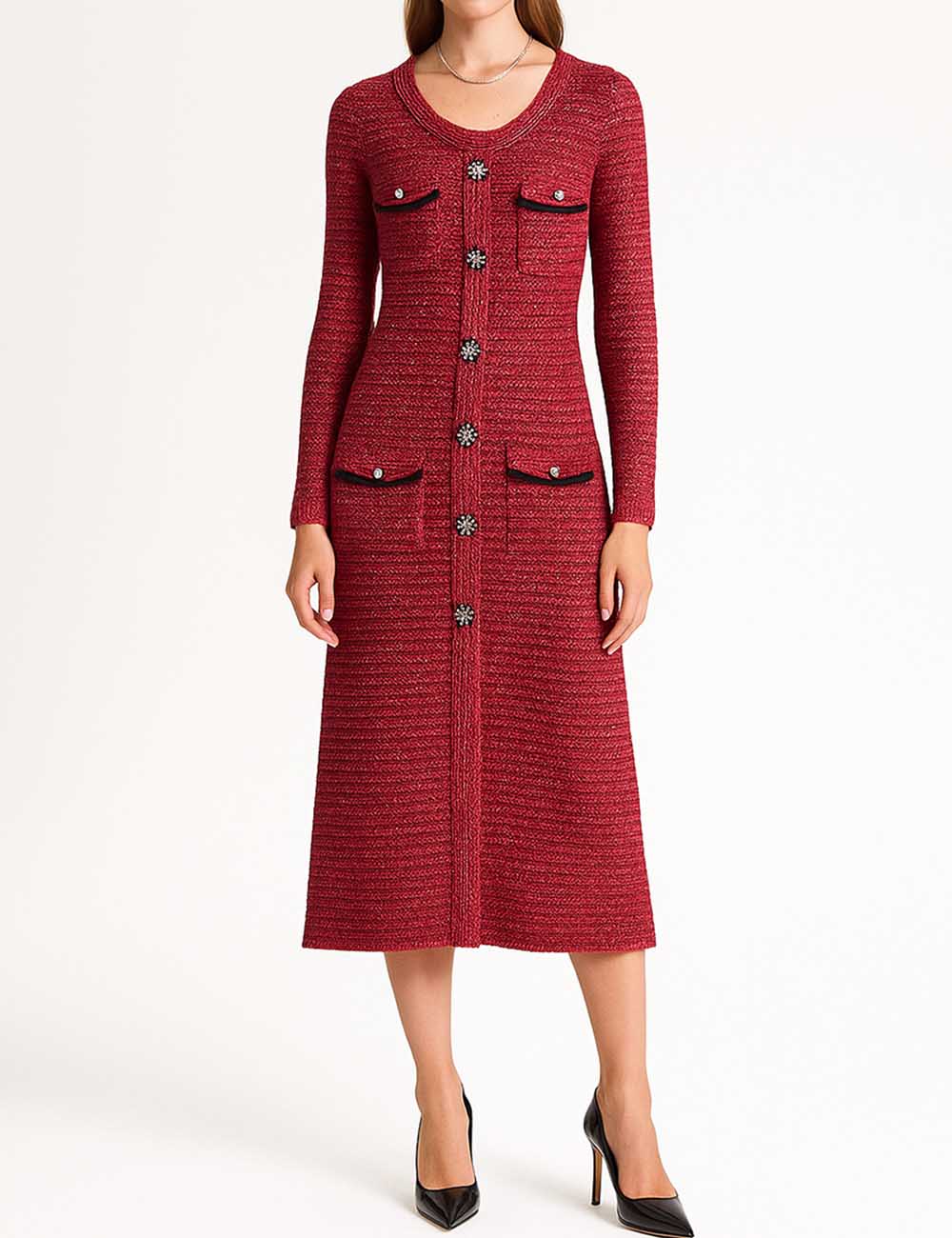 Ladies Round Neck Button Hip Wrap Knit Midi Dress