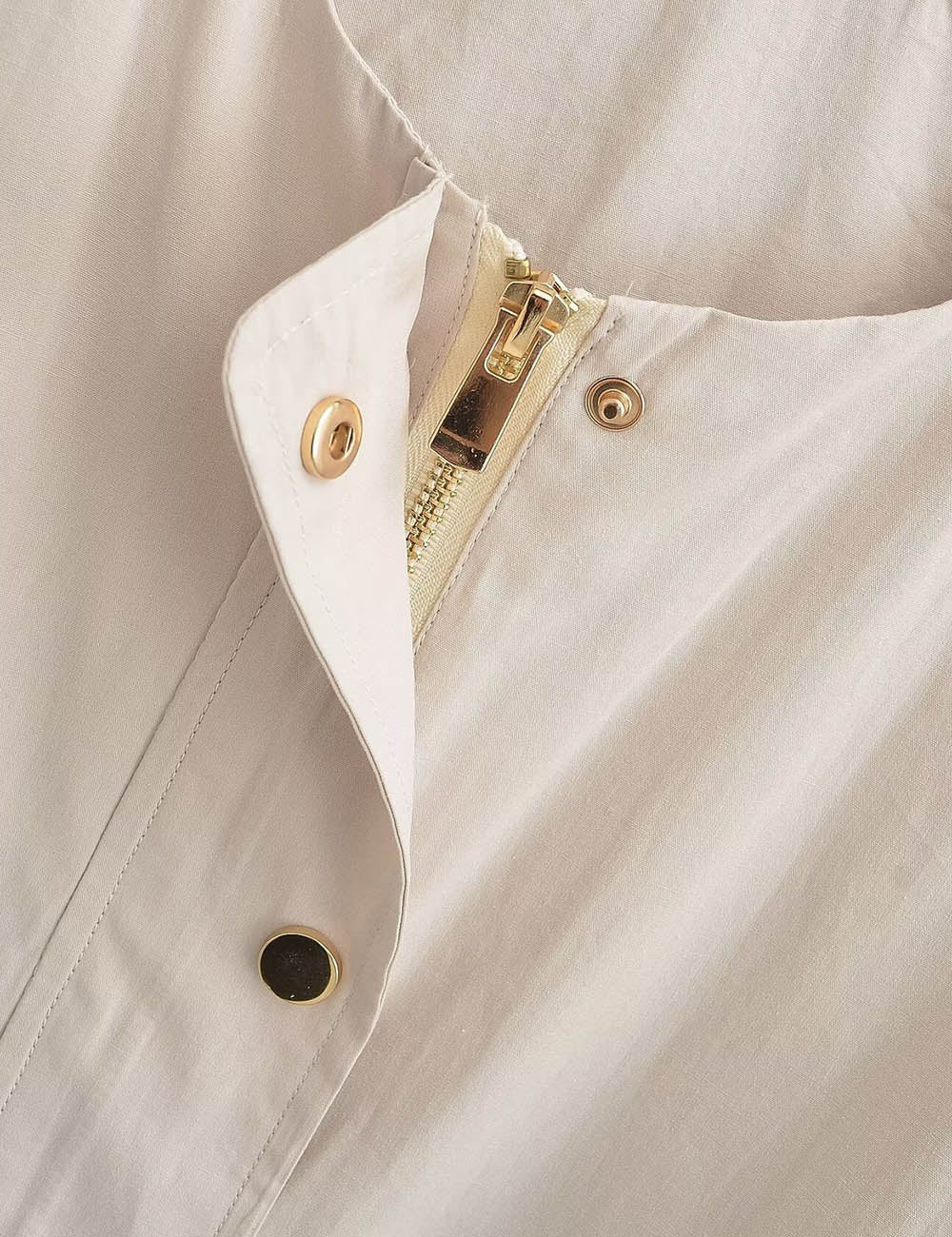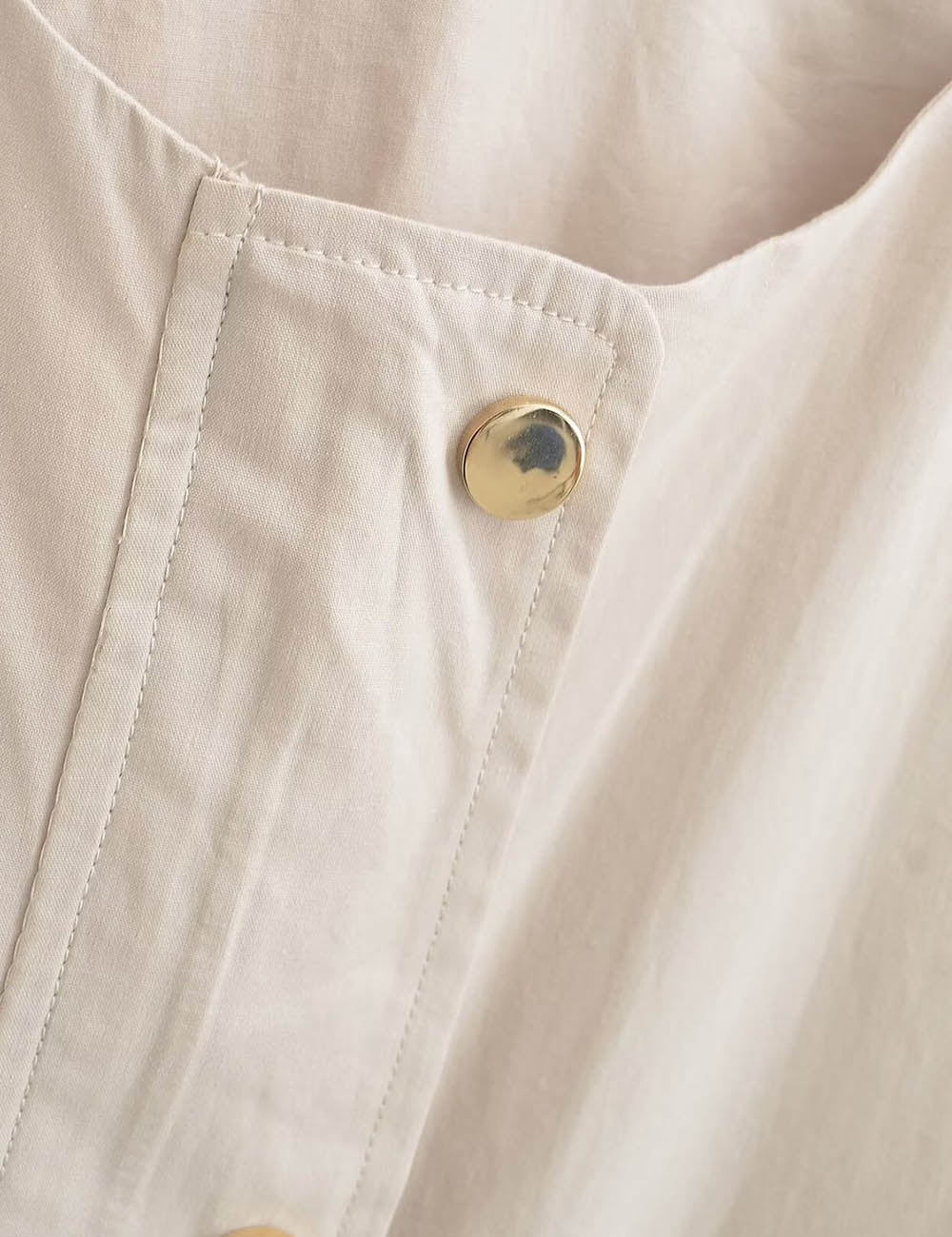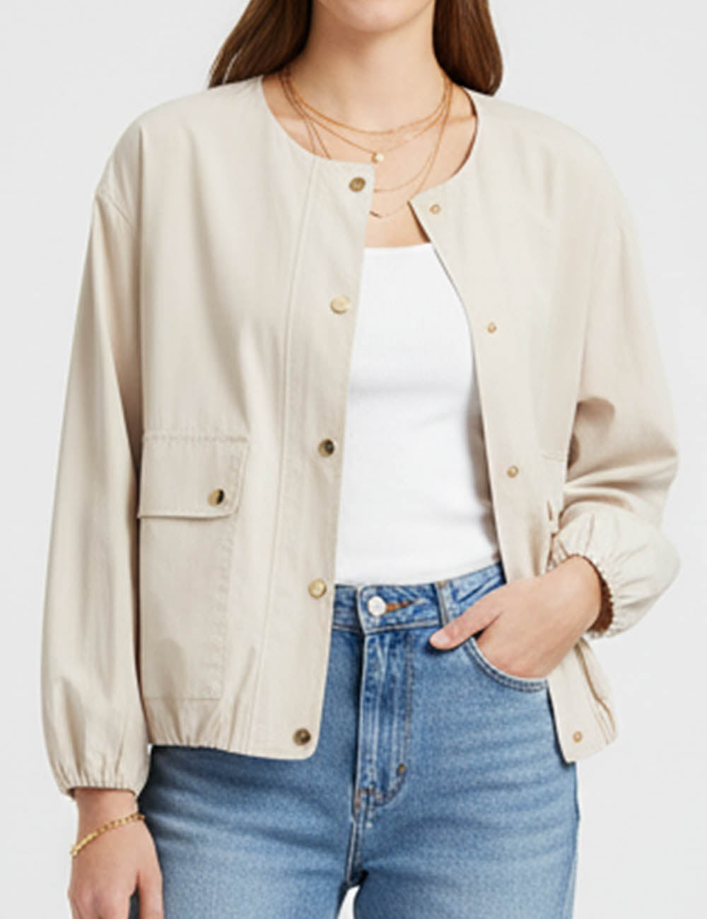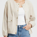 Ladies Round Neck Button Long Sleeves Flap Pocket Jacket