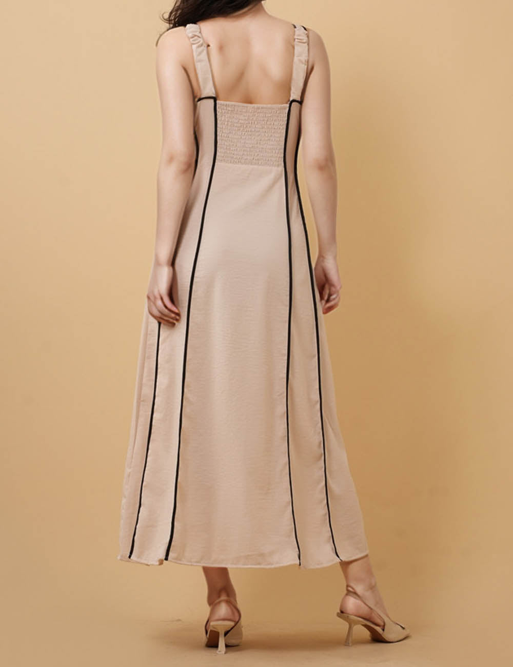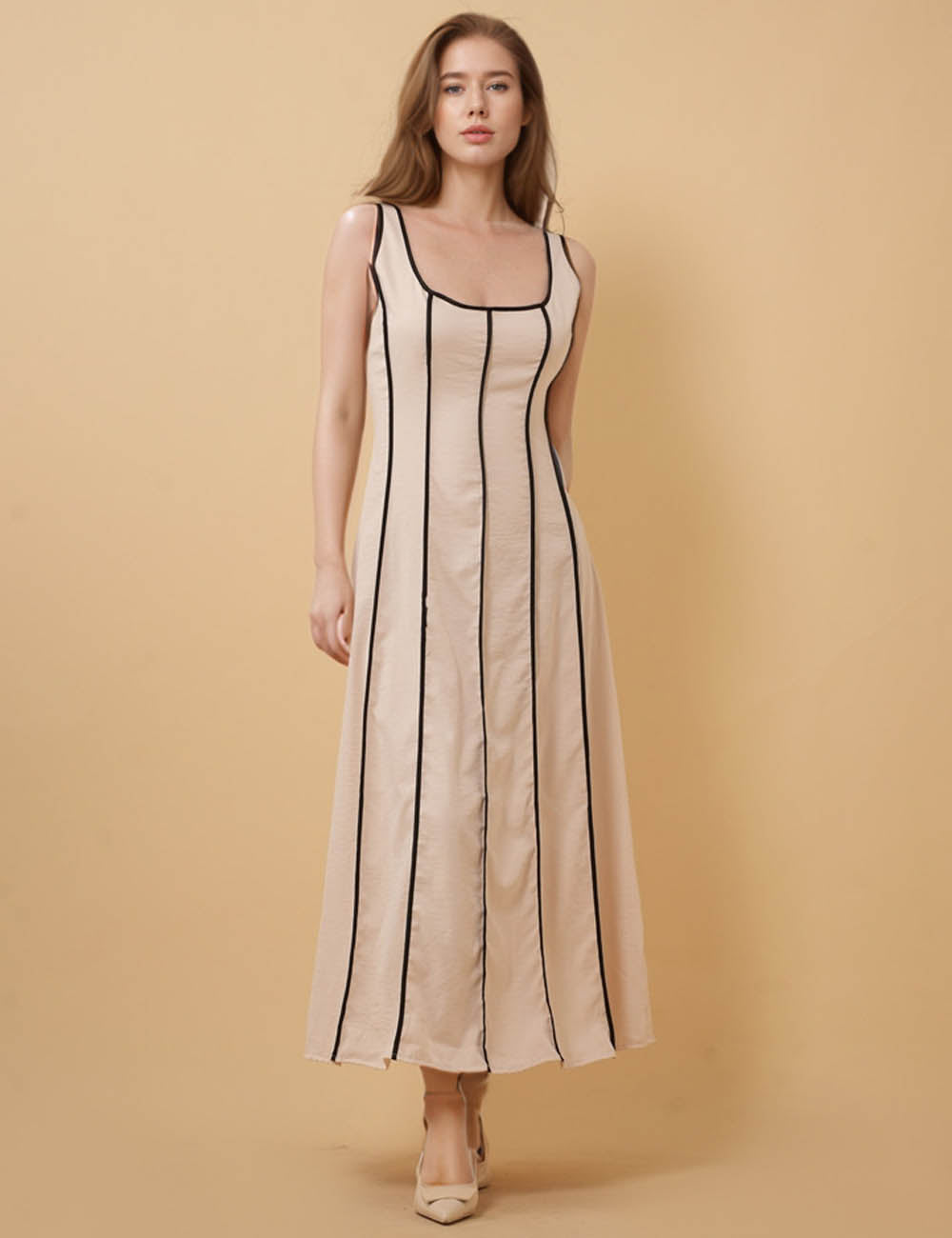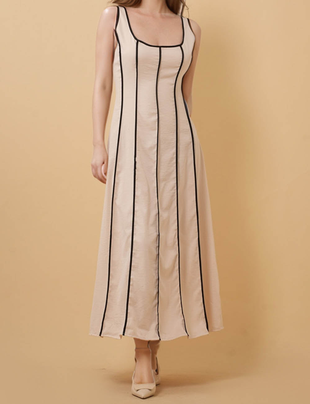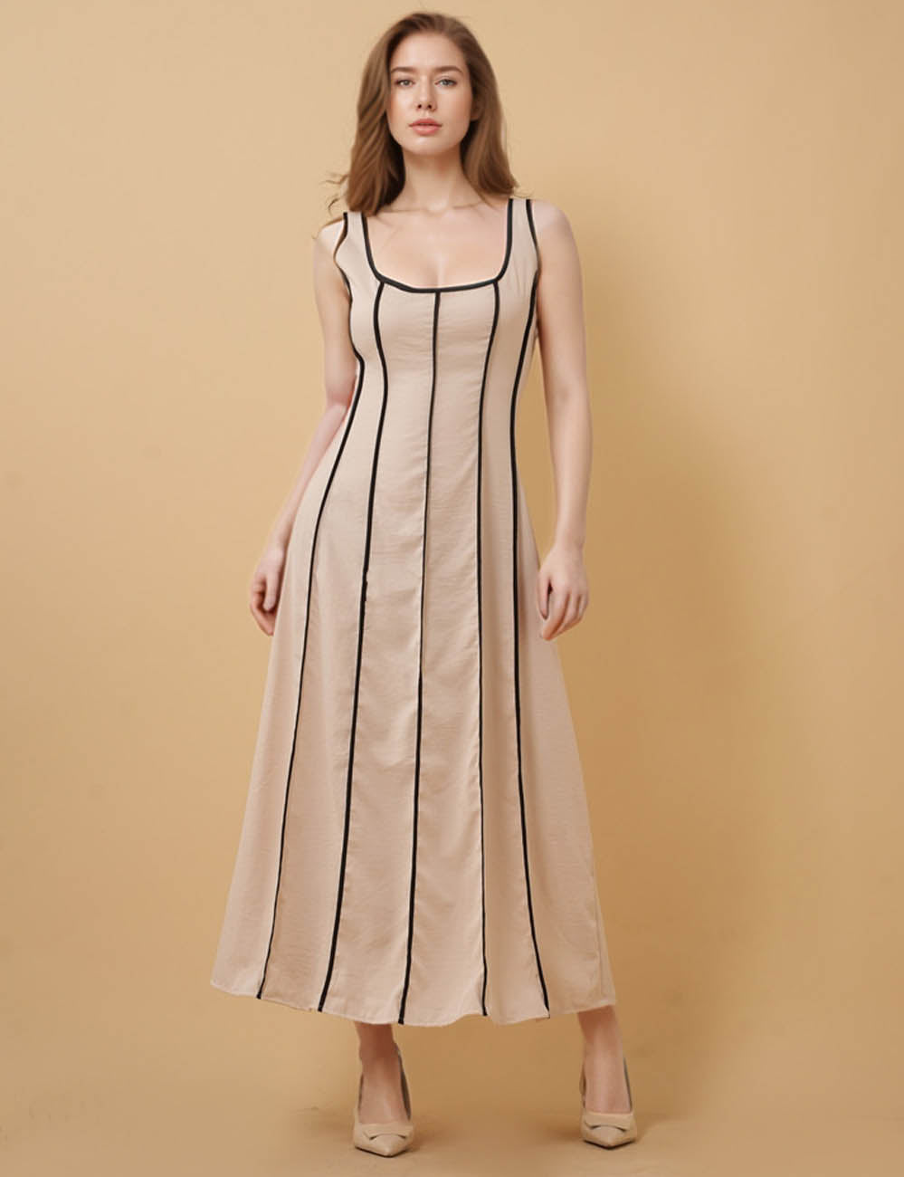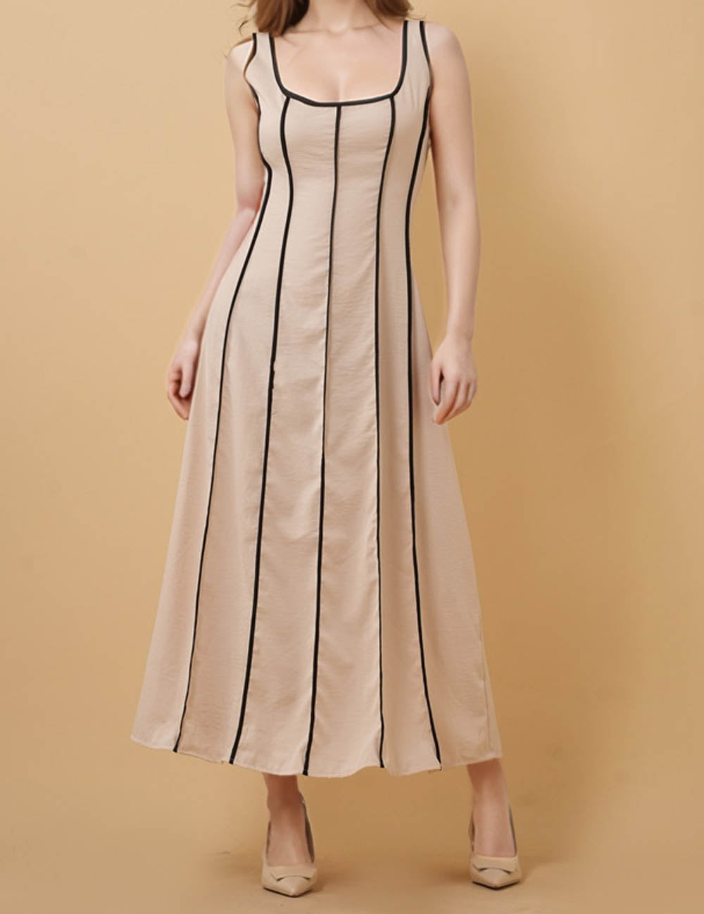 Ladies Round Neck Color Block Sleeveless Midi Dress 8SKD51273