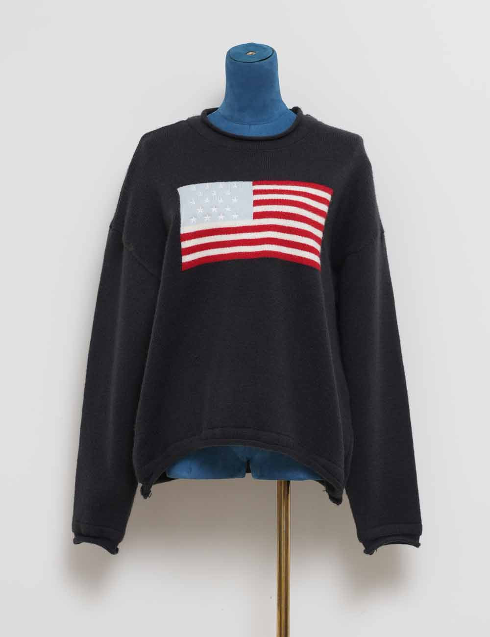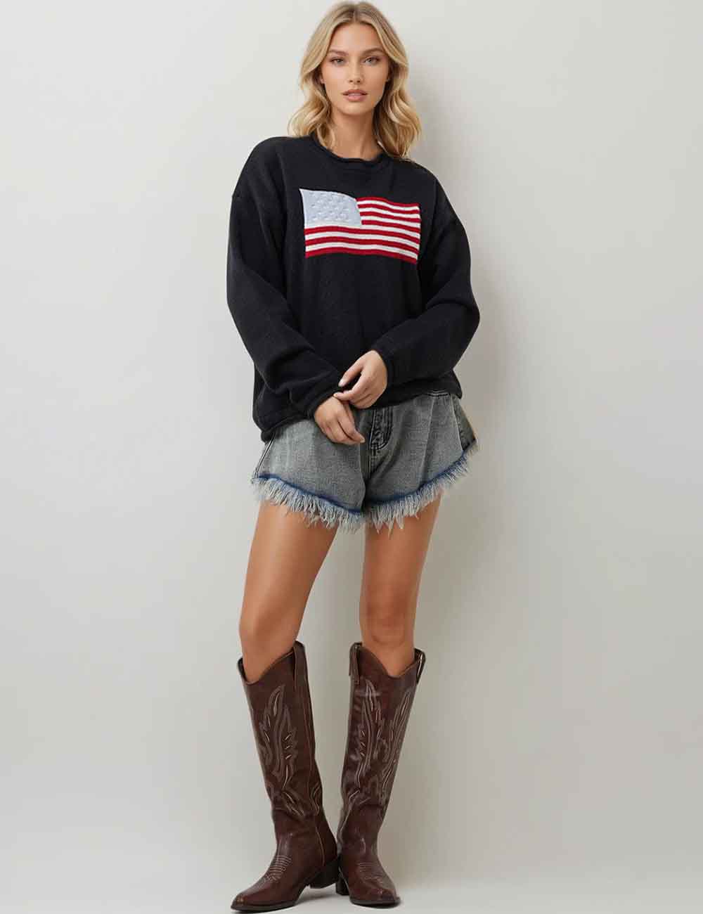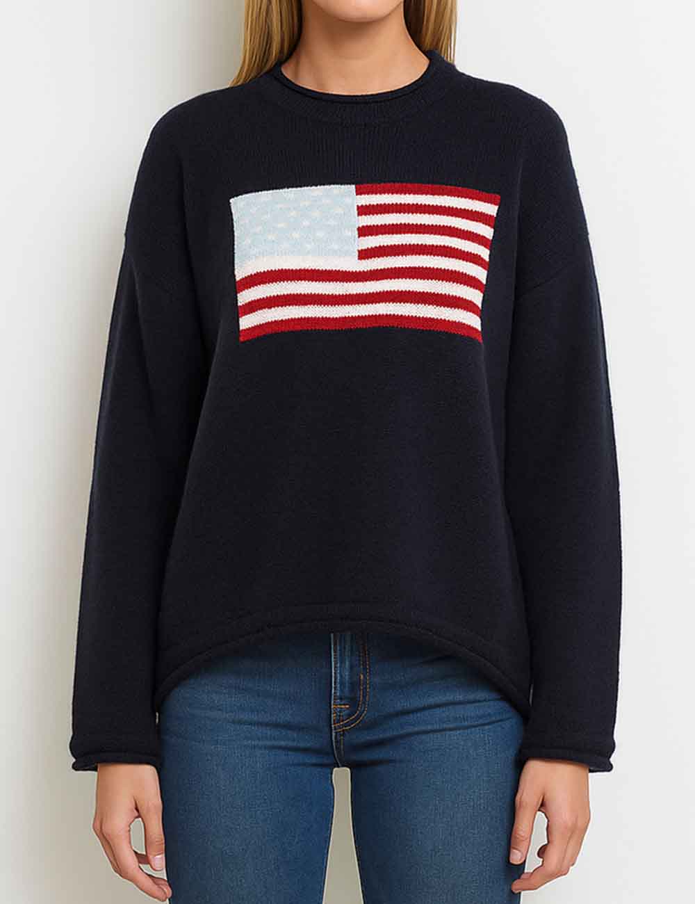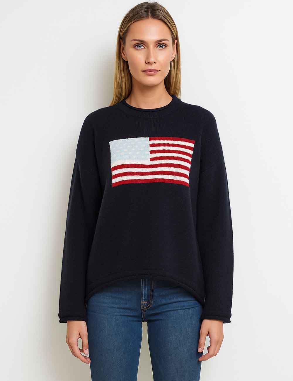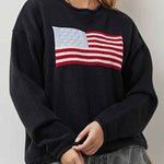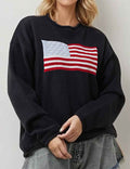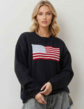 Ladies Round Neck Flag Pattern Long Sleeves Knit Sweater