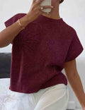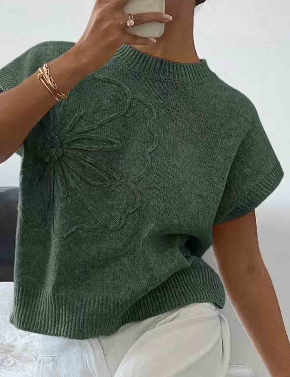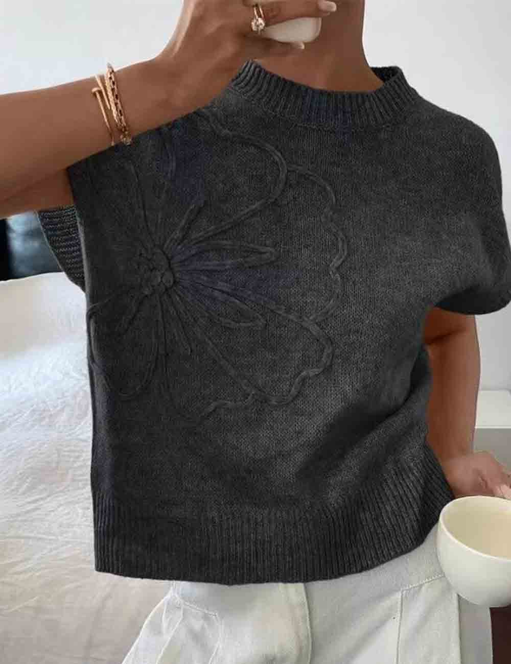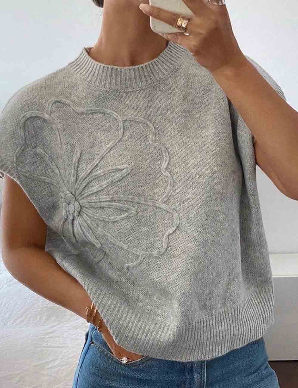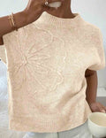 Ladies Round Neck Floral Jacquard Ribbed Knit Vest
