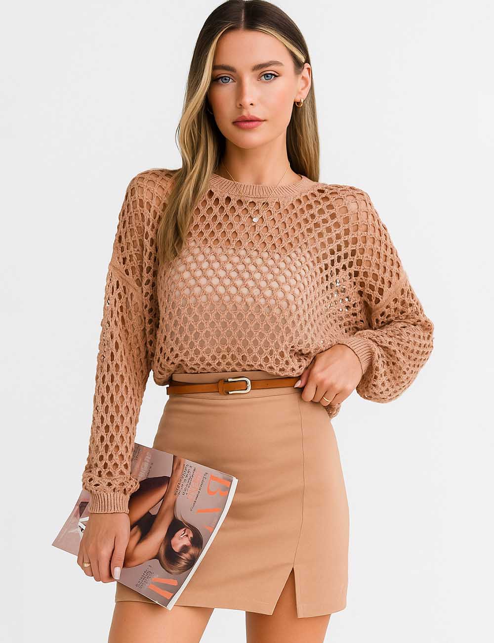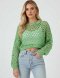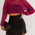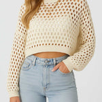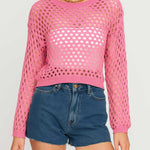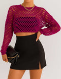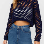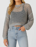 Ladies Round Neck Hollow Out Cropped Knit Blouse