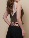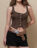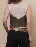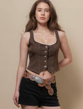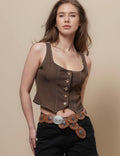 Ladies Round Neck Lace Back Button Vest Top SKT51040