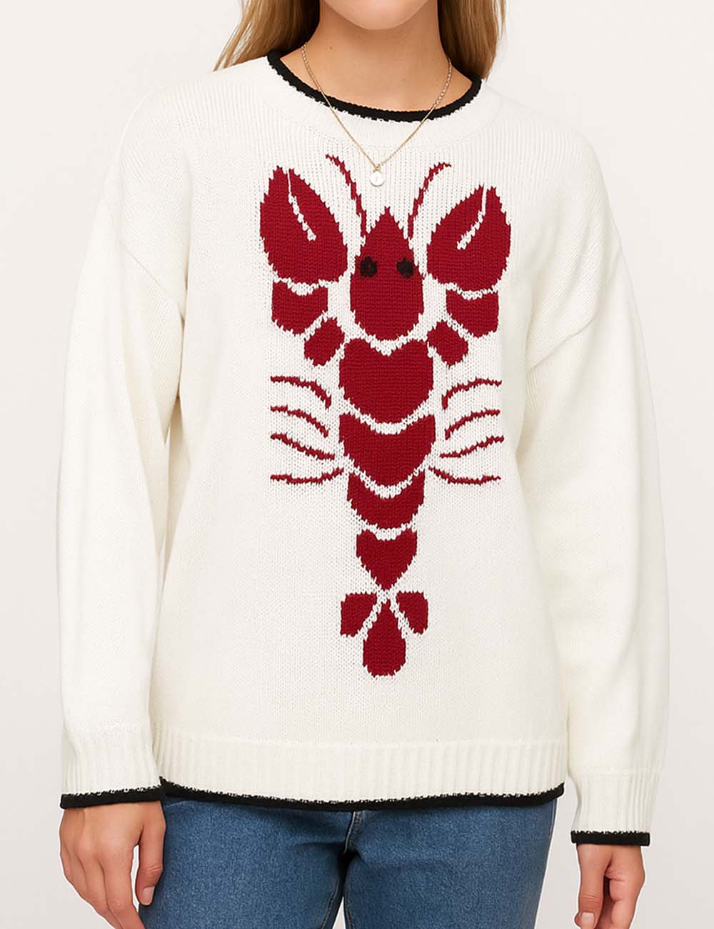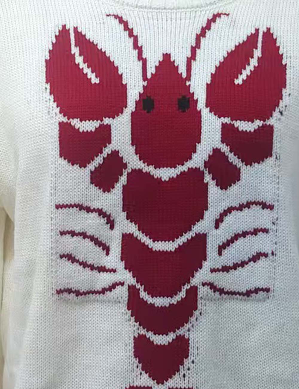 Ladies Round Neck Lobster Pattern Pullover Knit Sweater