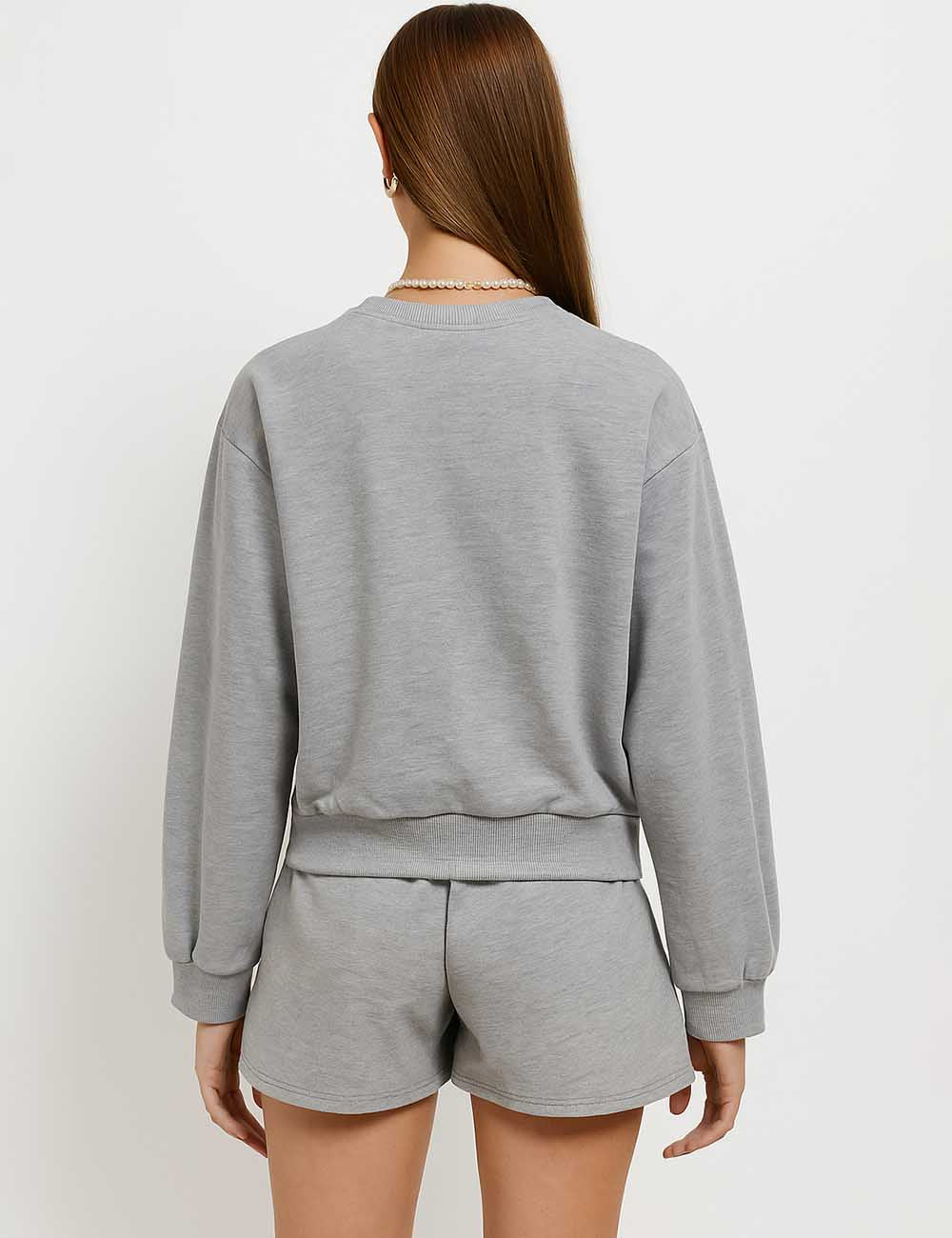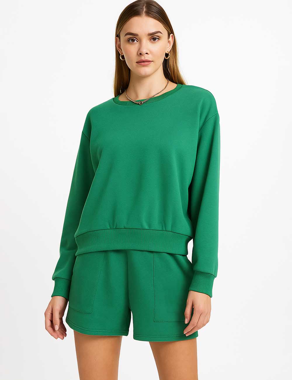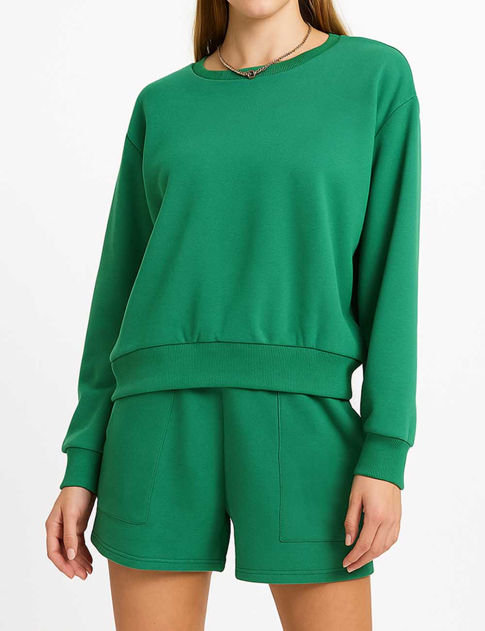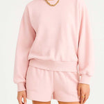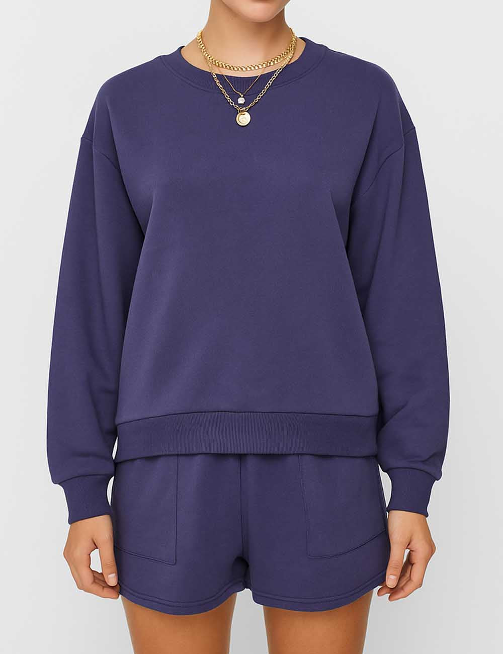 Ladies Round Neck Long Sleeves Sweatshirt & Shorts 2PCS Set