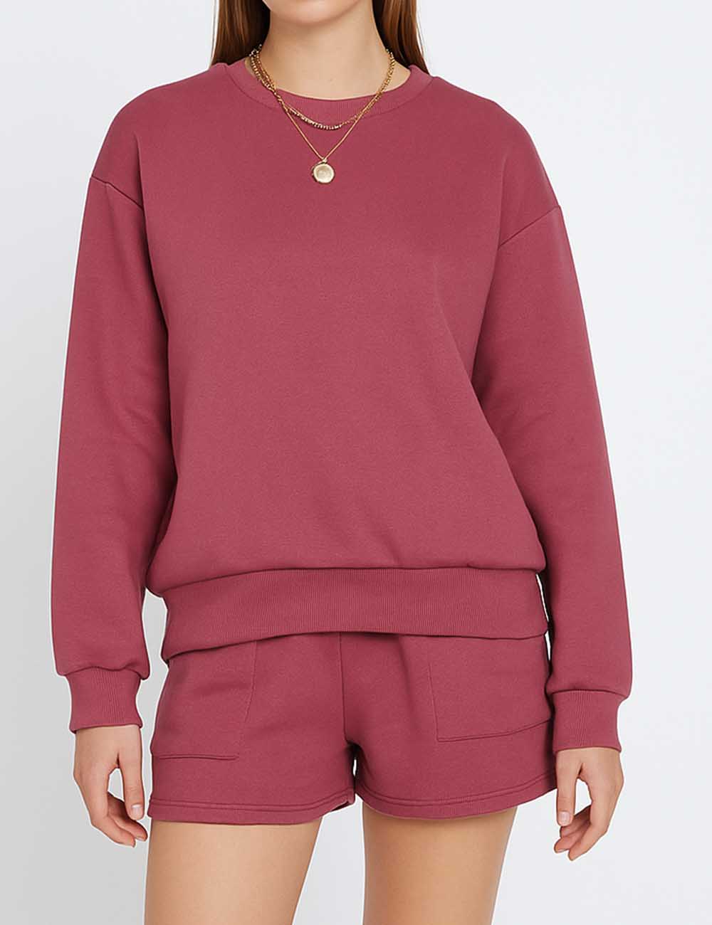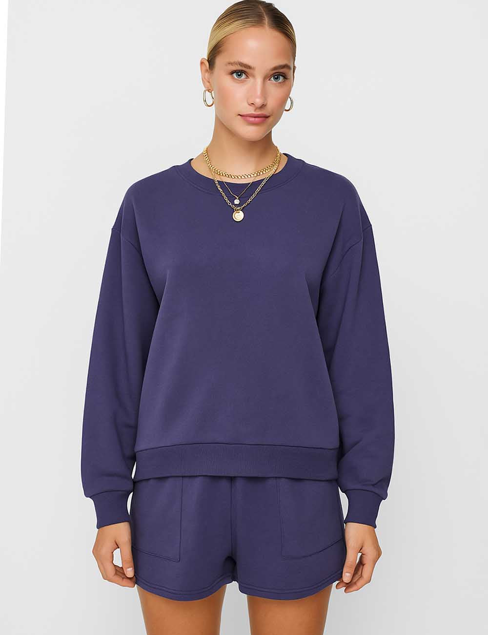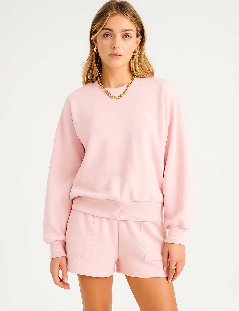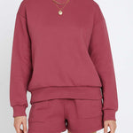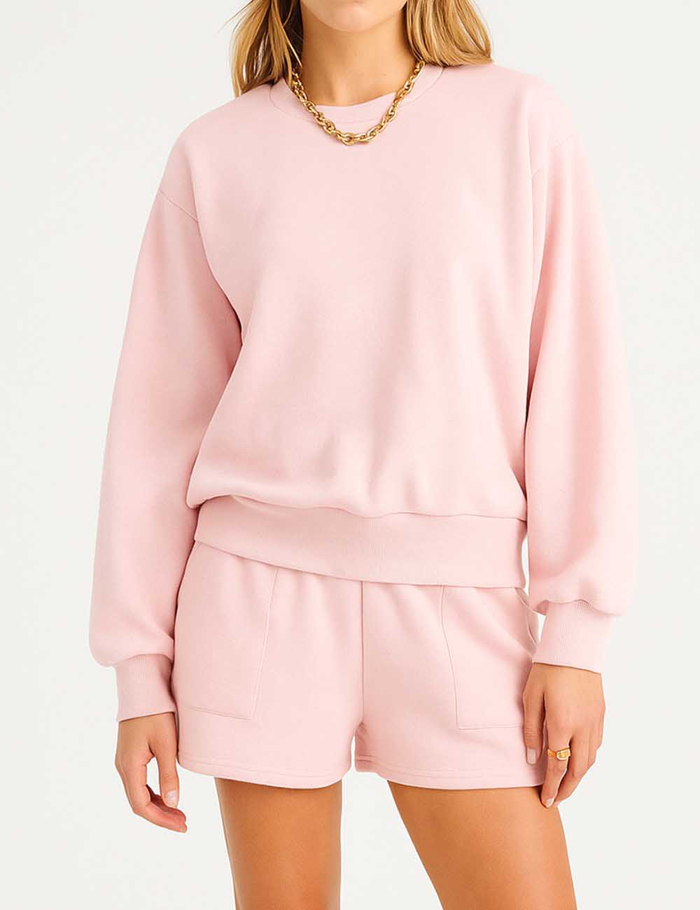 Ladies Round Neck Long Sleeves Sweatshirt & Shorts 2PCS Set