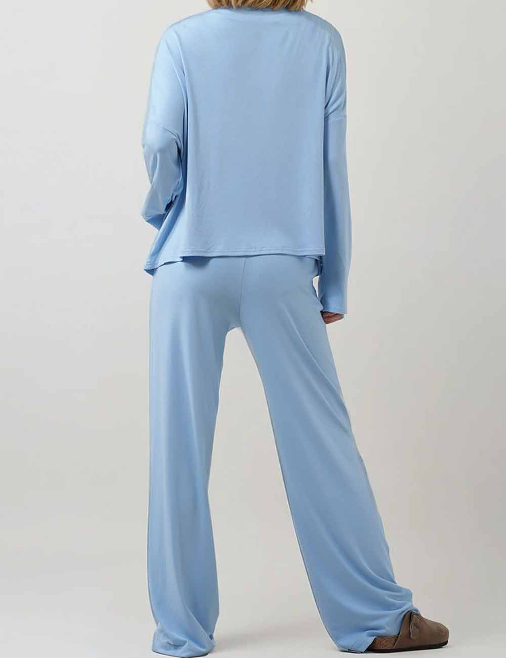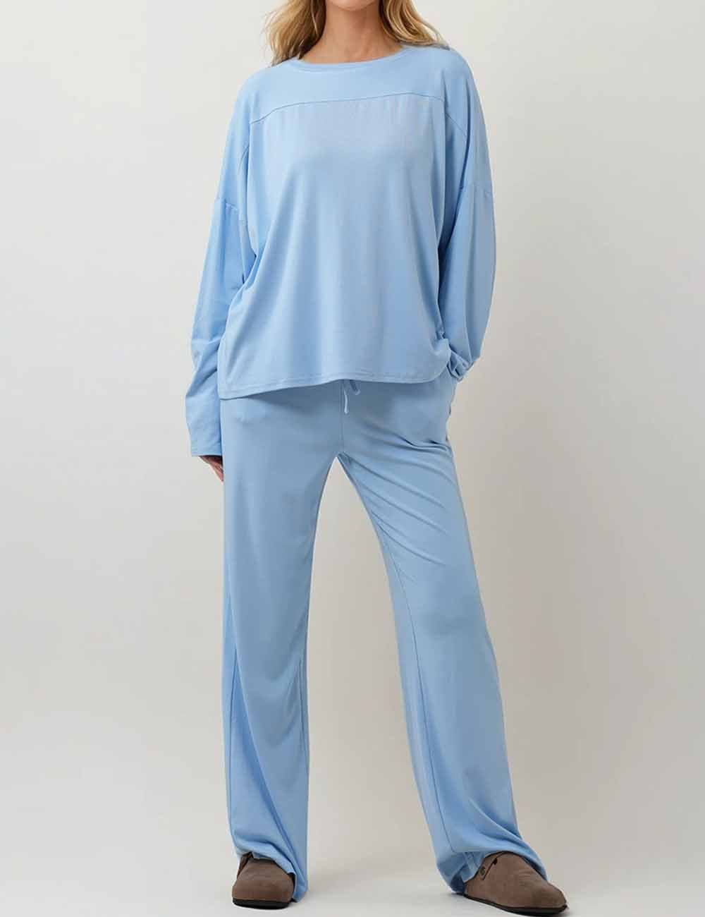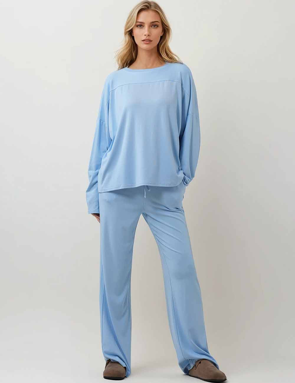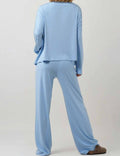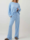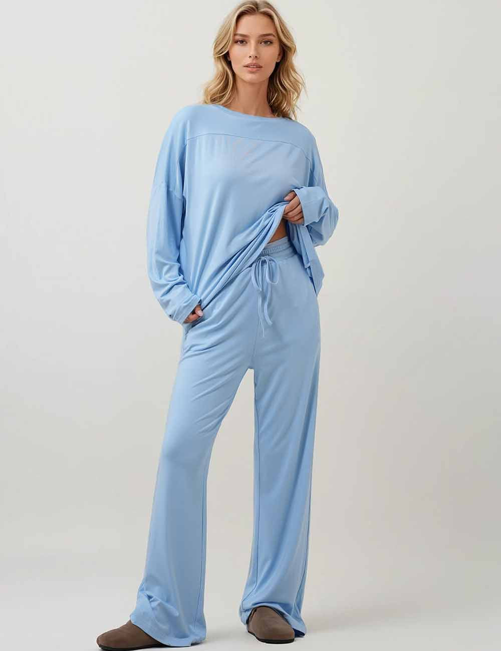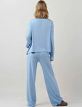 Ladies Round Neck Loungewear Solid Color Long Sleeves Top & Pants Set