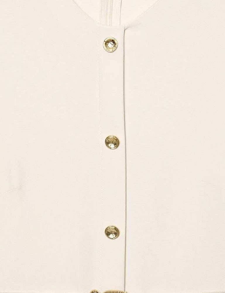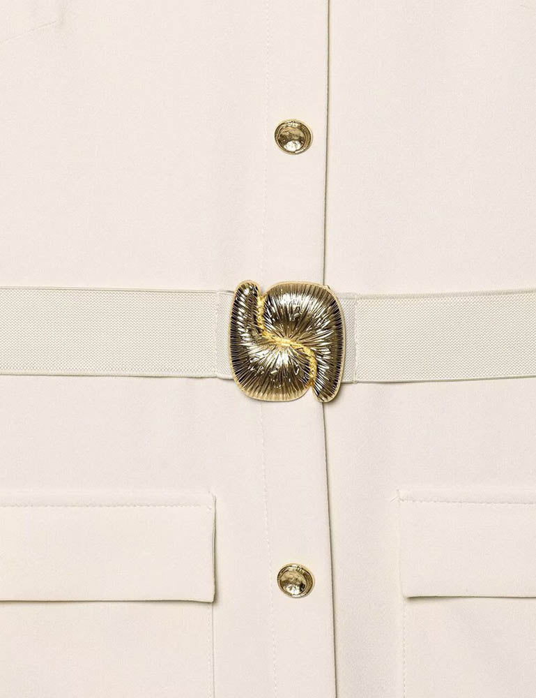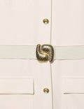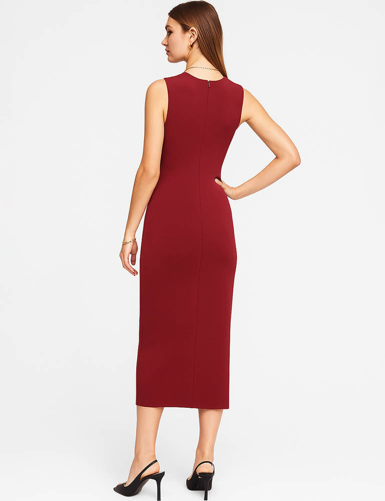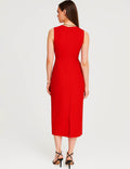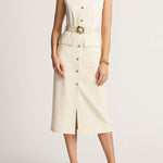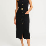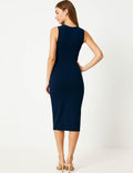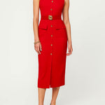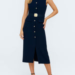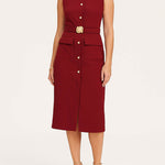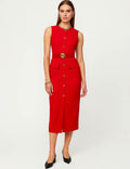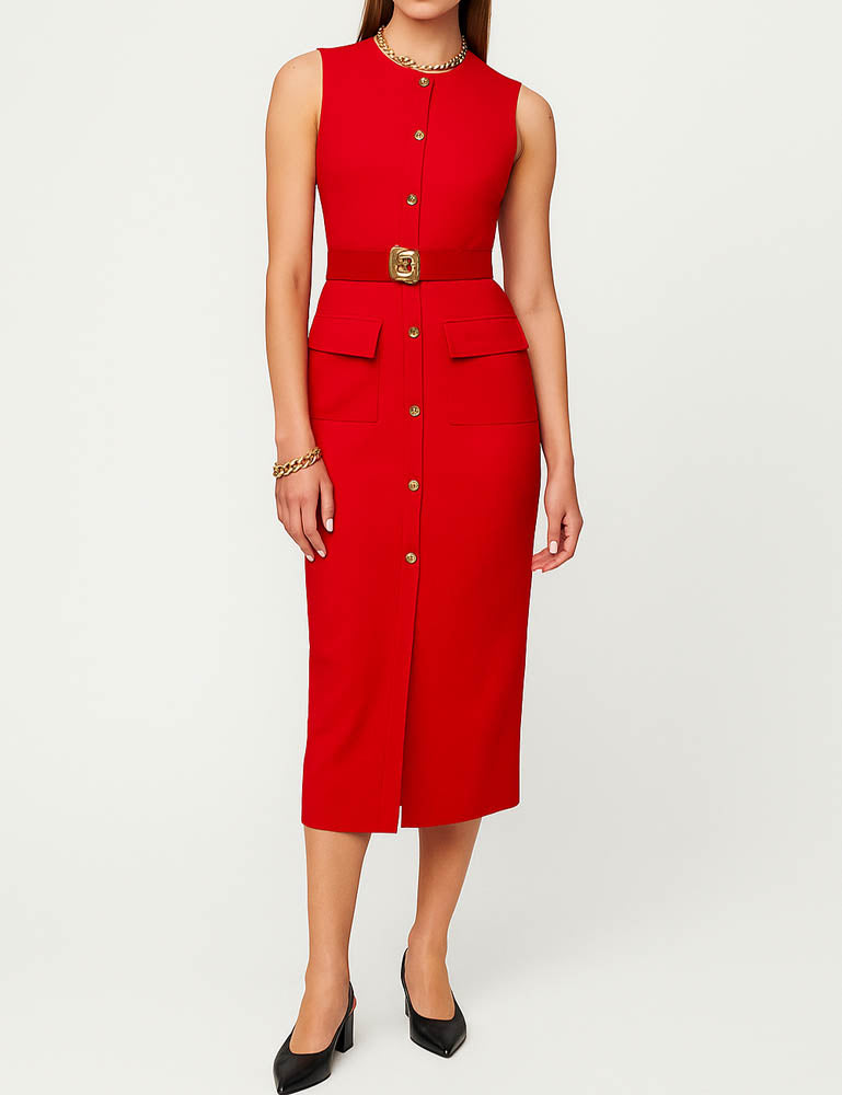 Ladies Round Neck Metal Button Sleeveless Belted Midi Dress