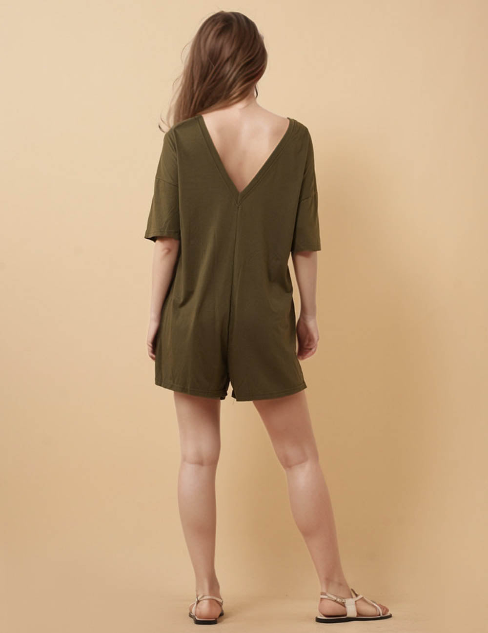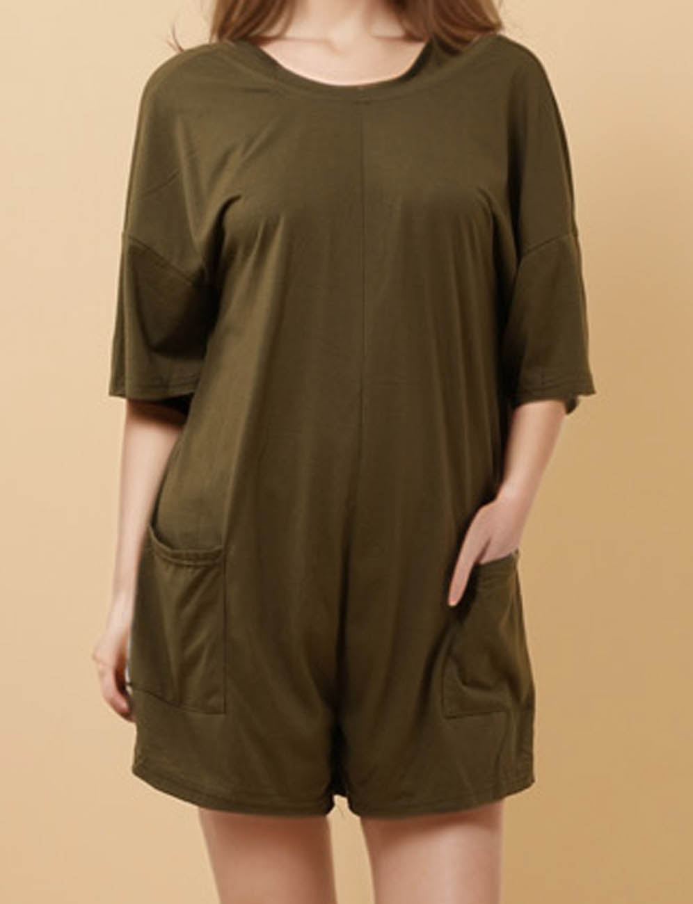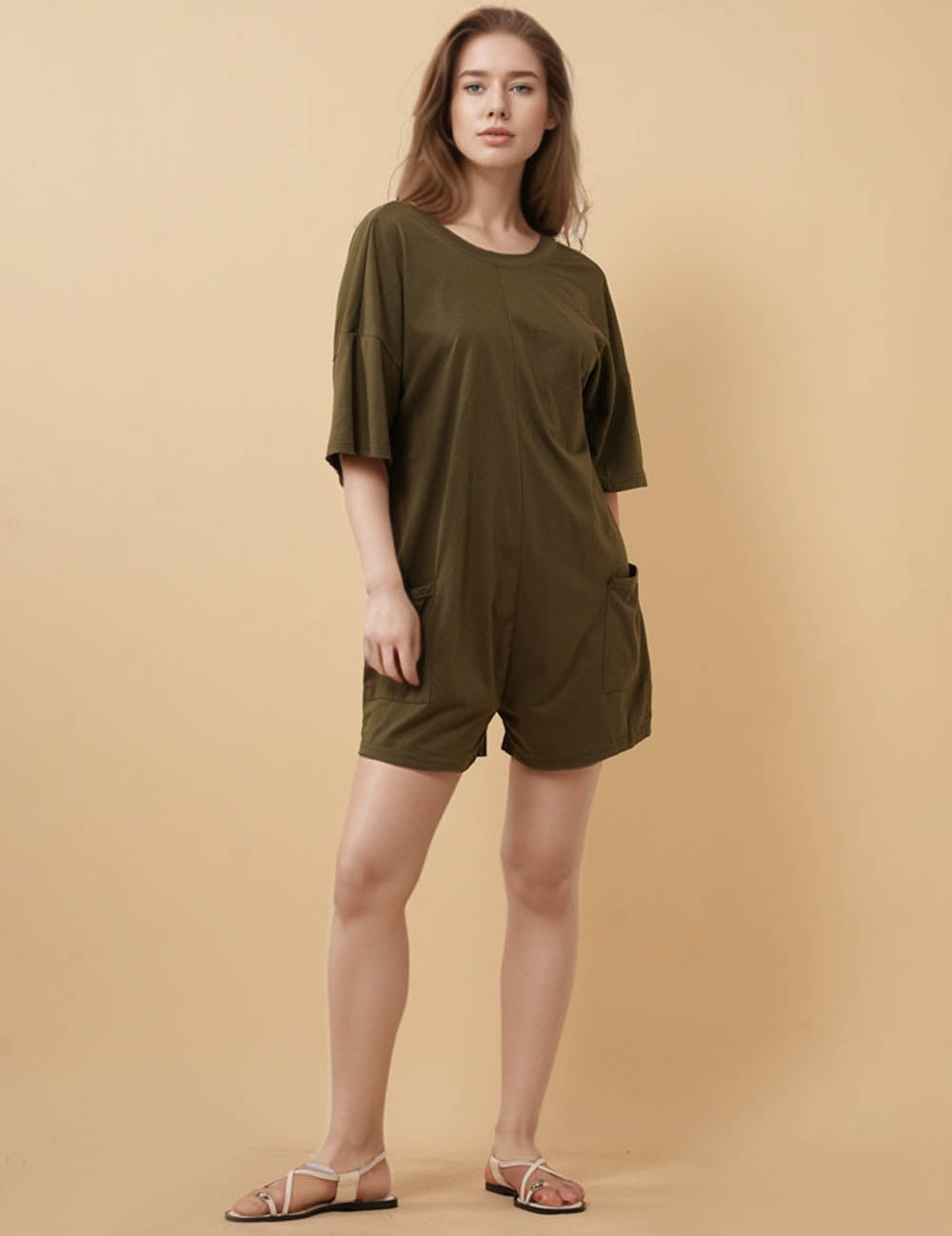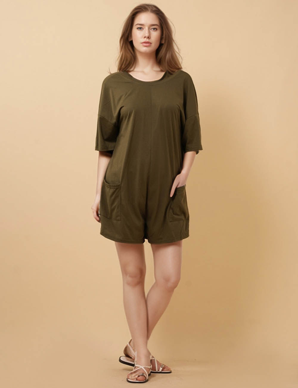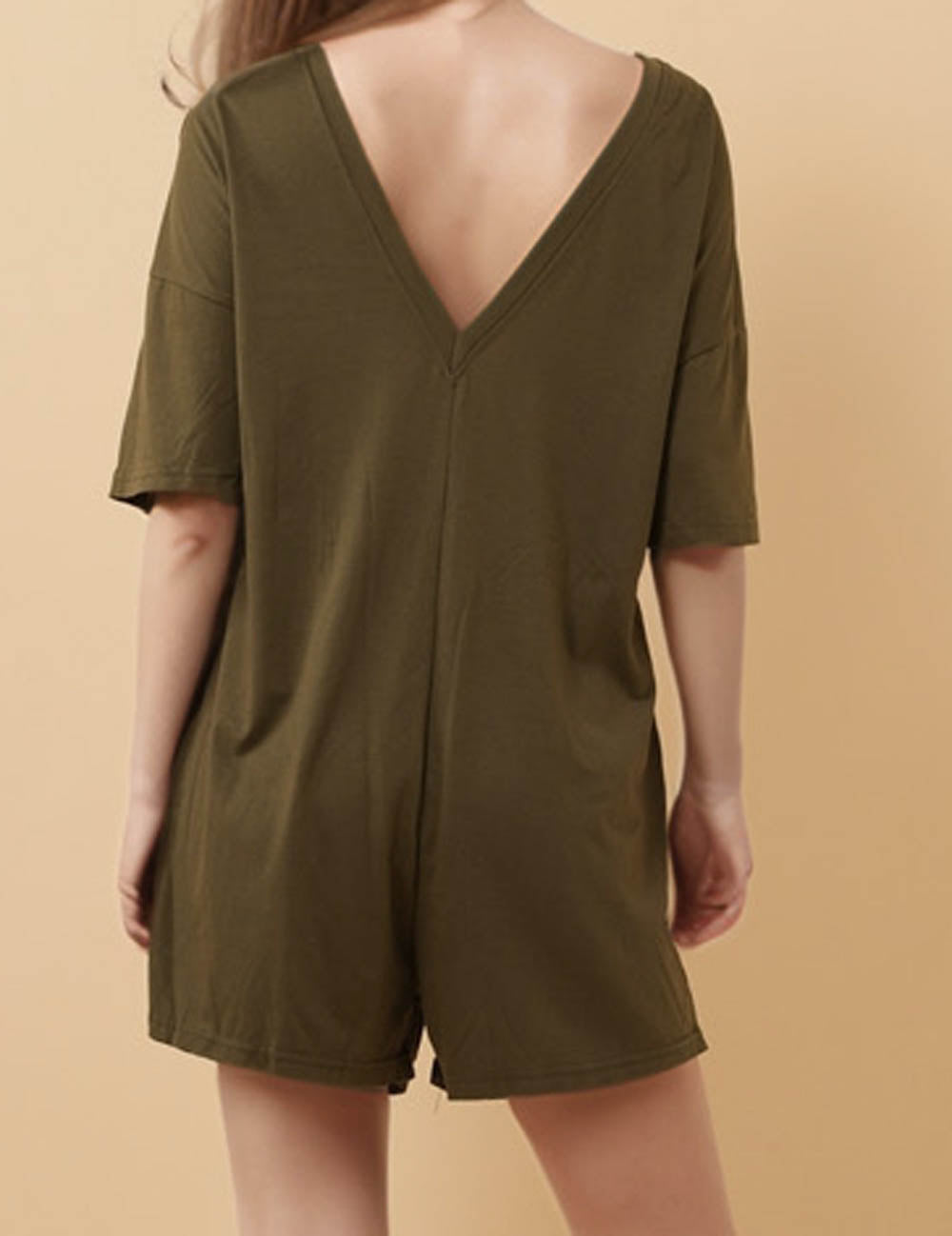 Ladies Round Neck Mid Sleeves Back Open Romper 8SKJ50385