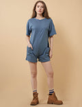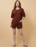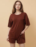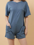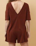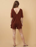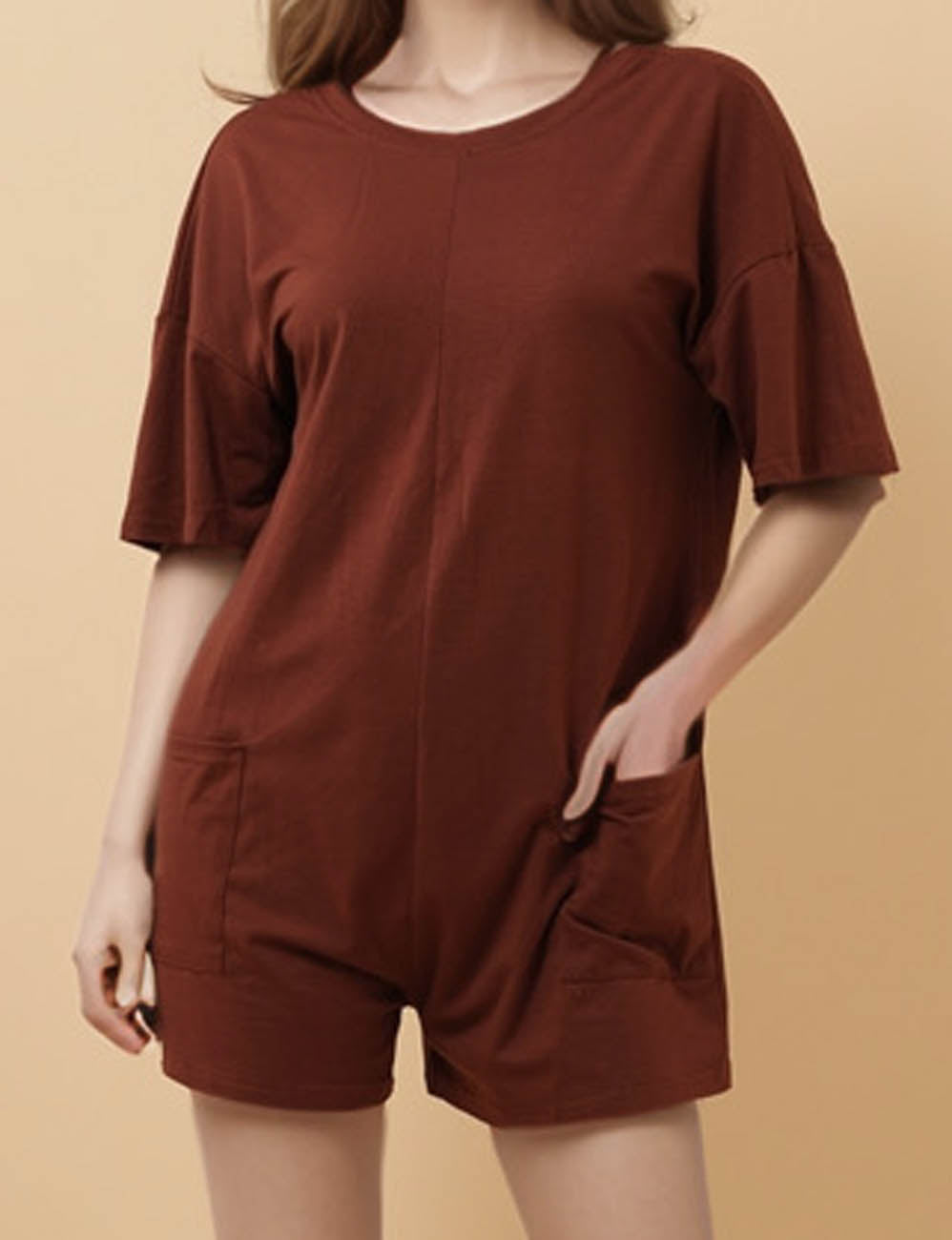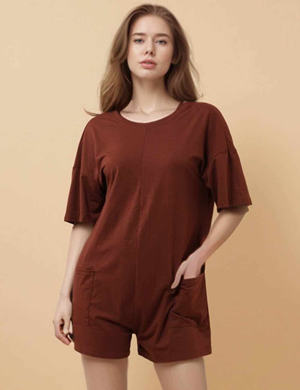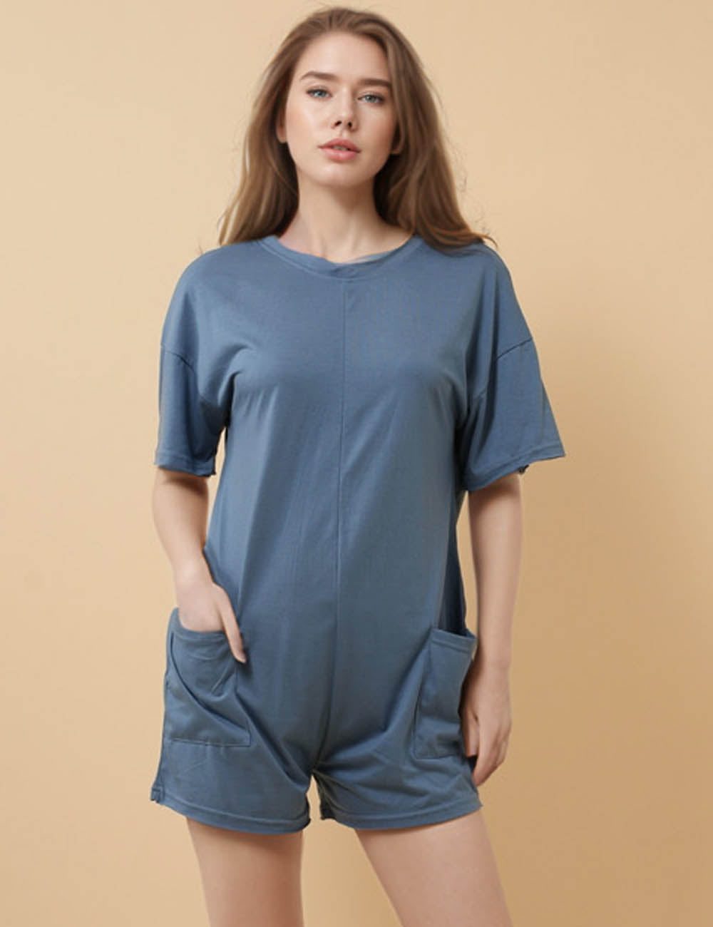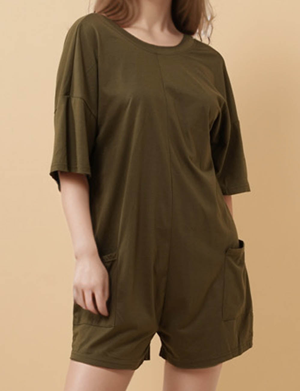 Ladies Round Neck Mid Sleeves Back Open Romper 8SKJ50385