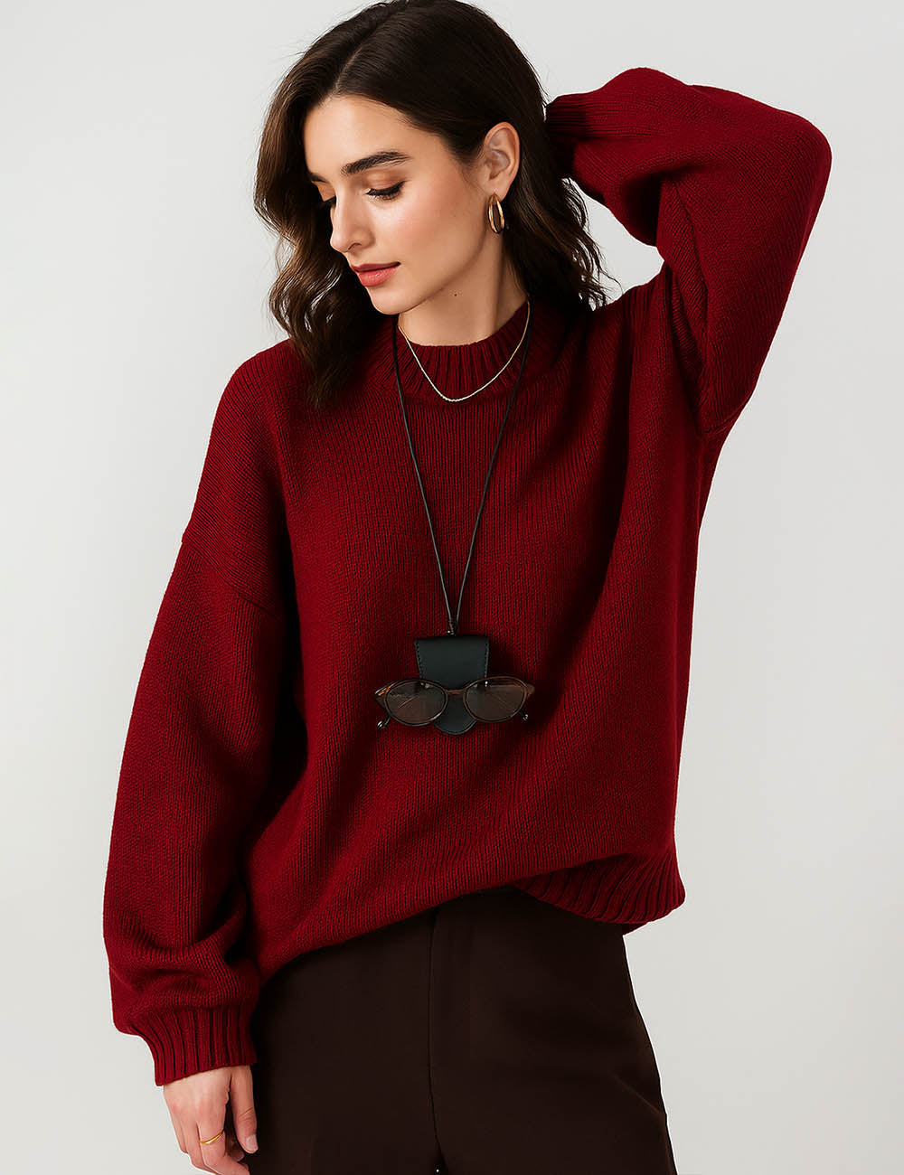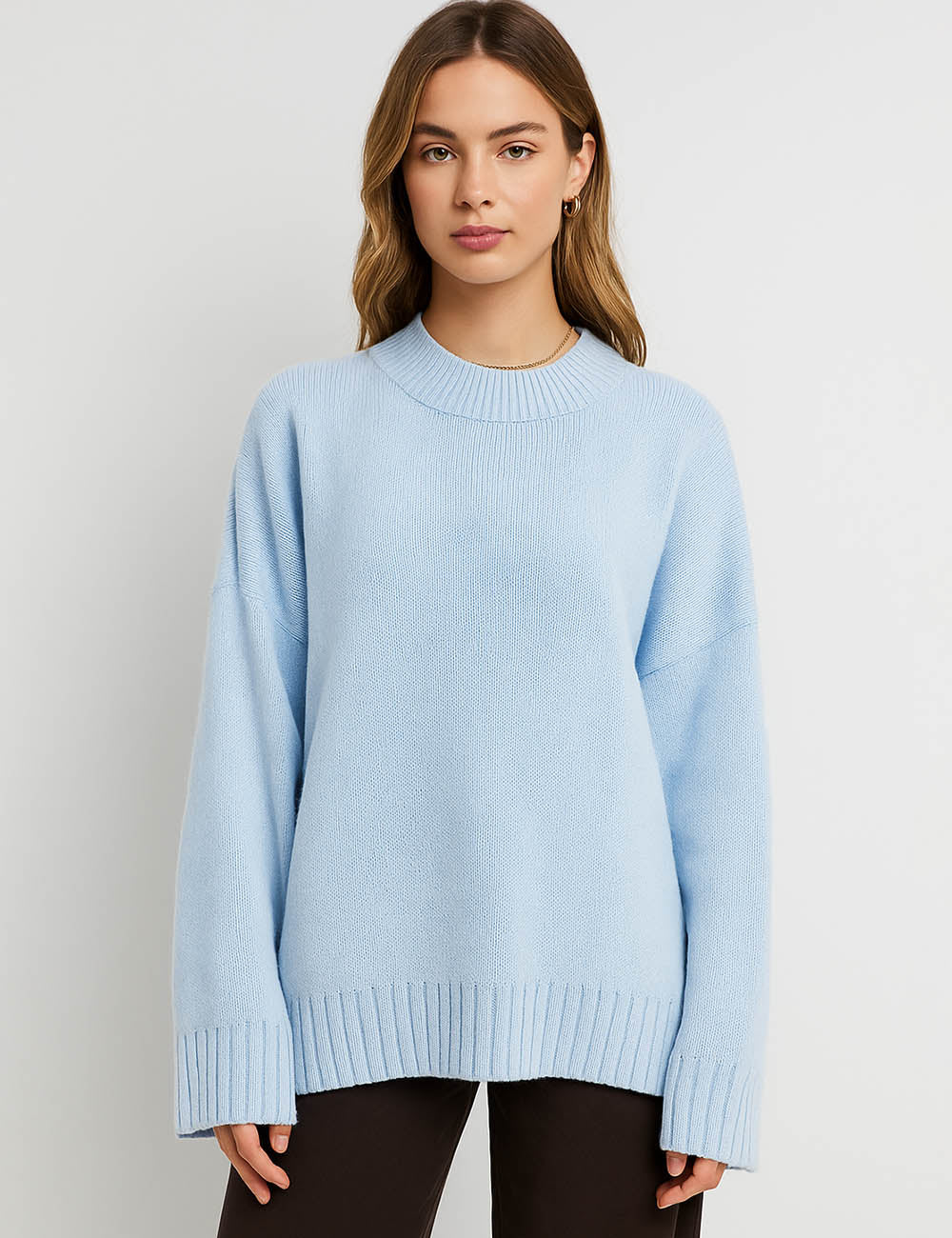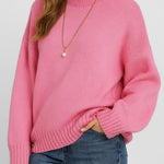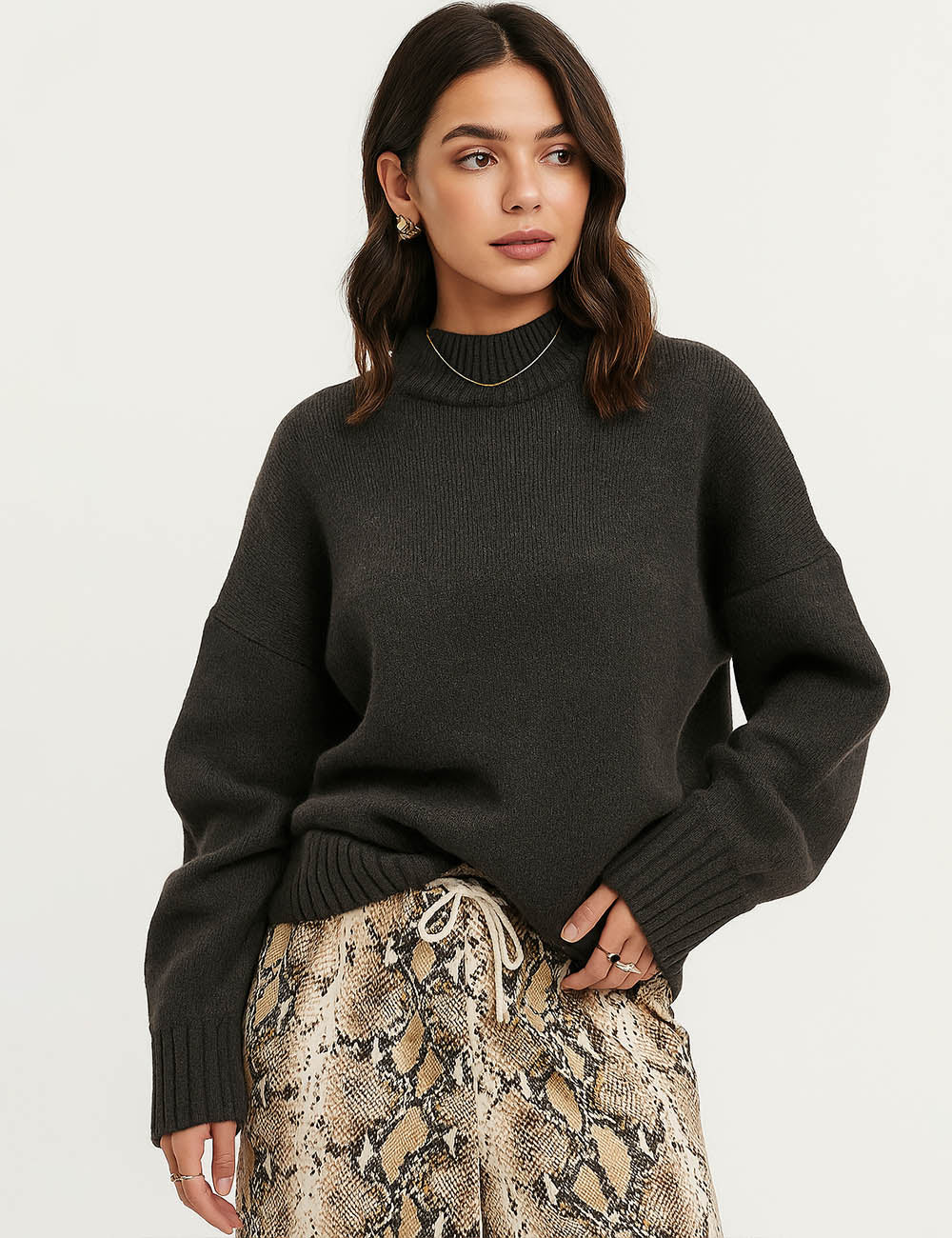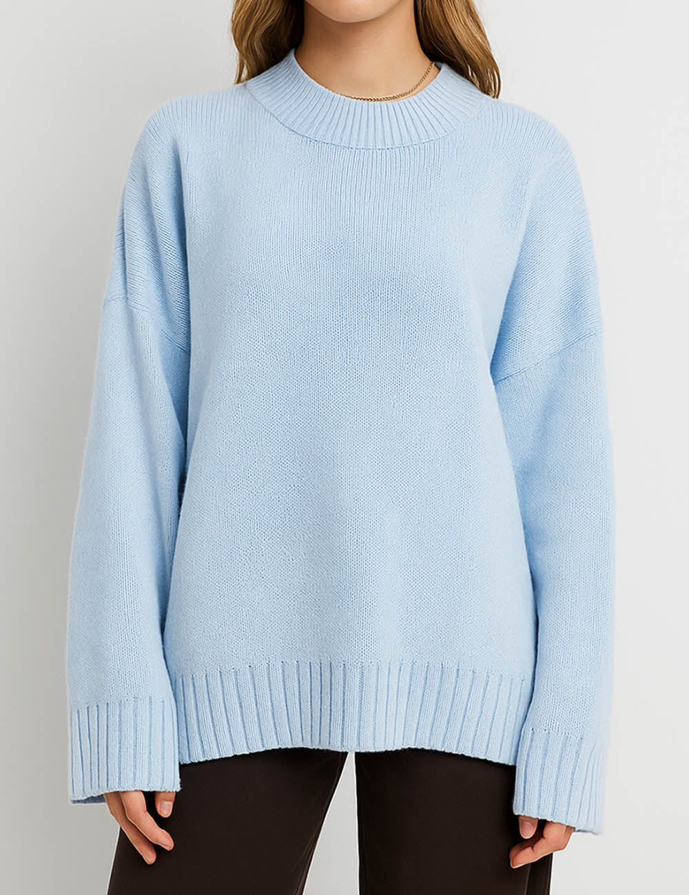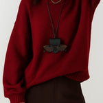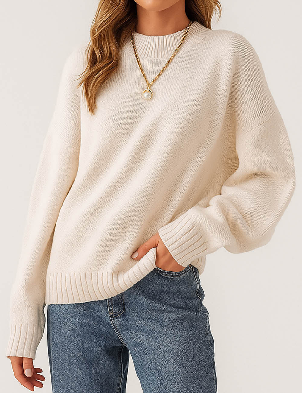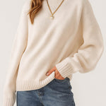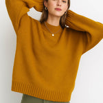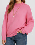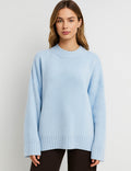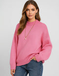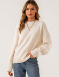 Ladies Round Neck Ribbed Hem Pullover Knit Sweater