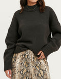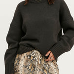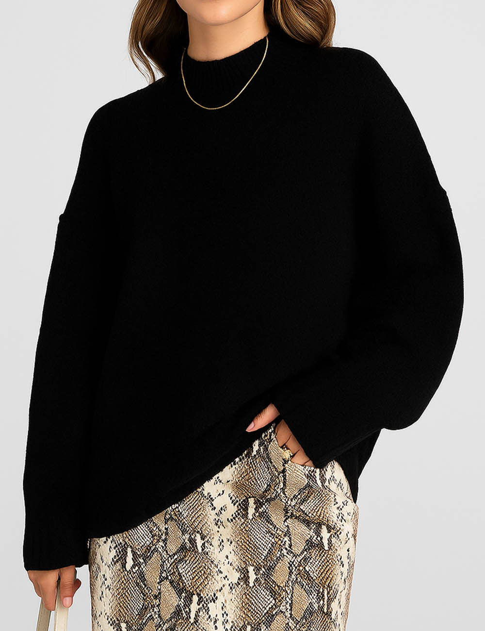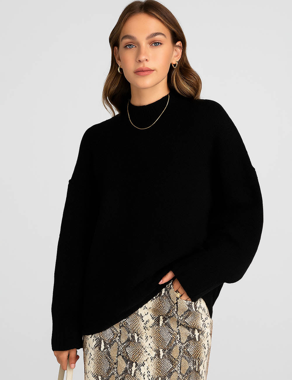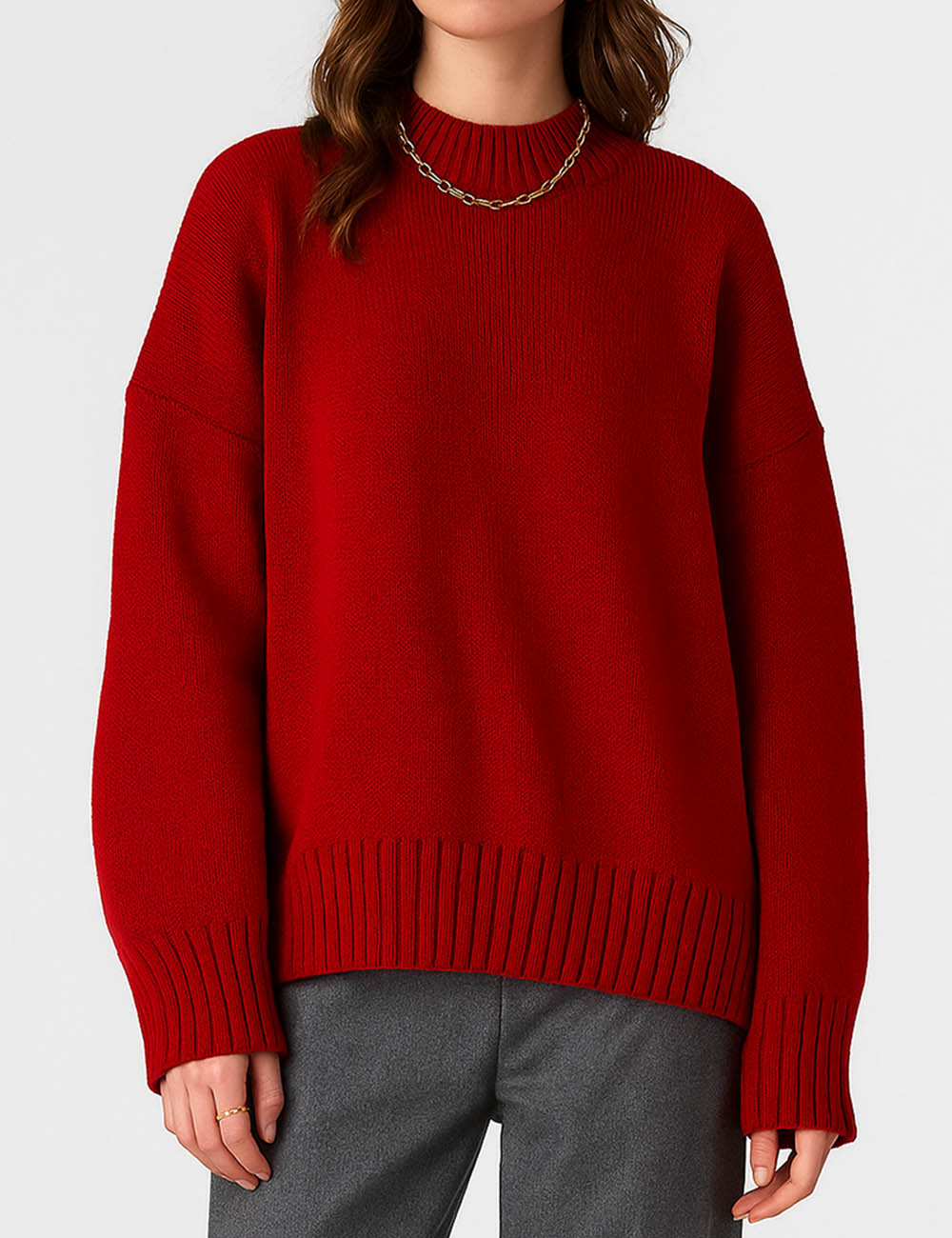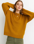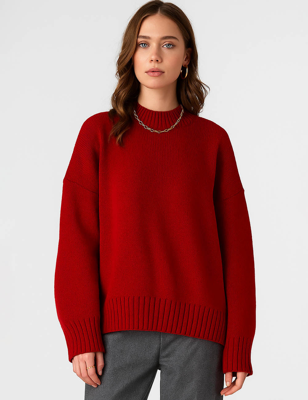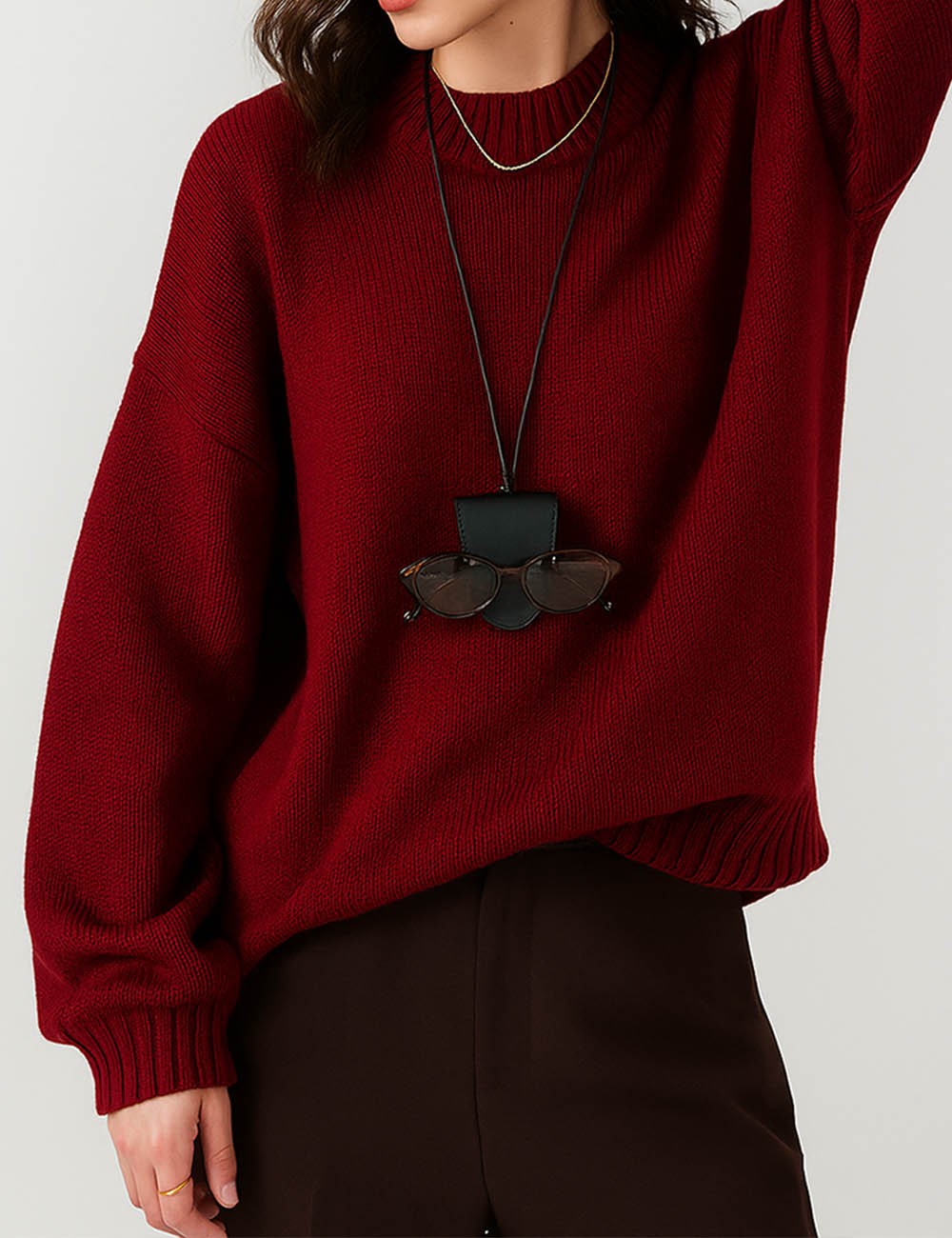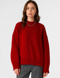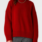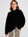 Ladies Round Neck Ribbed Hem Pullover Knit Sweater