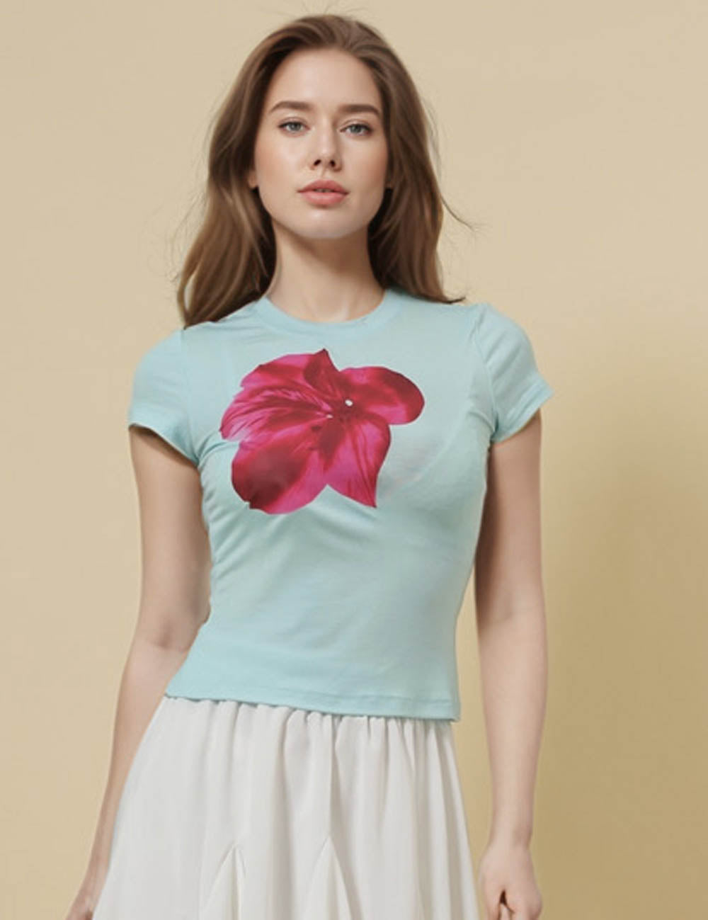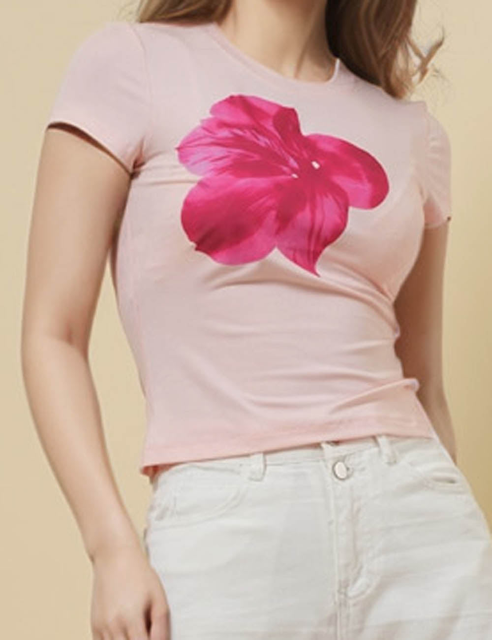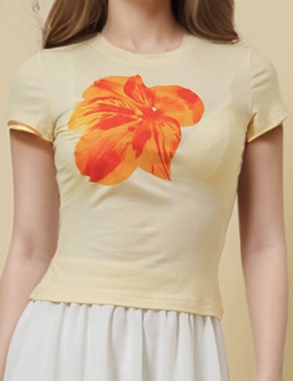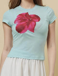 Ladies Round Neck Short Sleeves Floral Print T-Shirt SKT51017