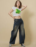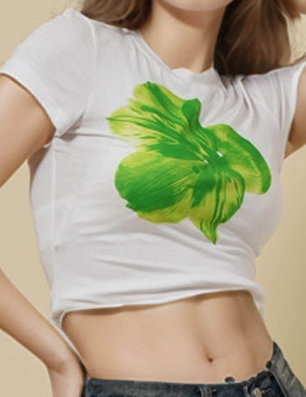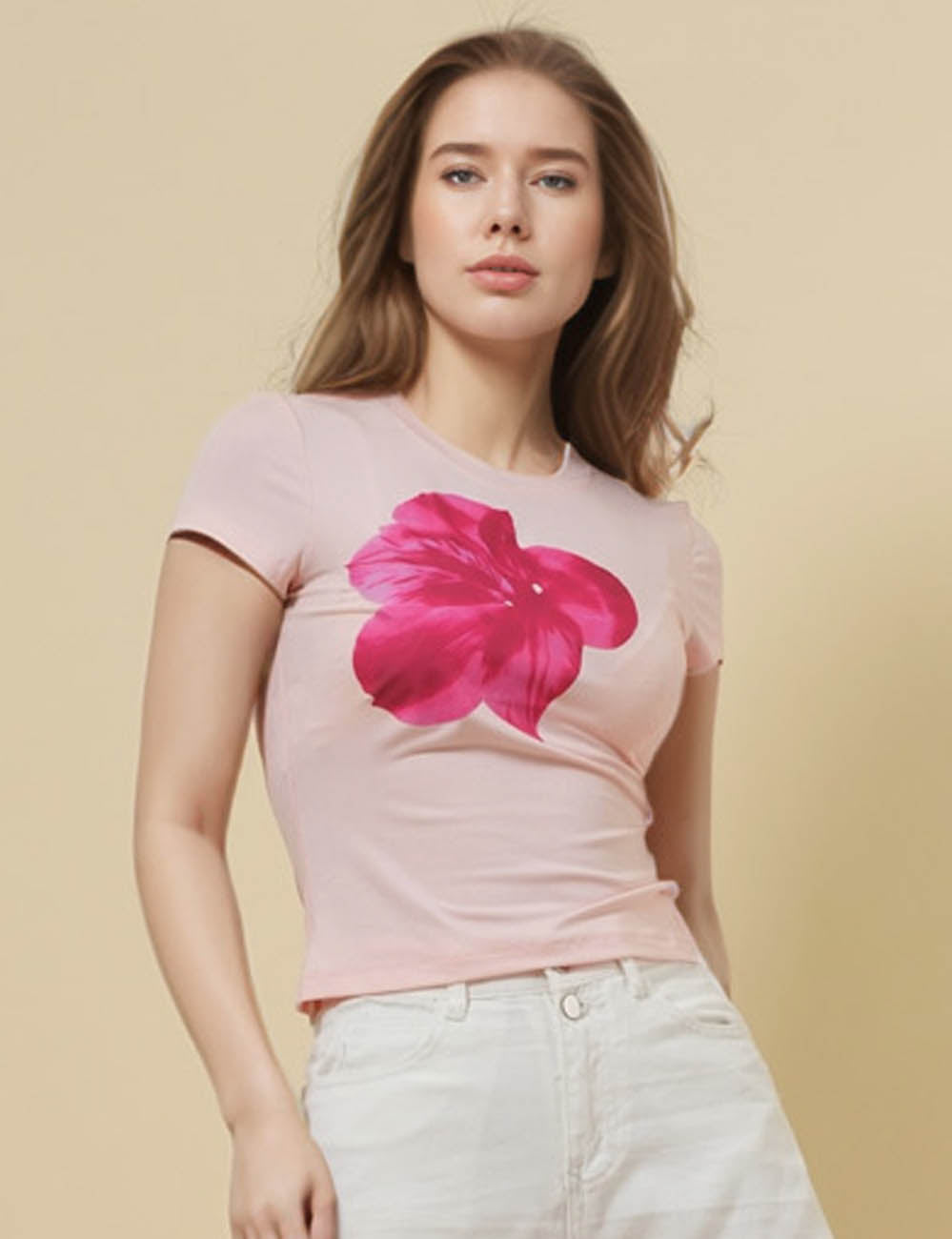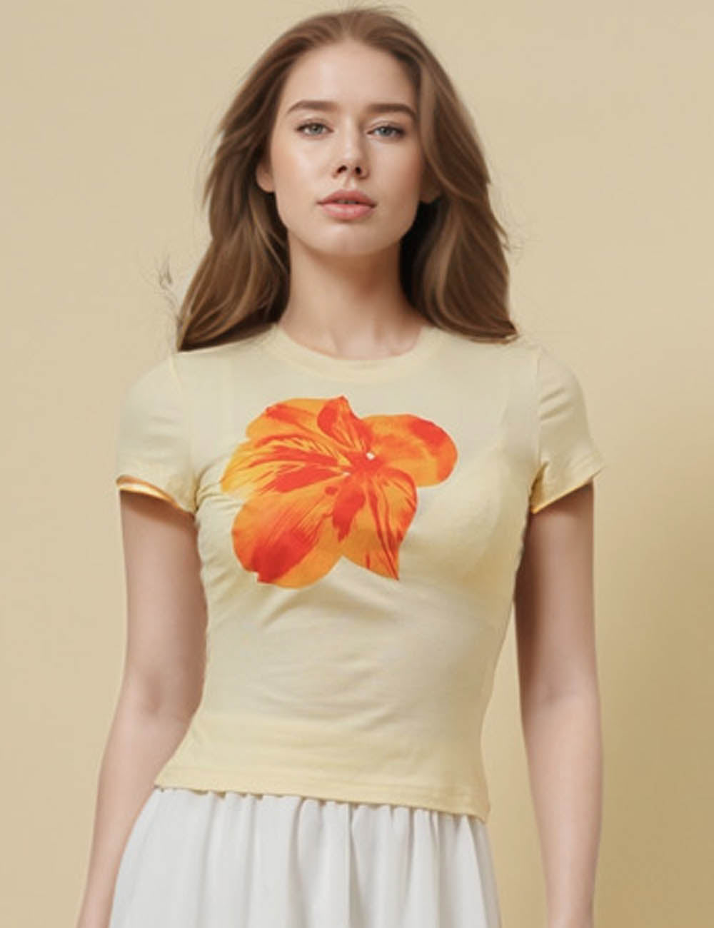 Ladies Round Neck Short Sleeves Floral Print T-Shirt SKT51017