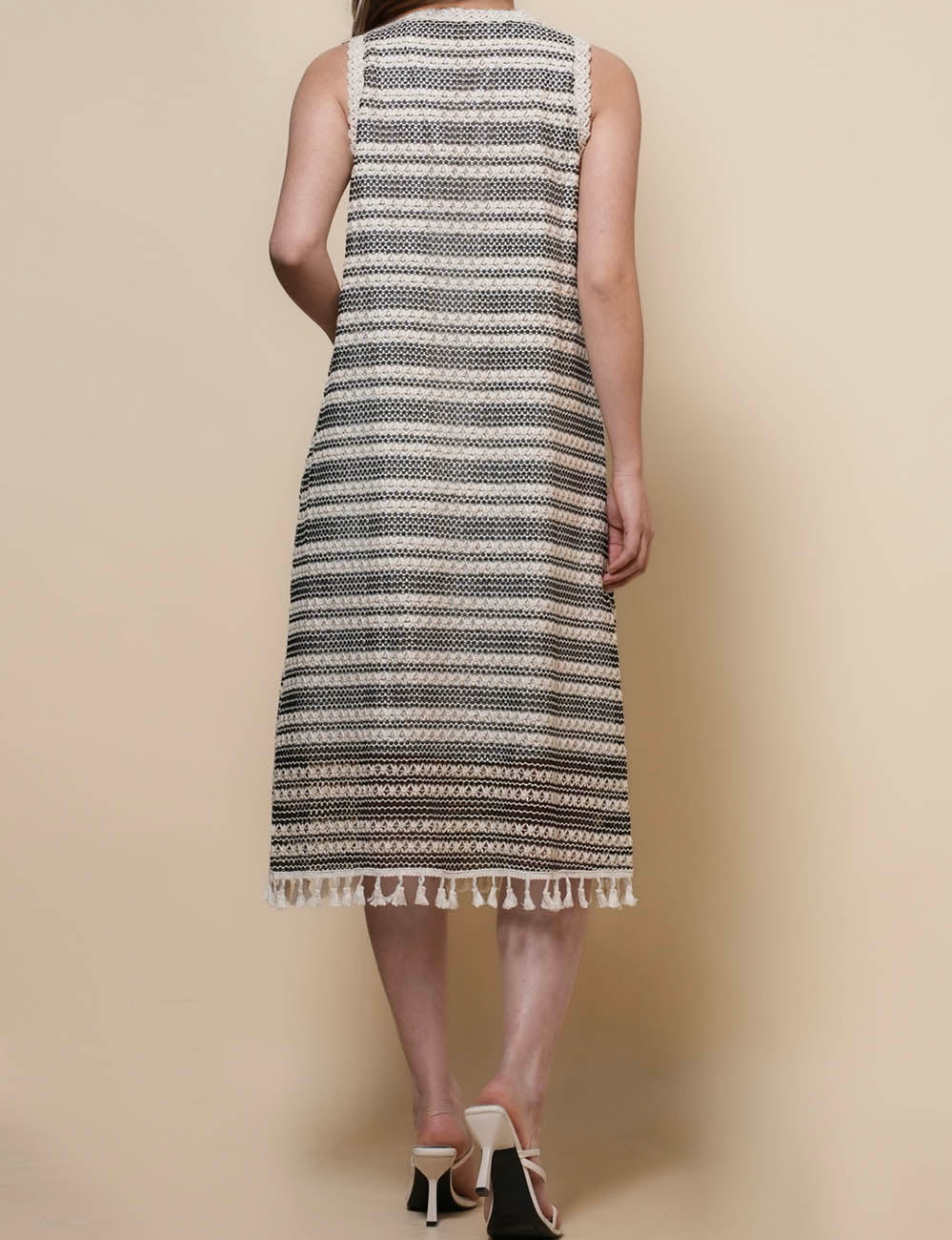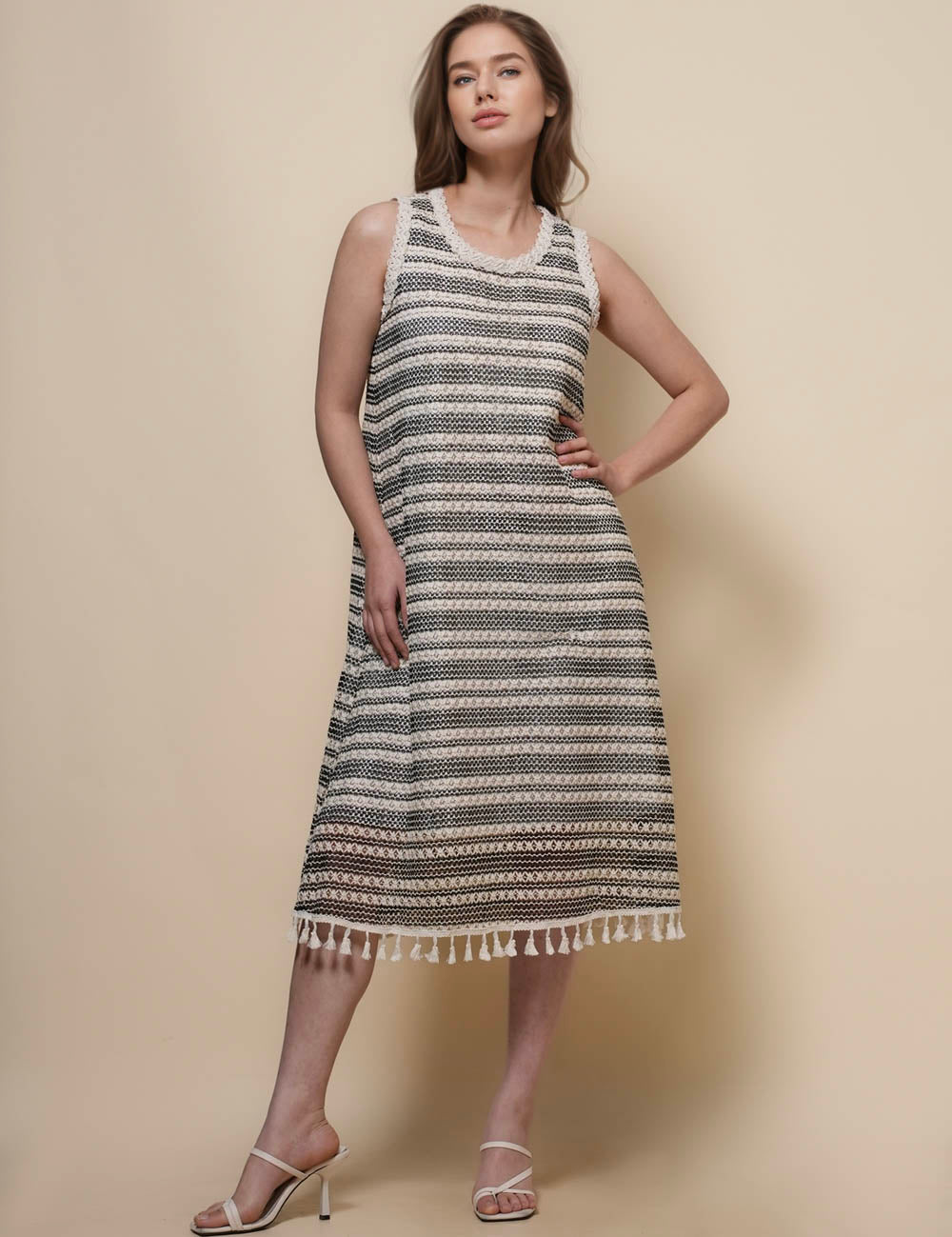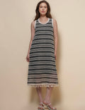 Ladies Round Neck Sleeveless Skrip Knit Midi Dress SKD50221
