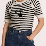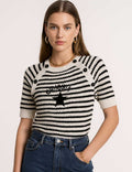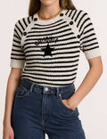 Ladies Round Neck Striped Knit Star Short Sleeveless Top