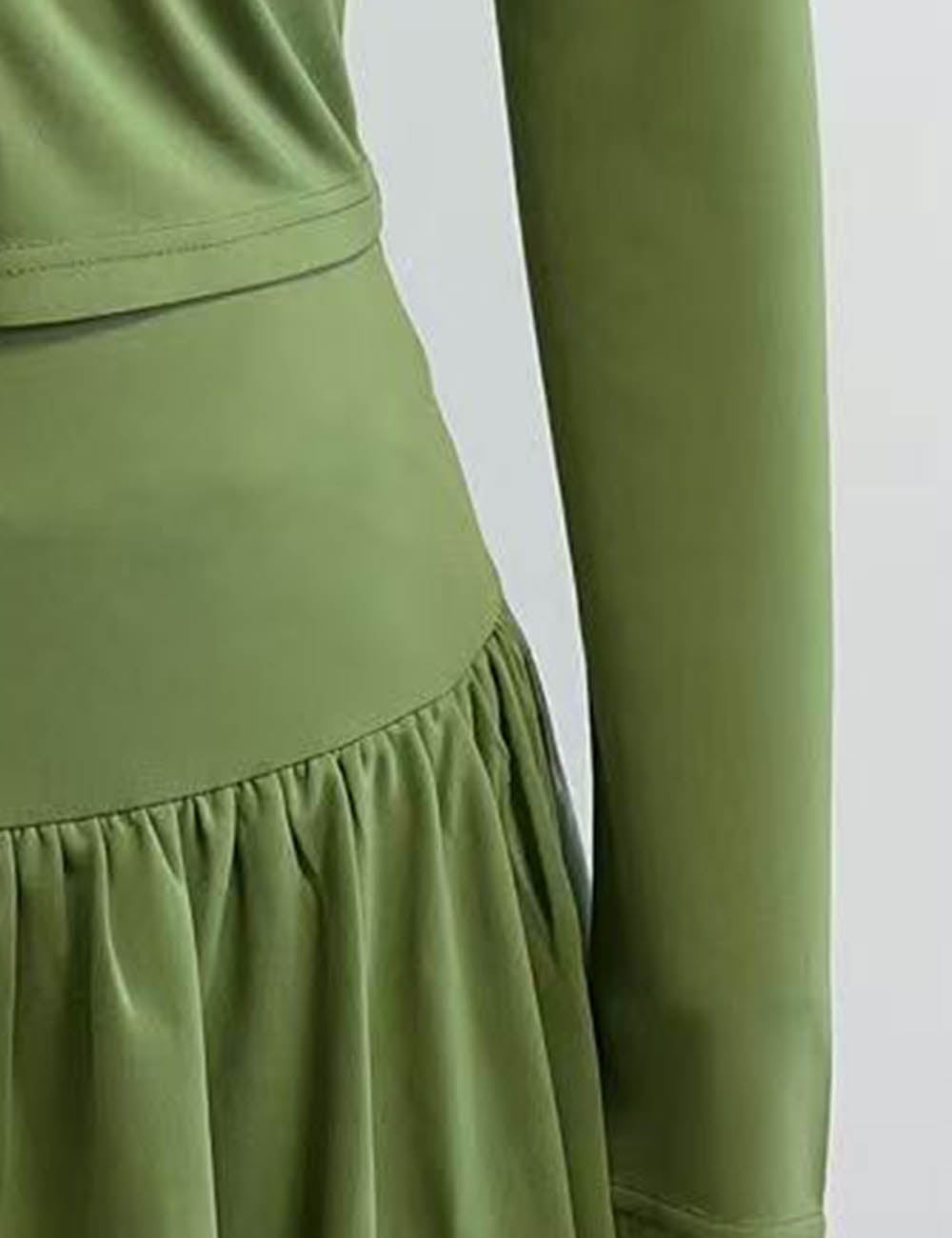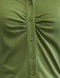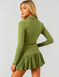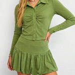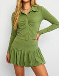 Ladies Ruched Collared Button Top Puffy Hem Mini Skirts Set