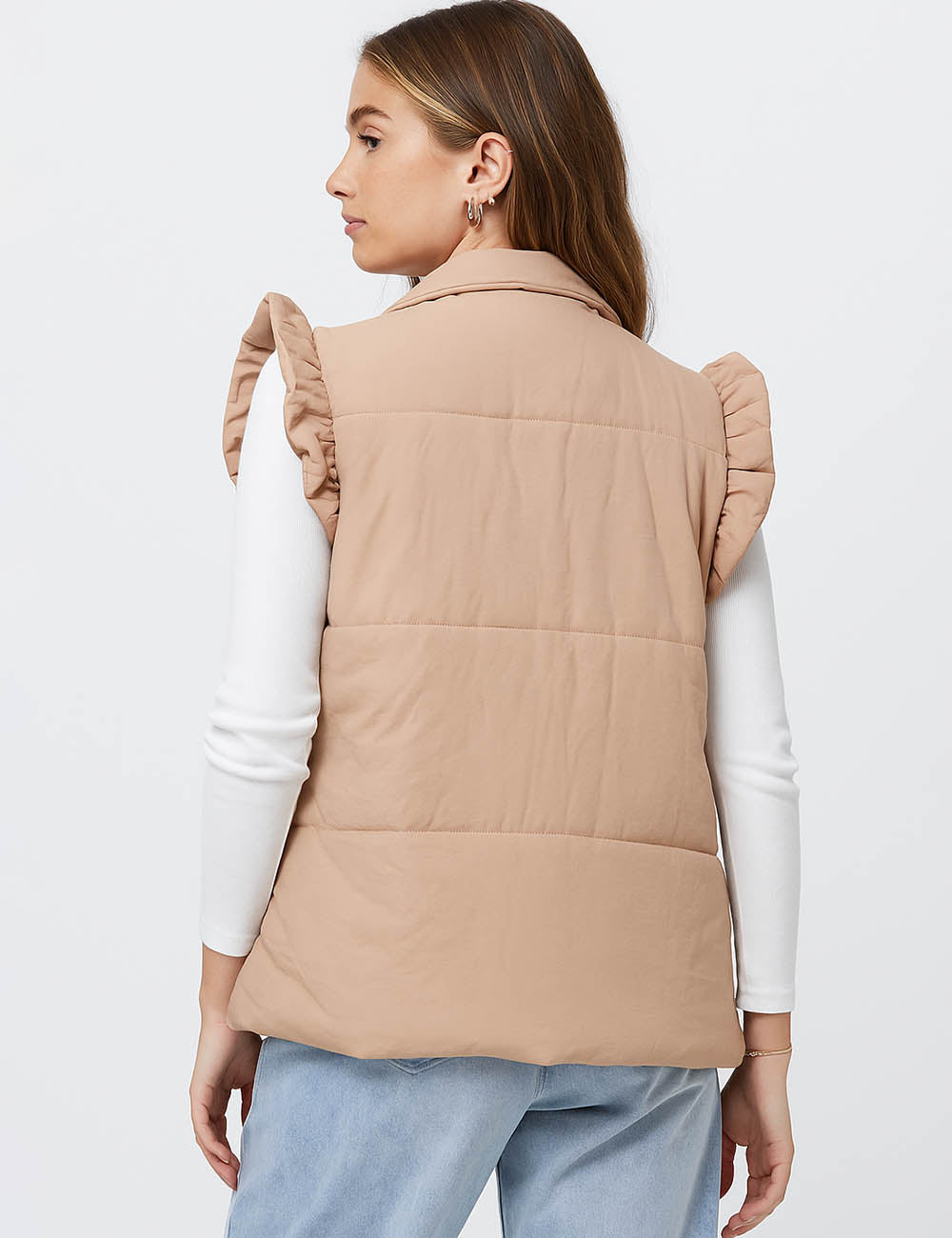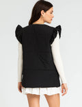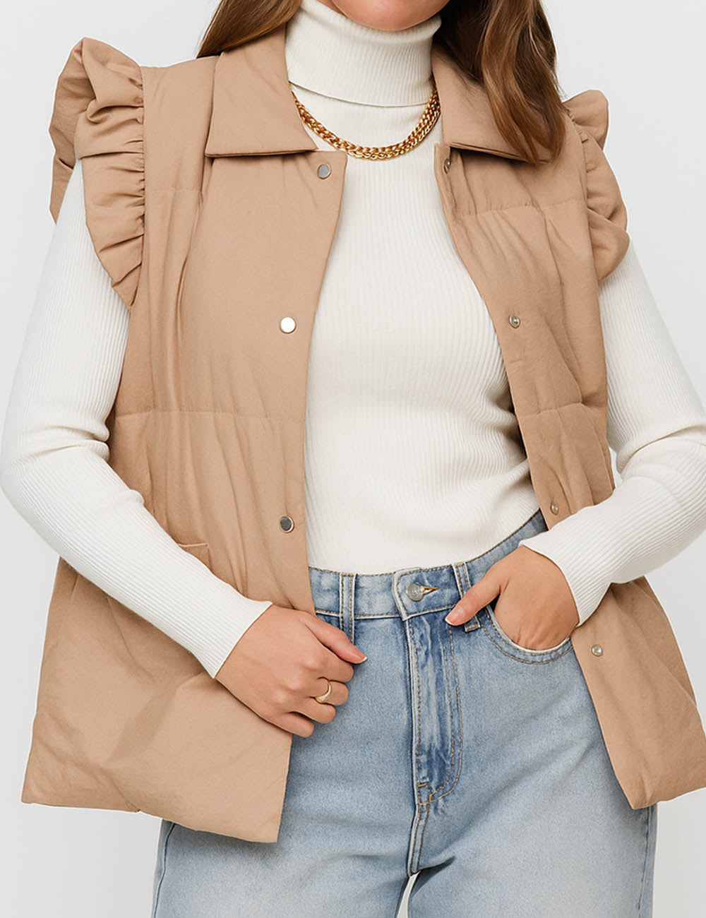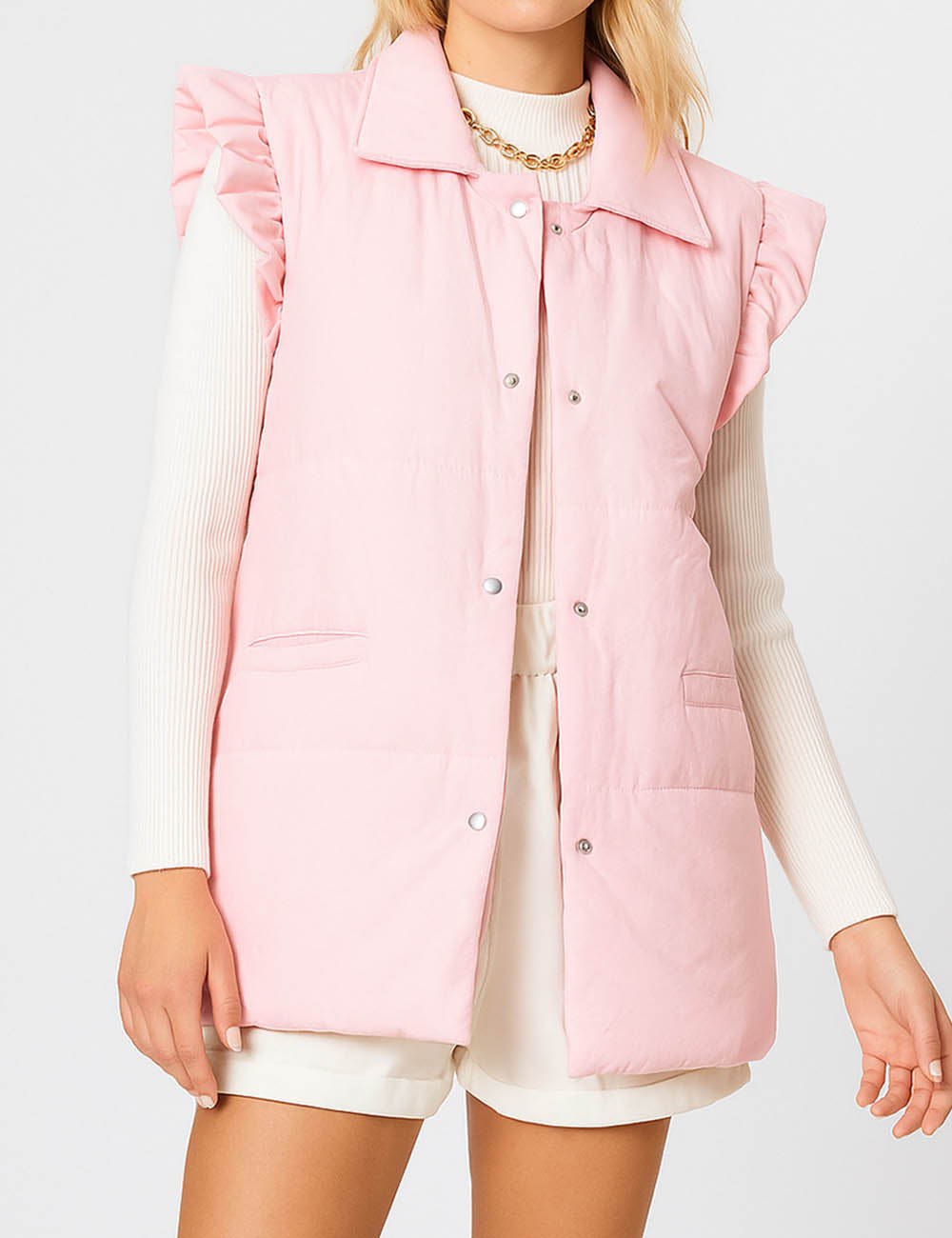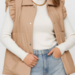 Ladies Ruffle Shoulder Puff Sleeveless Coat SKT41149