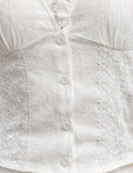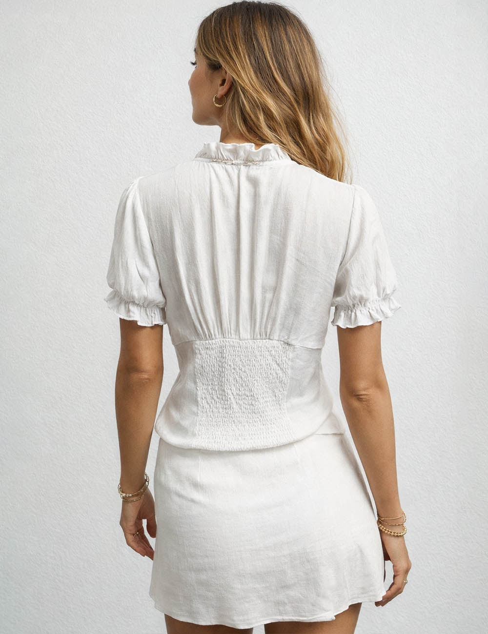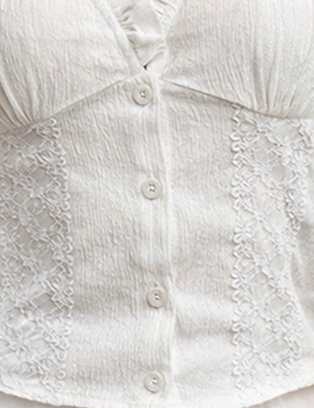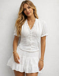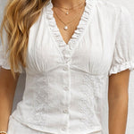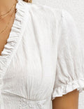 Ladies Ruffle V-Neck Lace Splice Short Sleeves Top
