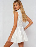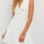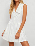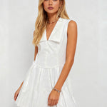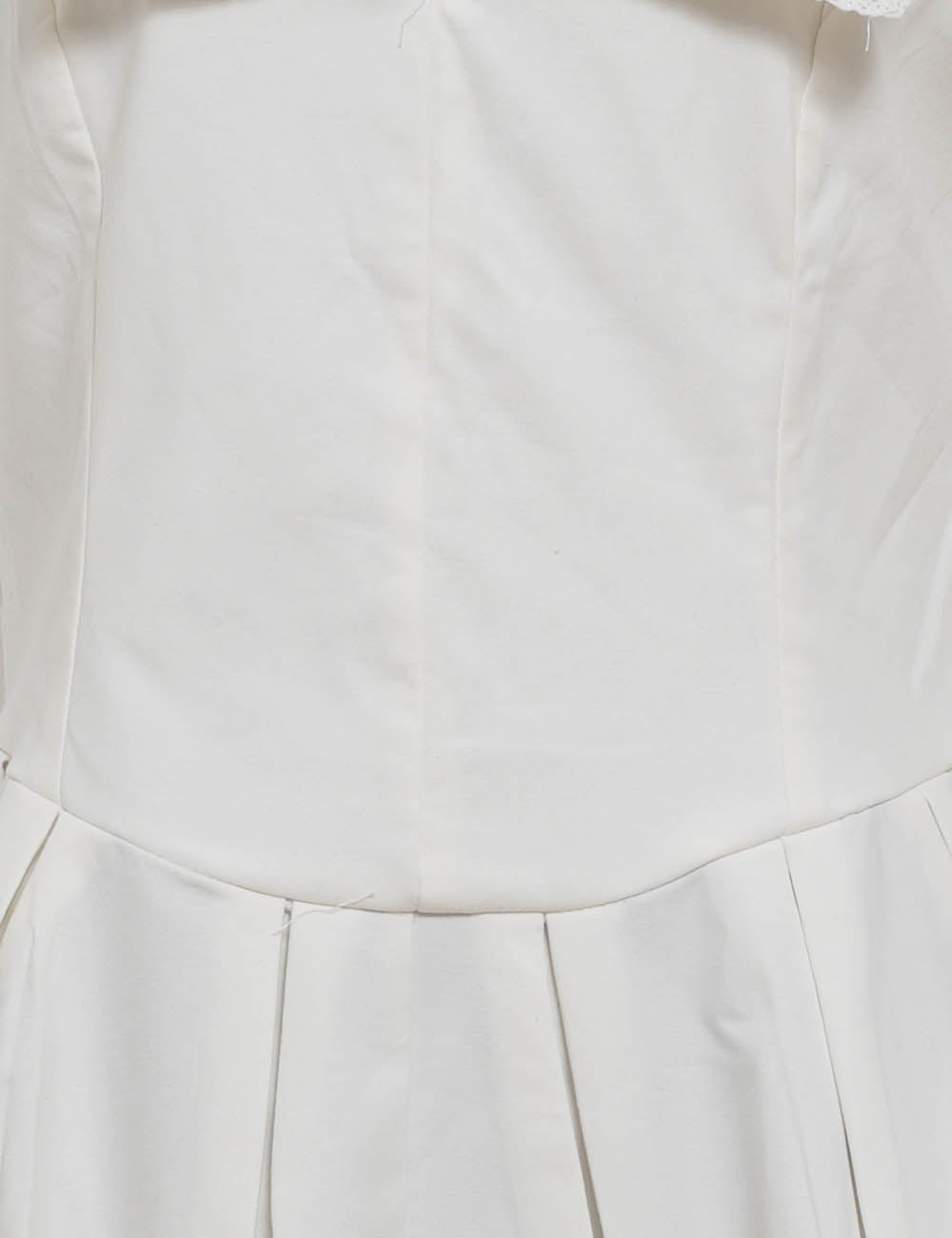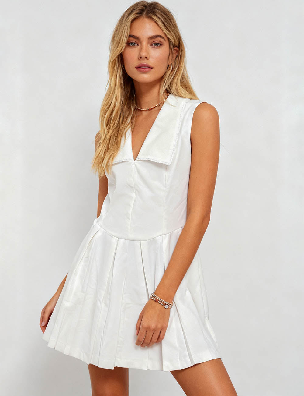Ladies Sailor Collar Lace Trim Solid Color Pleated Mini Dress