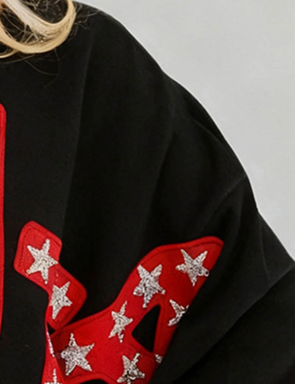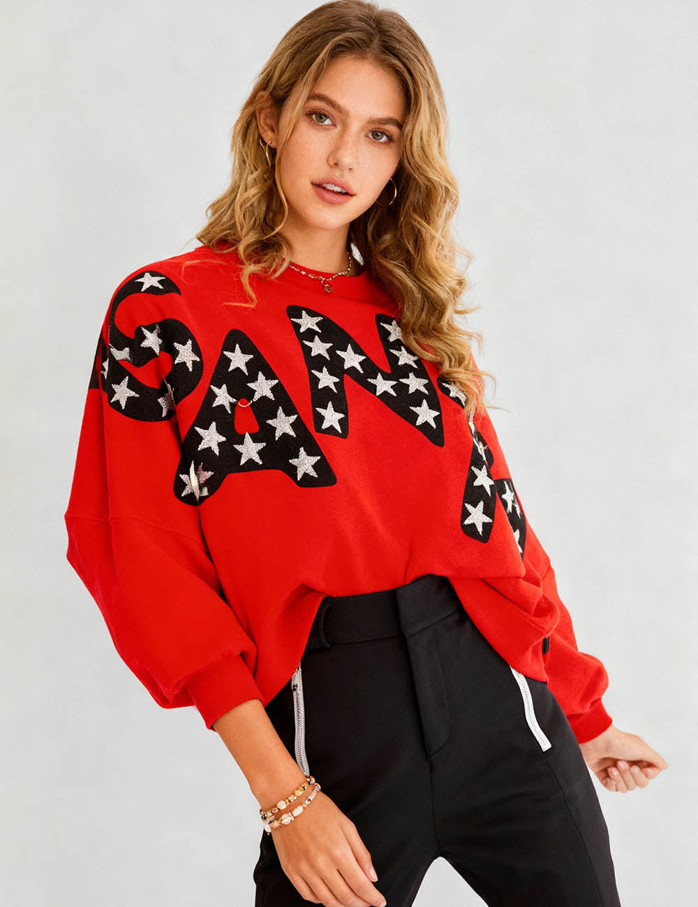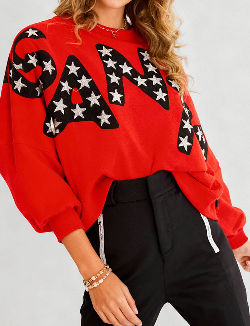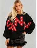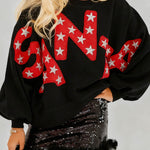 Ladies SANTA Letter Sequin Christmas Pullover Sweatshirt