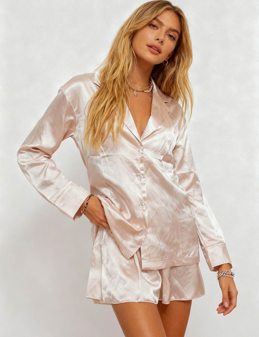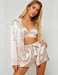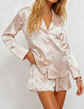 Ladies Satin 3PCS V-Neck Long Sleeves Top & Pants Pajama Set