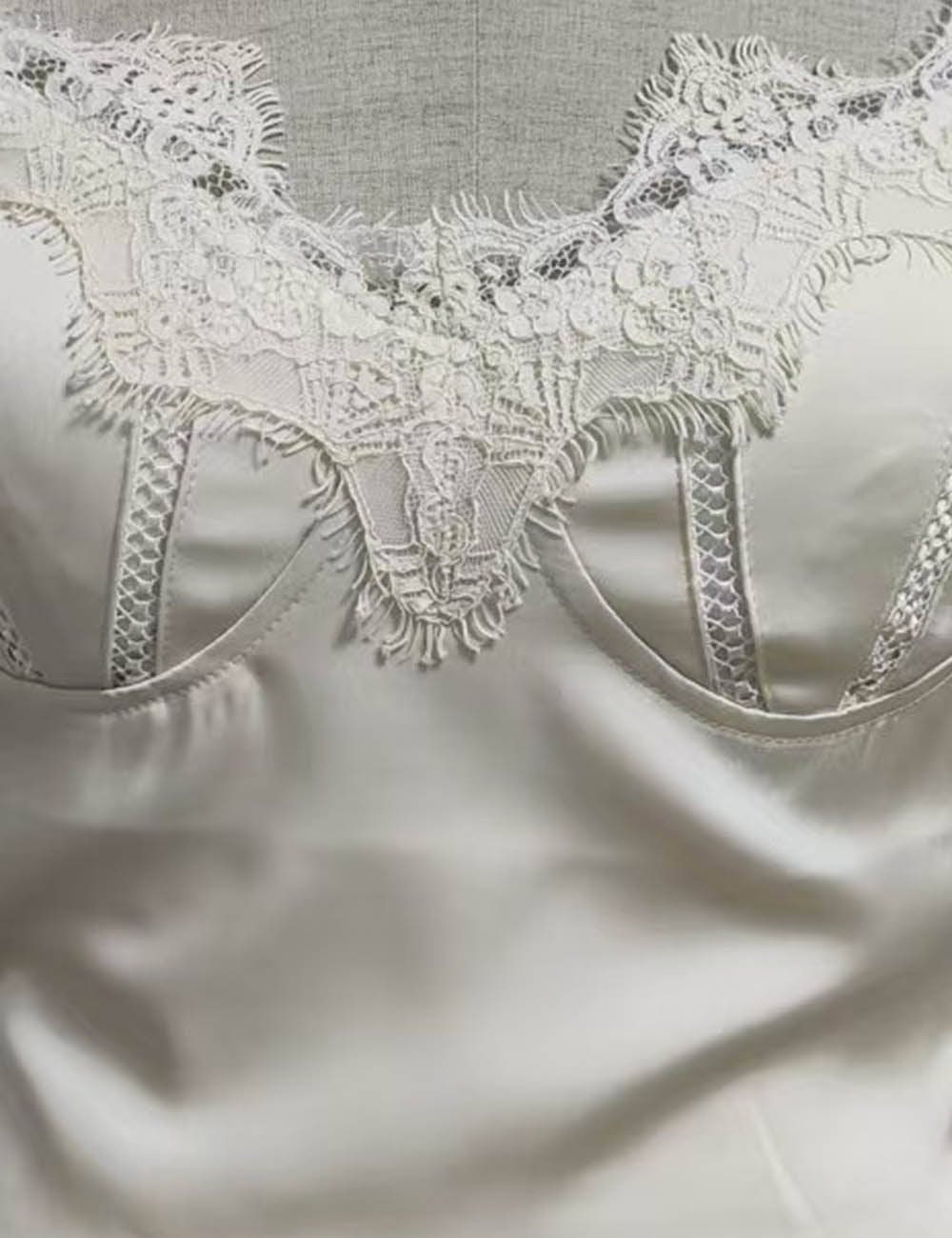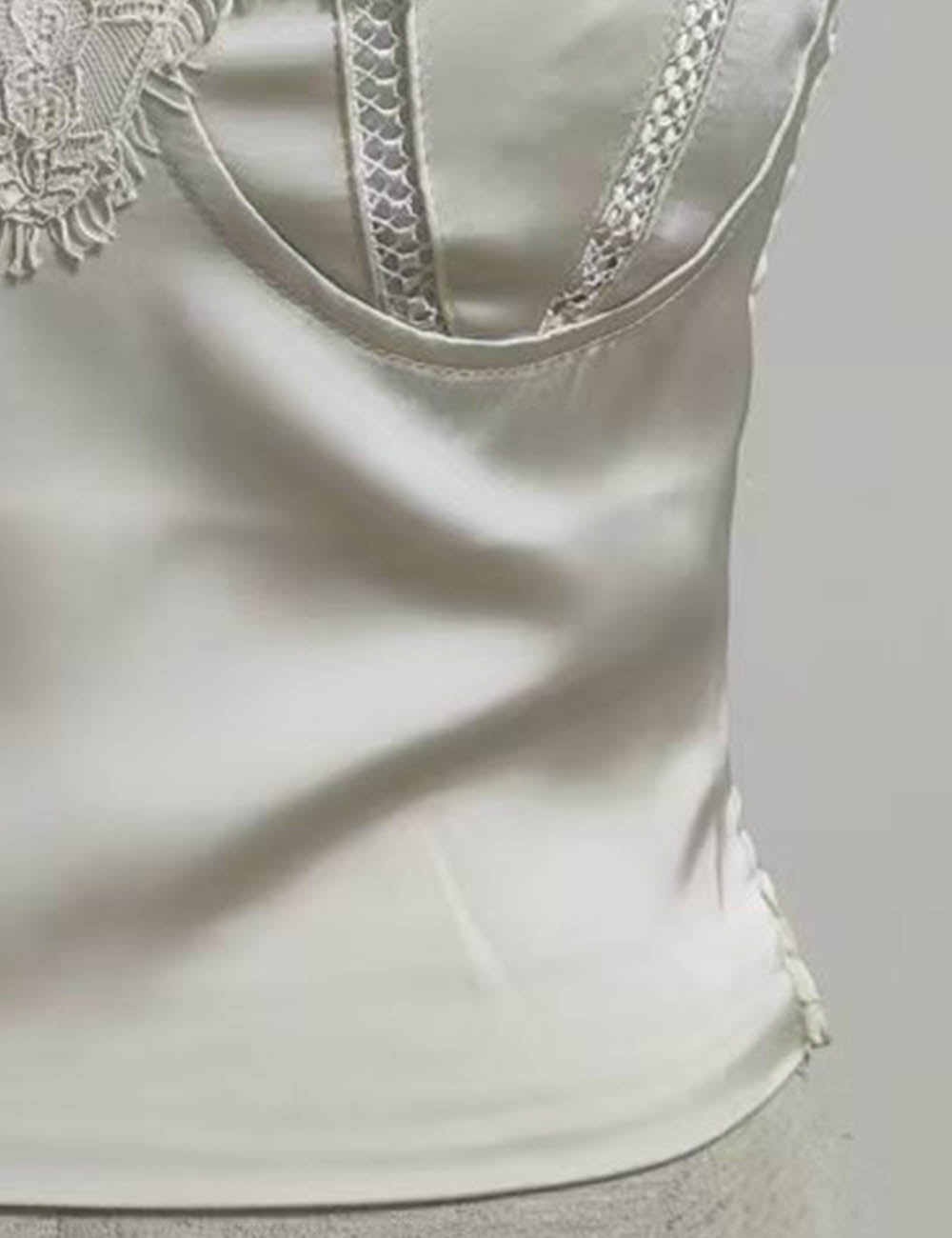 Ladies Satin Lace Sweetheart Neckline Cami Top