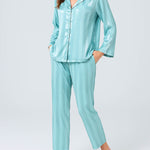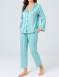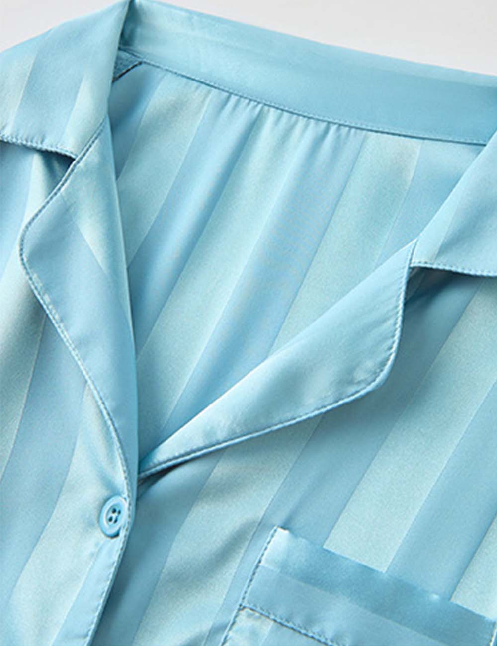 Ladies Satin Lounge Set Striped Button Shirt & Pants 2PCS Set