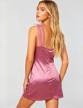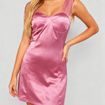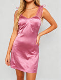 Ladies Satin Sweetheart Neckline Mesh Strap Shoulder Mini Dress