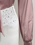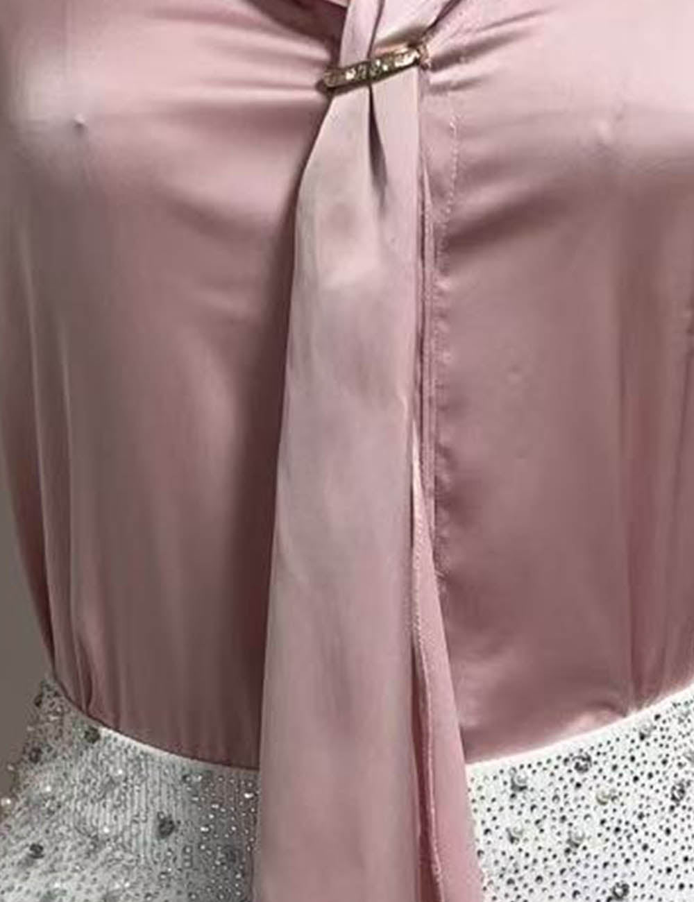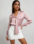 Ladies Satin Tie Neck Metal Buckle Long Sleeves Shirt