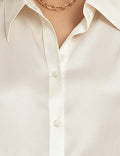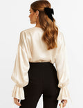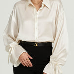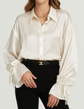 Ladies Satin Turn Down Collar Flared Sleeves Shirt