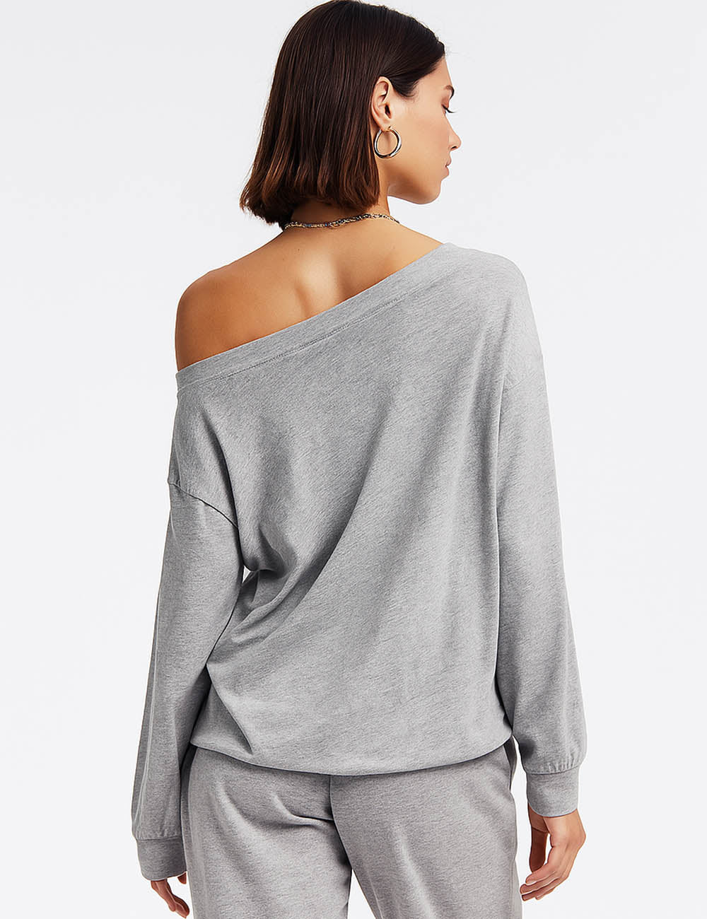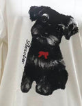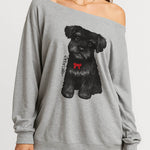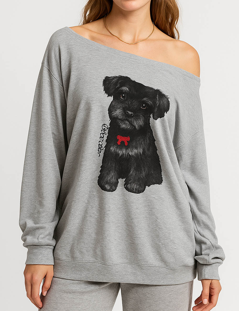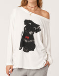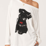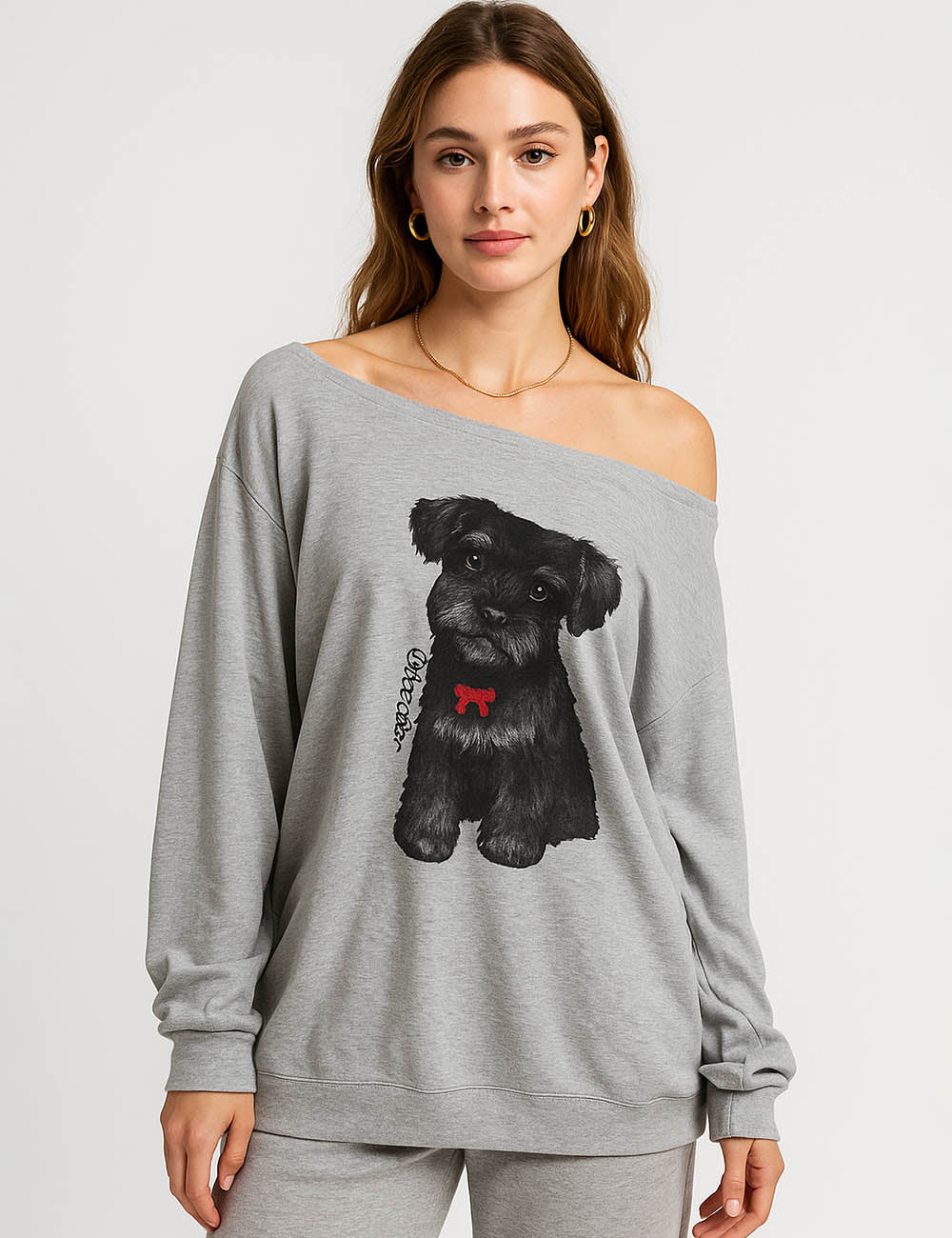 Ladies Schnauzer Print Tee Off-Shoulder Long Sleeves Sweatshirt