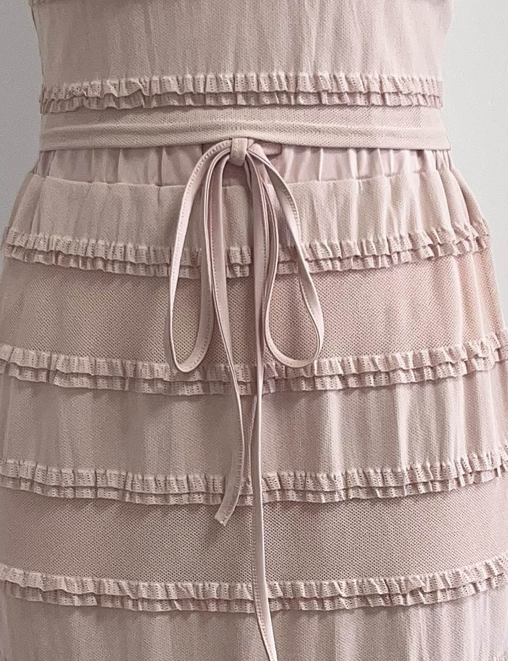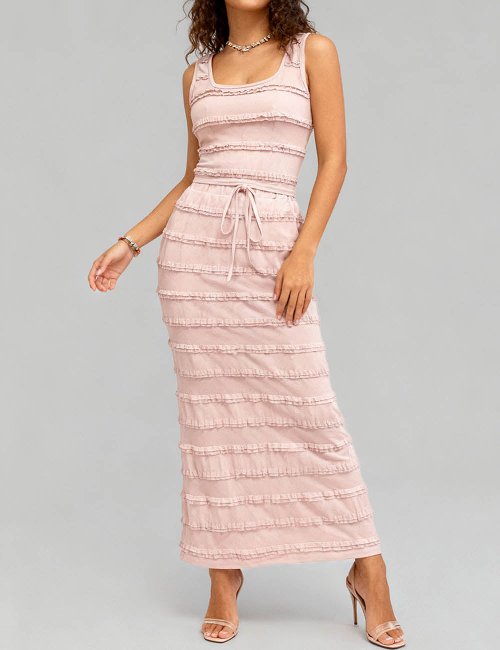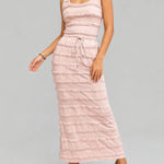 Ladies Scoop Neck Ruffle Trim Tank Top & Maxi Skirt 2PCS Set