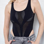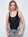 Ladies Seamless Crisscross Hollow-Out Scoop Neck Bodysuit