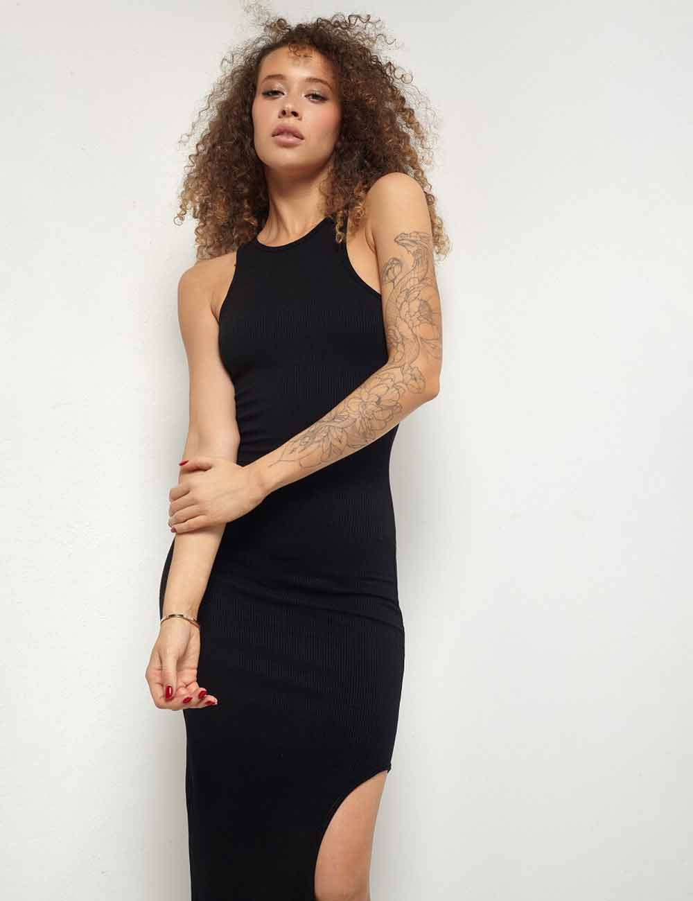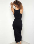 Ladies Seamless Side Split Round Neck Tank Midi Dress