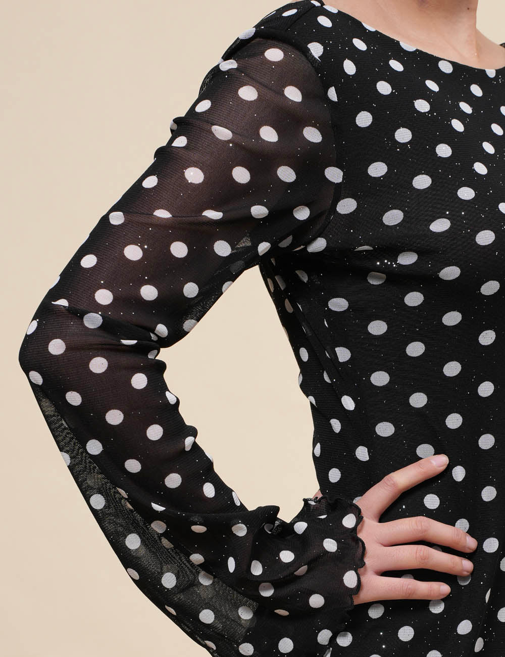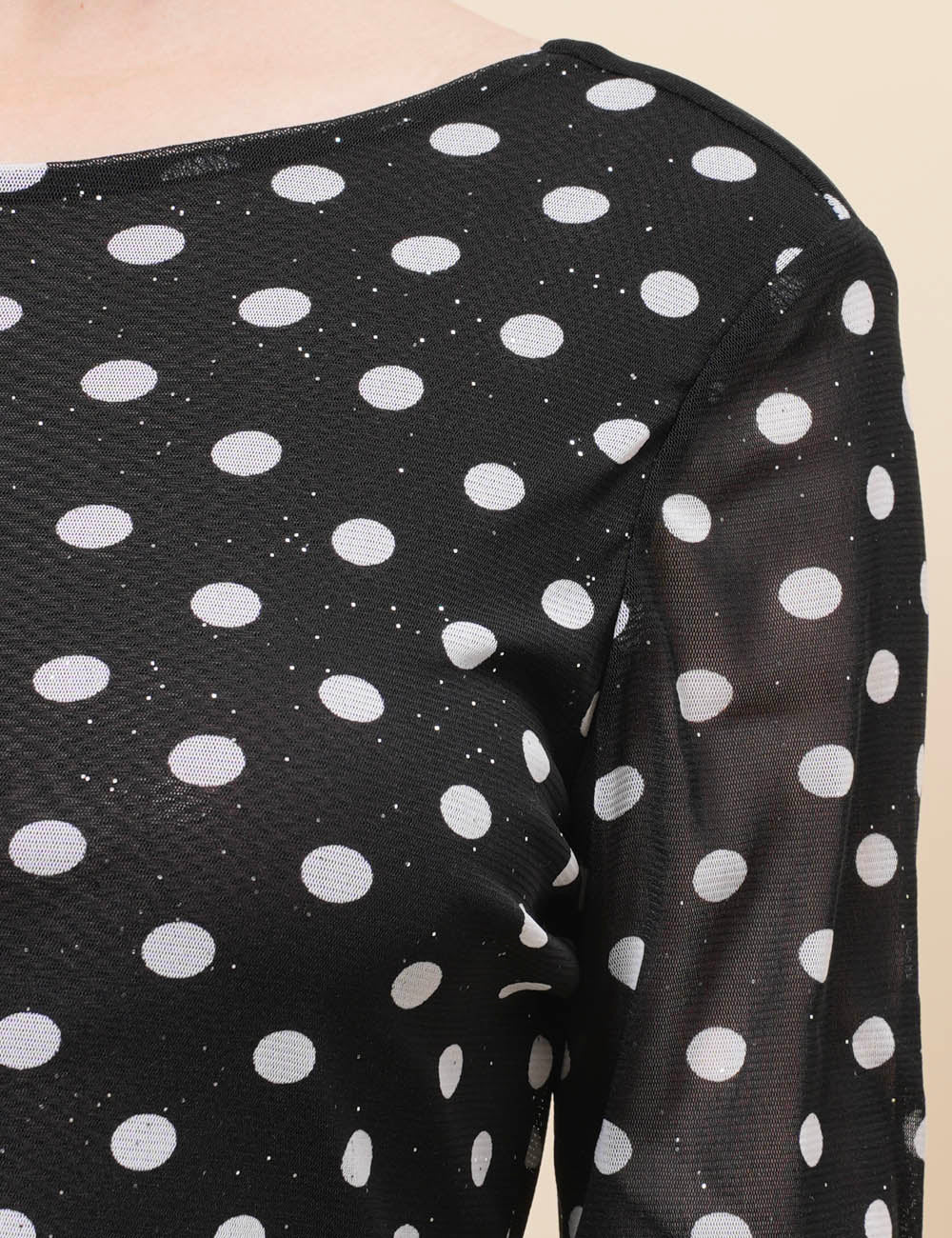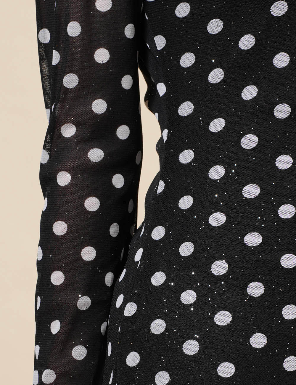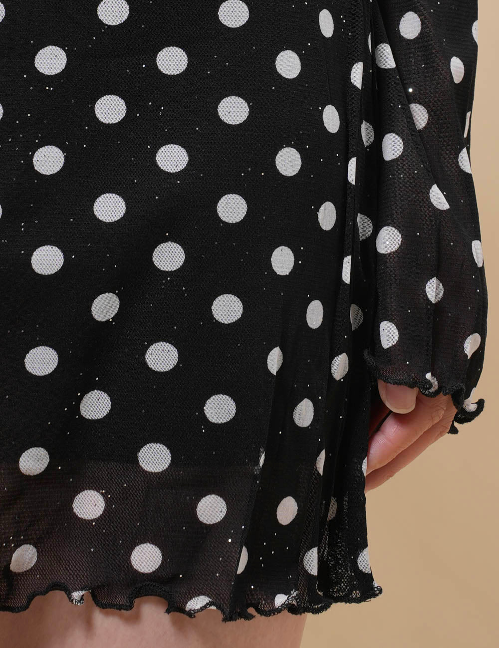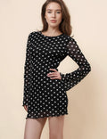 Ladies See Sheer Mesh Backless Polka Dot Mini Dress SKD41034