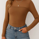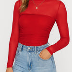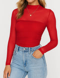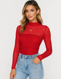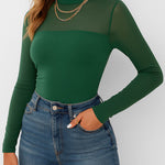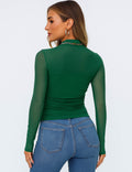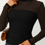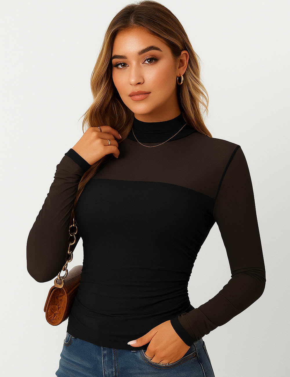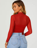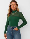 Ladies See Sheer Mock Neck Long Sleeves Mesh Top