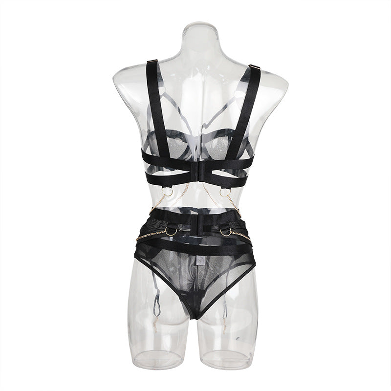 Ladies See Through Mesh 3PCS Lingerie Set SKLG4096